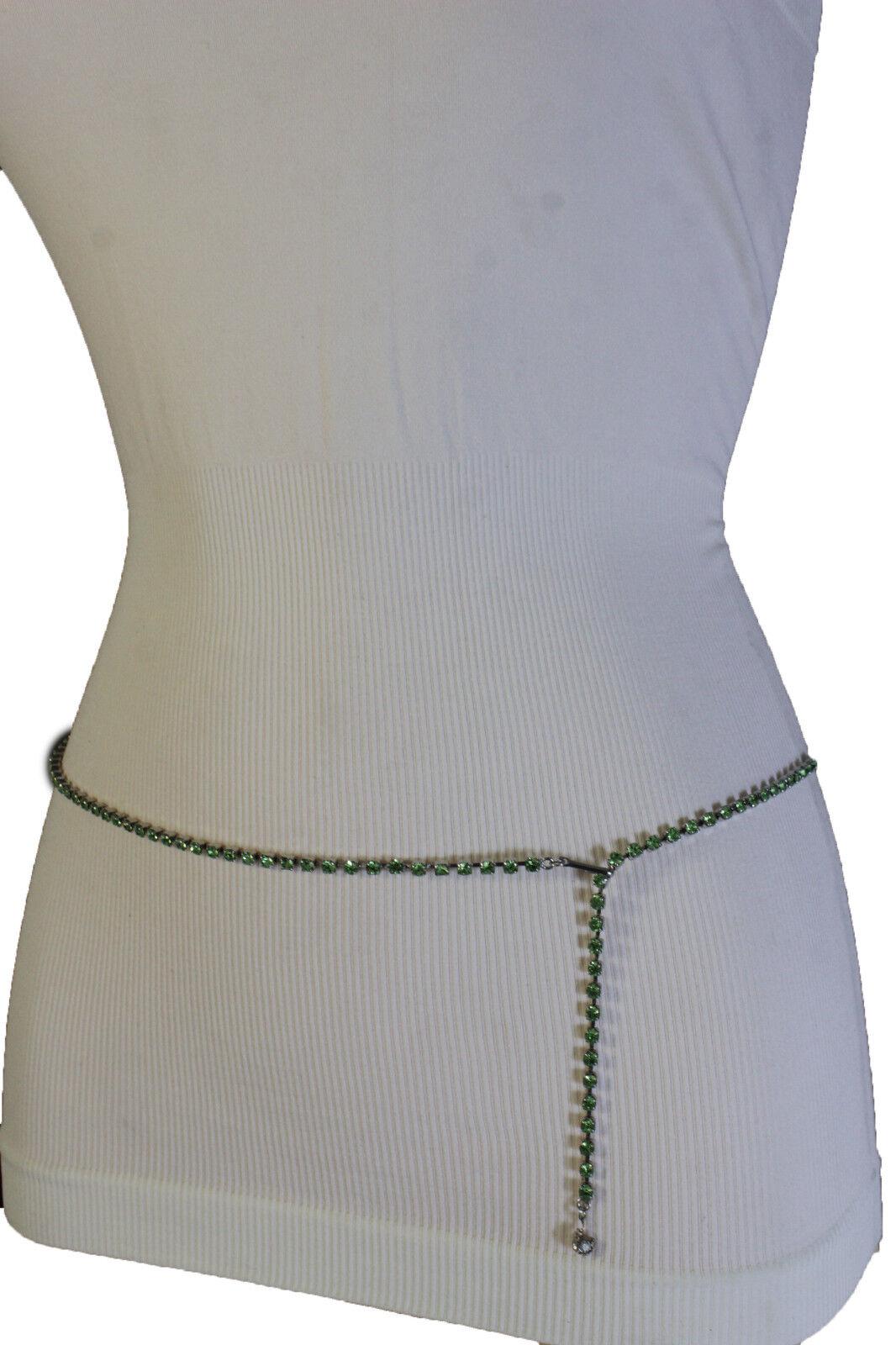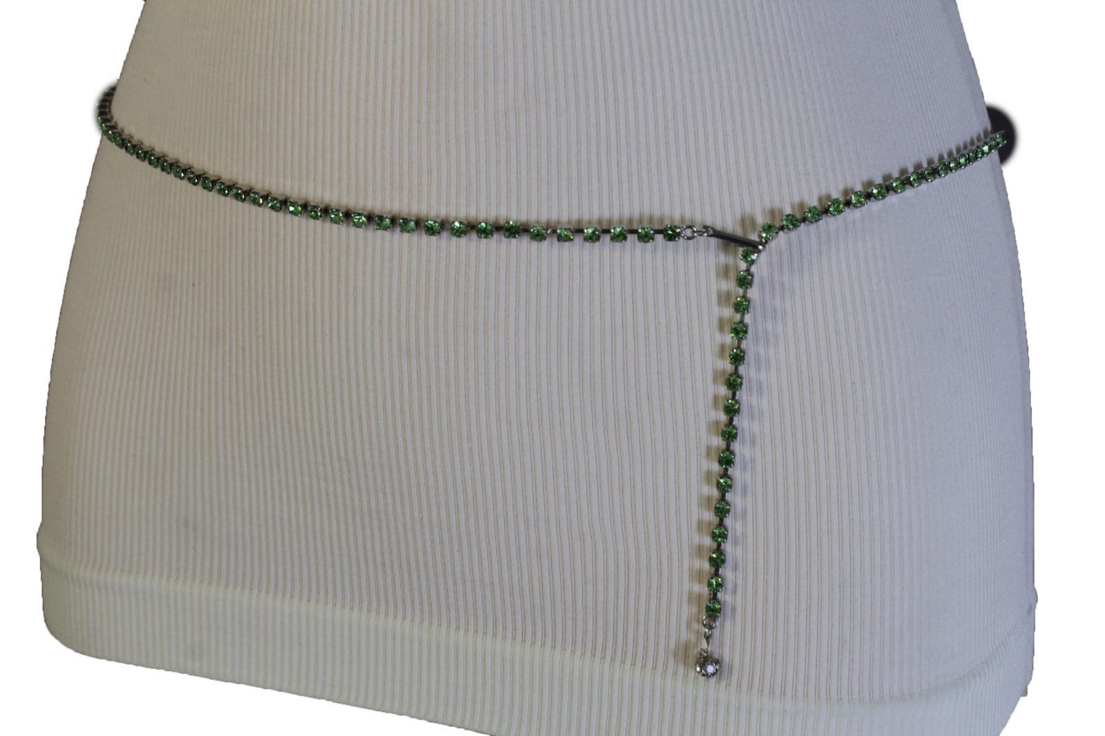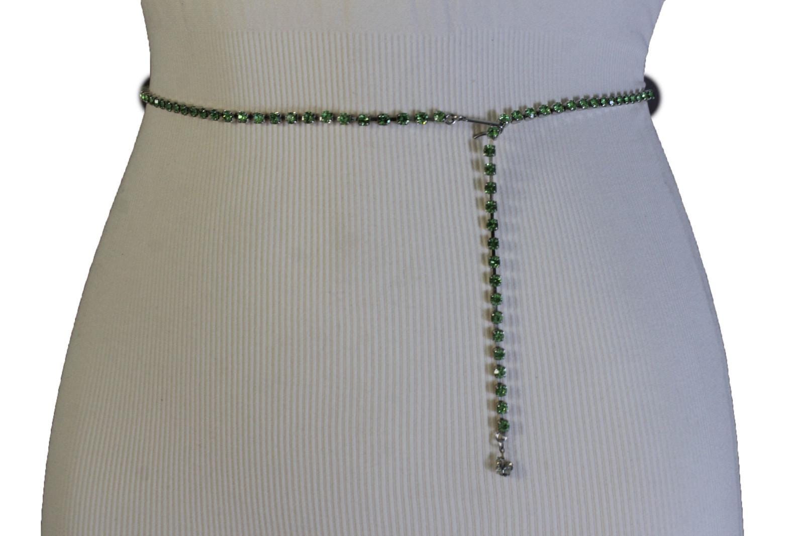 Green Rhinestone Silver Chain Belt: Adjustable Bling Waist Belt