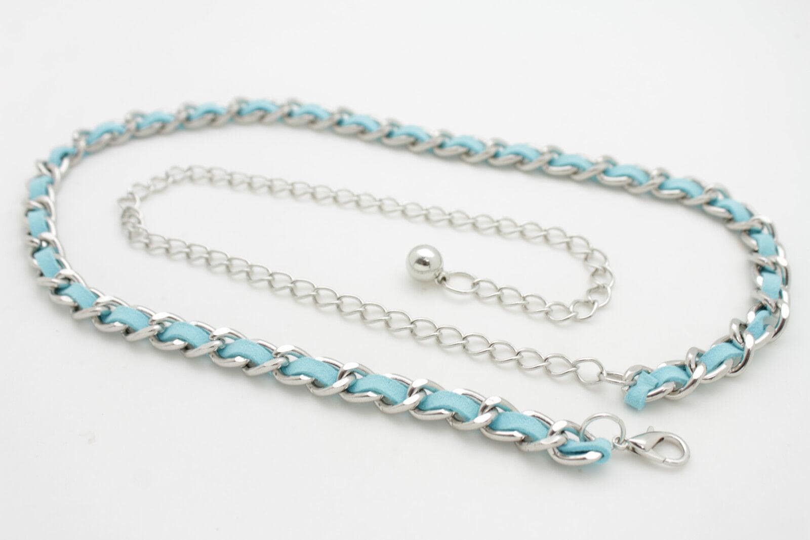 Crafted with sleek silver metal chain links and soft turquoise faux suede, it brings a balance of boldness and femininity that’s trending across all platforms—from music festivals to downtown sidewalks. The adjustable lobster clasp closure, offering both comfort and versatility. Whether you wear it snug around the waist or slung low over the hips, it always hits the right style note.