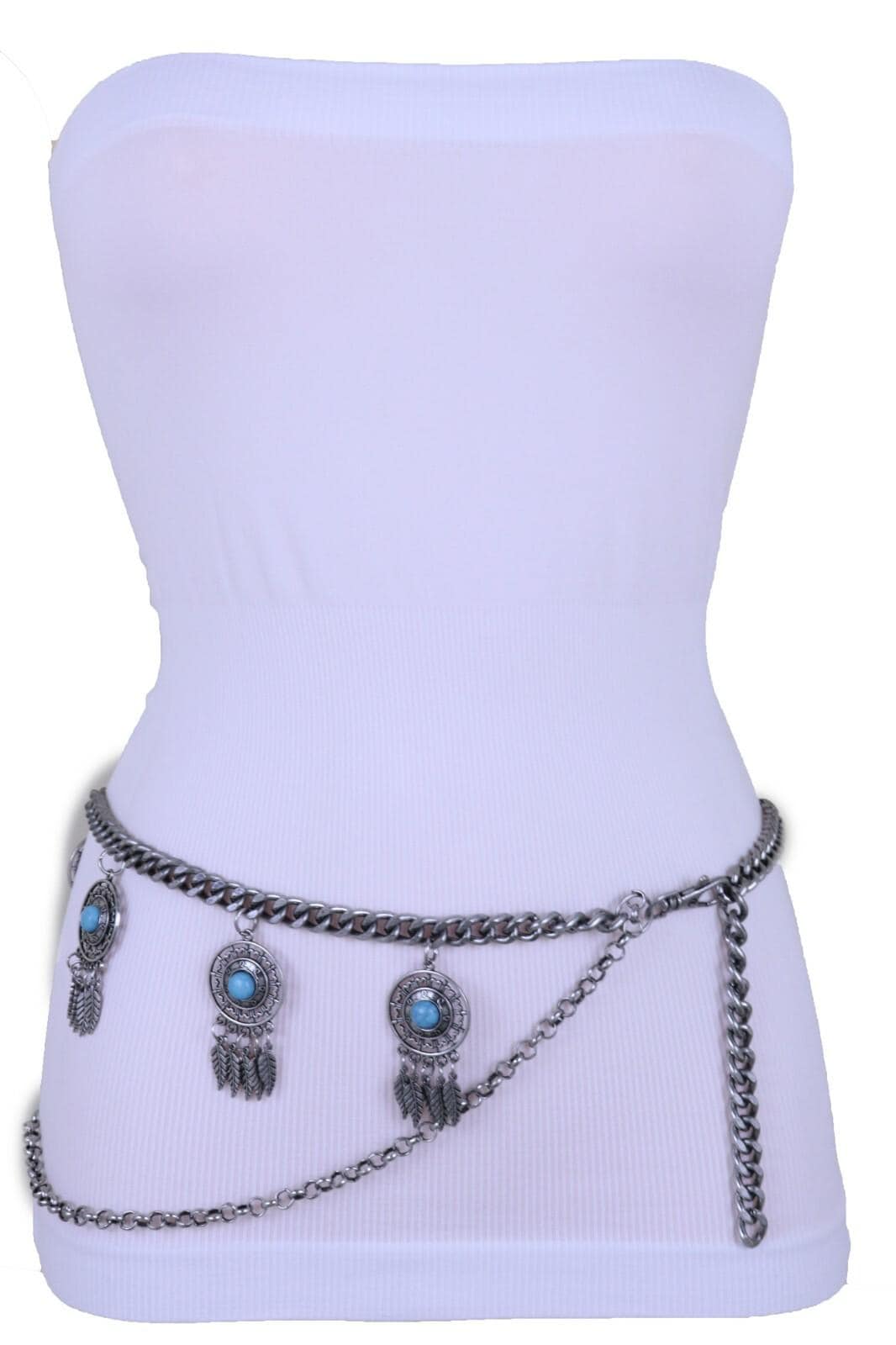 Silver Chain Belt: Turquoise Feather Charms, Boho Western Style