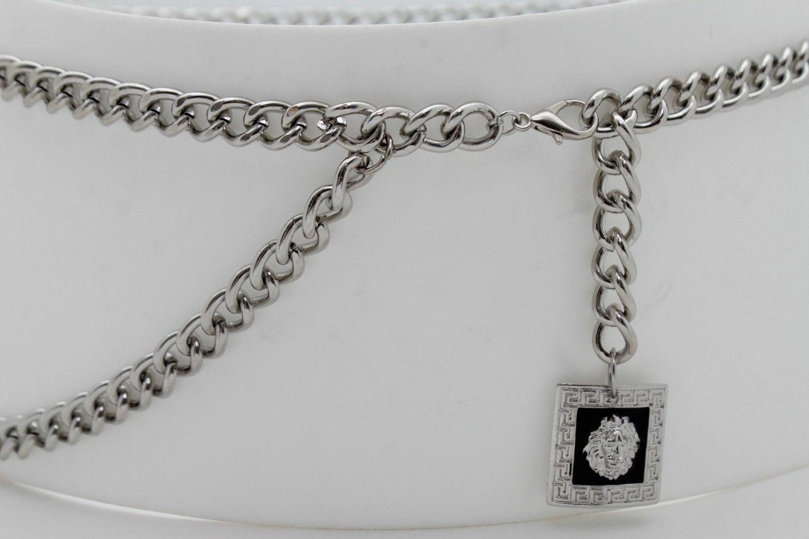 plus size chain belt women, silver waist chain belt XL, lion charm belt fashion, hip chain plus size, M to XL fashion belt women, streetwear lion chain accessory, trendy belts for curvy women, silver belt for party dress, statement belt for large waist