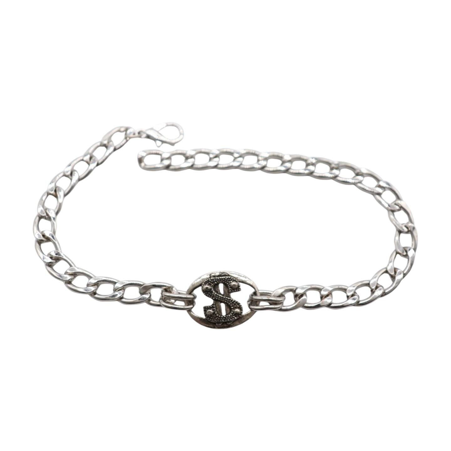 Women Silver Metal Boot Chain Bracelets SET Shoe Anklet Dollar Sign $ Charm 2PCS Pair BC2