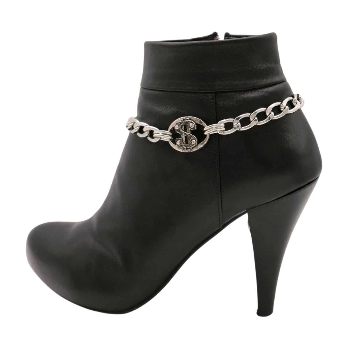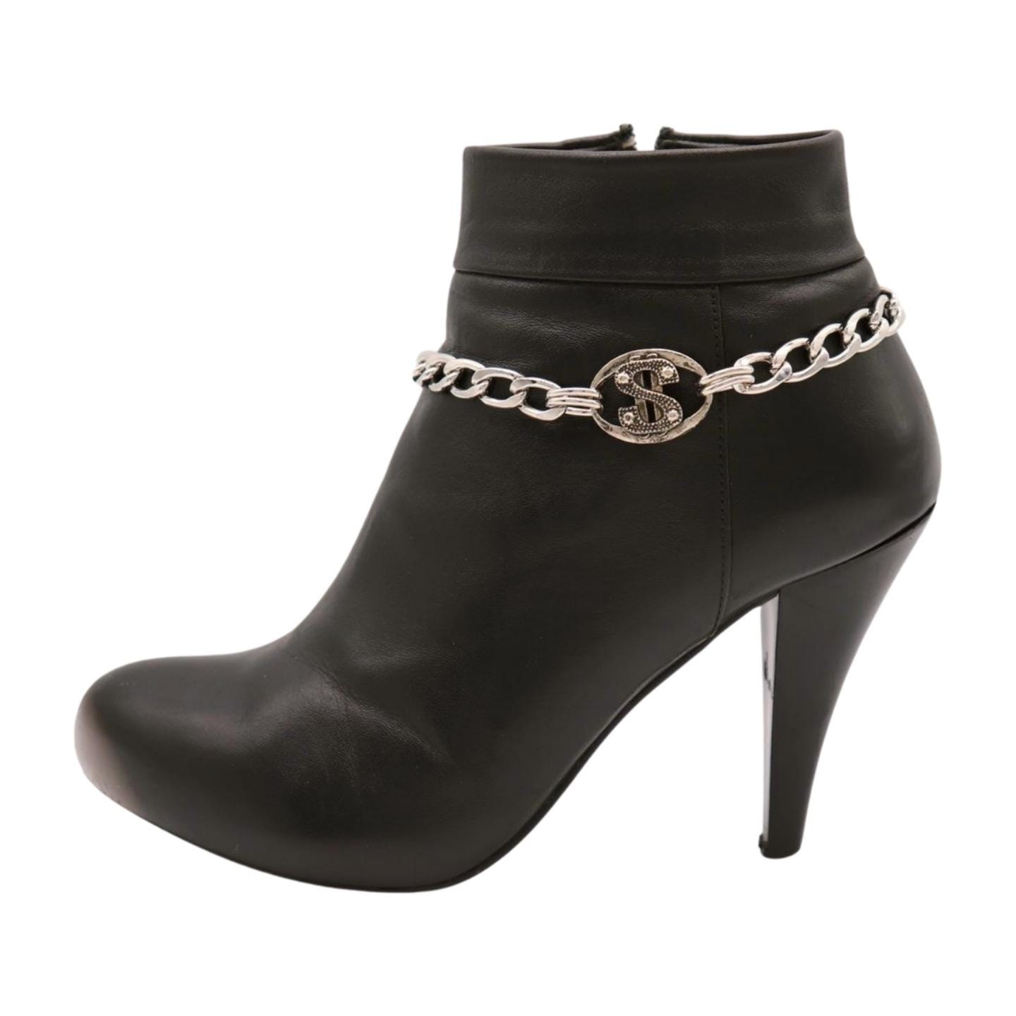 Take your shoe game from simple to stunning with this 2-piece Silver Boot Chain Bracelet Set featuring a standout Dollar Sign ($) charm. These edgy, glamorous anklet straps wrap around your boots or heels and dangle with attitude. Whether you're dressing up for a country rodeo, nightclub party, music festival, or just love urban streetwear, this eye-catching accessory adds high-impact fashion with zero effort.