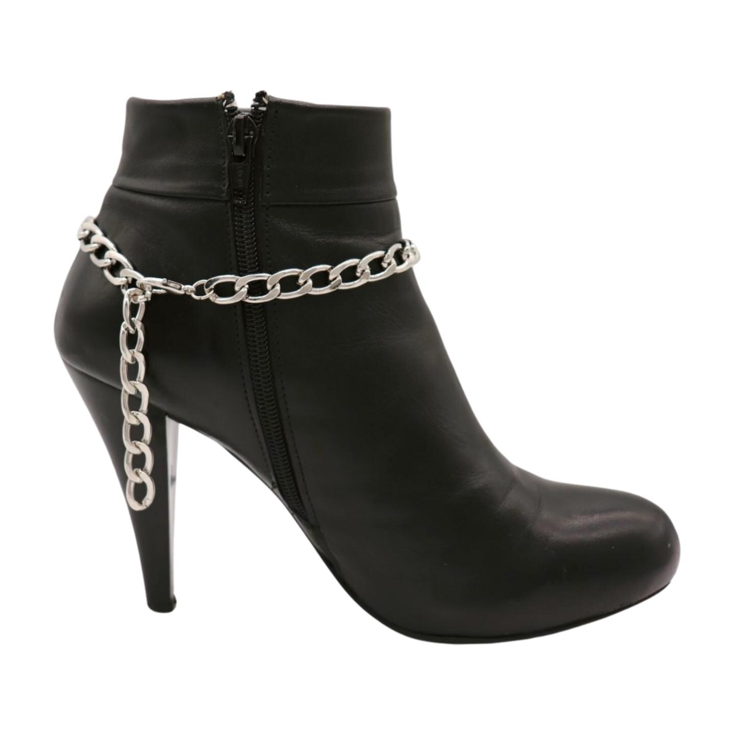 Western Bling Fashion A PAIR Boot Strap Chain Shoe Anklet Wrap Around - 2 Bracelets - Metal chain strand charm pendant