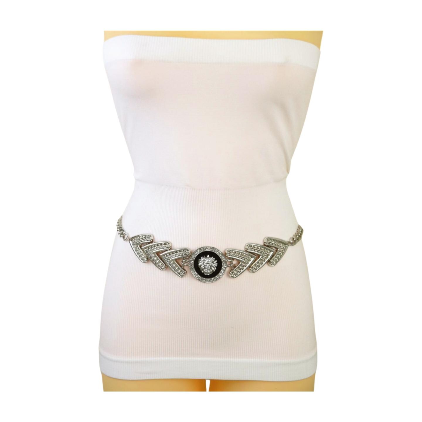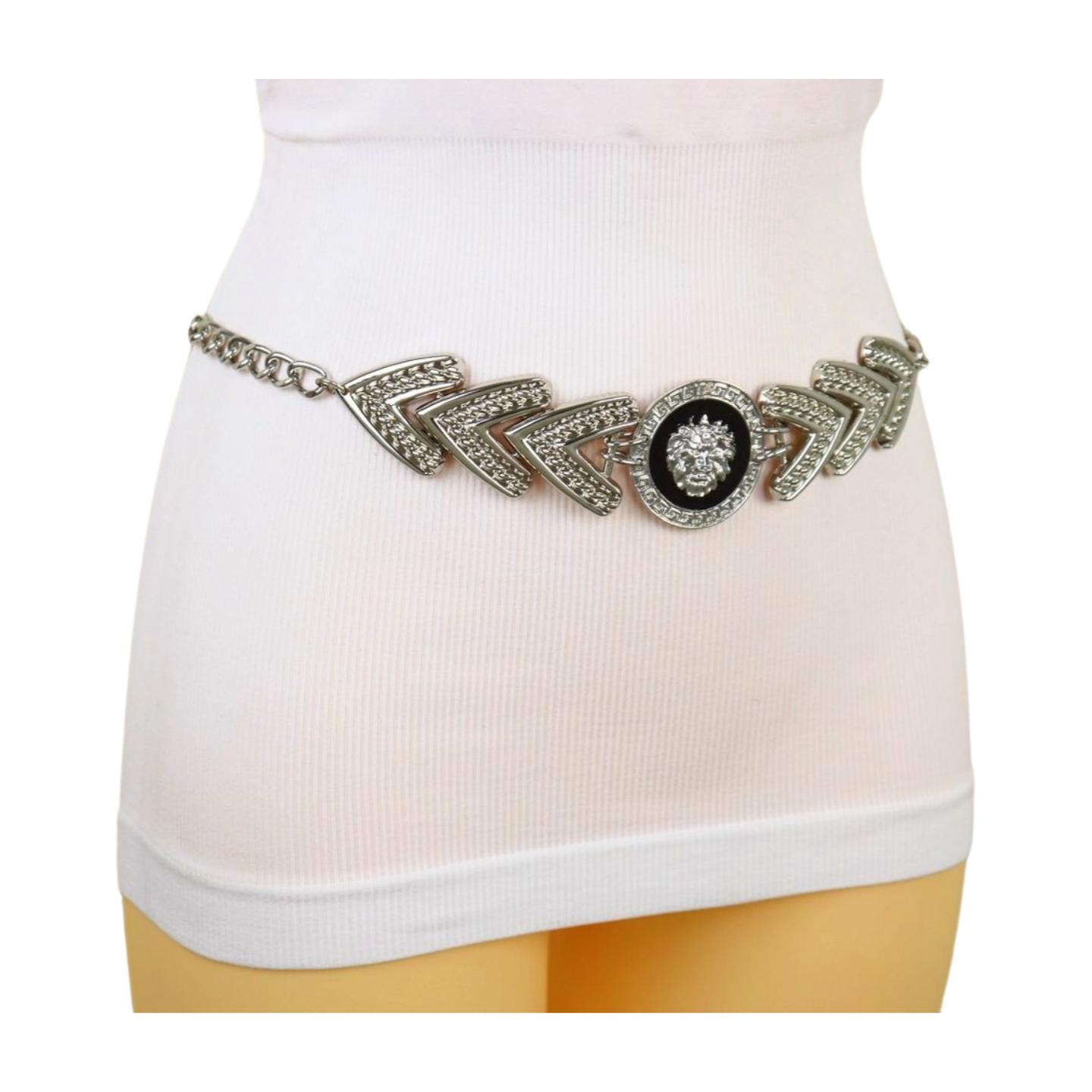 Women Silver Metal Arrowhead Waistband Fashion Belt Lion Head Coin Charm Size XS S M - WB17