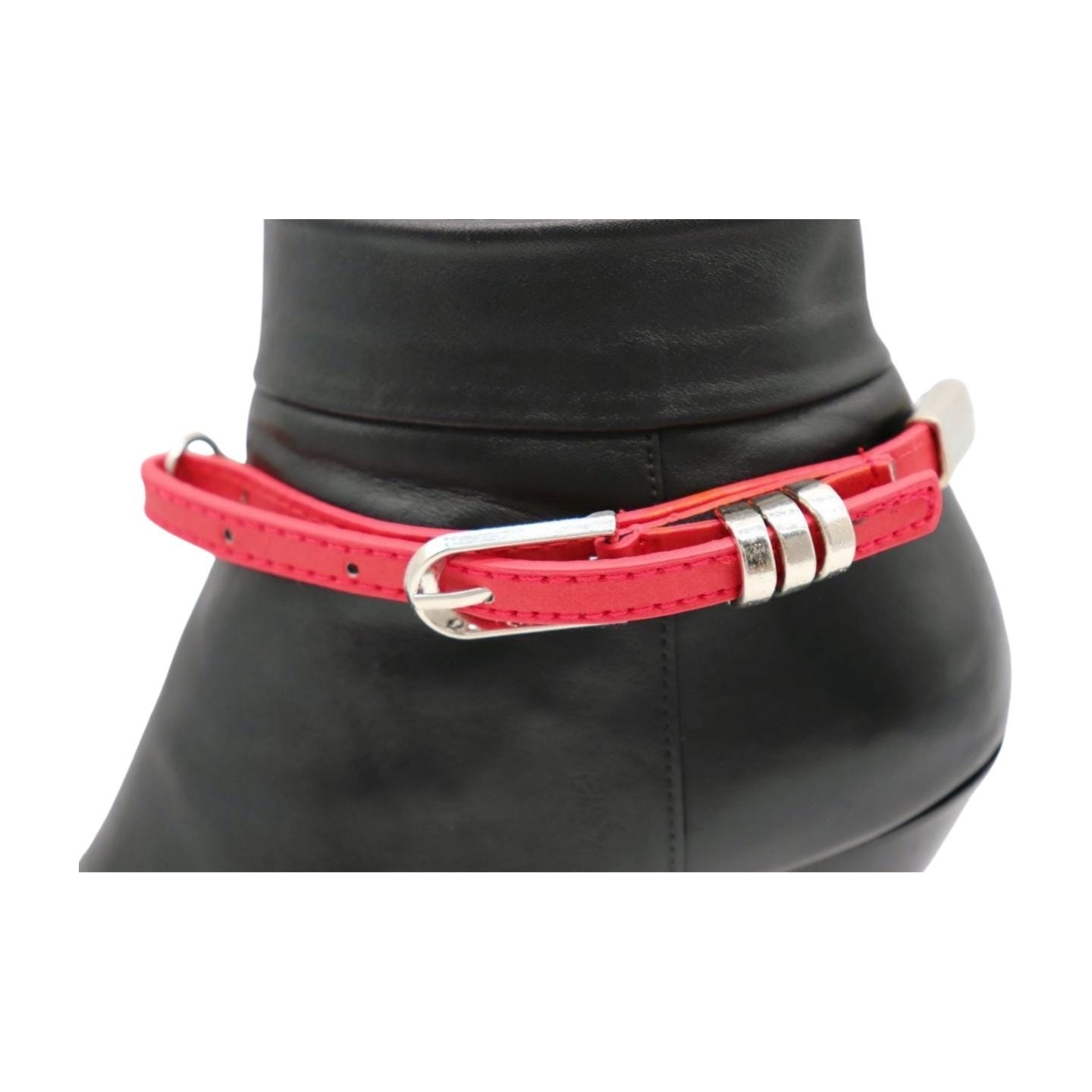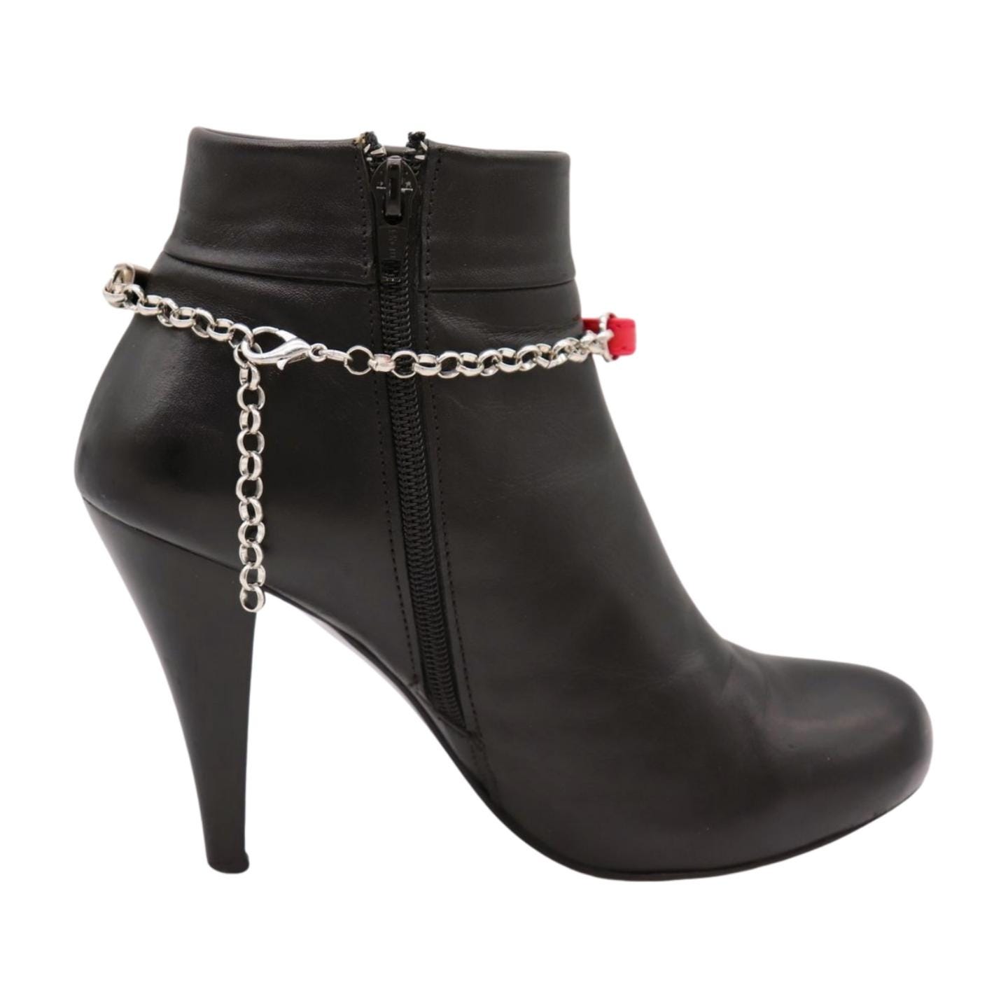women’s boot accessories, boot chain bracelet, boot jewelry, red boot strap anklet, faux leather shoe chain, punk rocker boot charms, western cowboy boot chain, adjustable boot charm, handmade boot strap USA, cowgirl accessories for boots, stylish women’s boot belts, faux leather boot buckle charm, red ankle boot strap chain