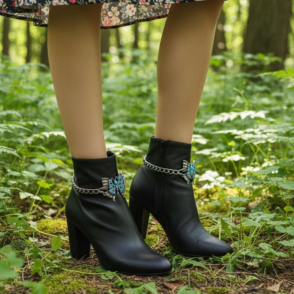 Introducing the Silver Butterfly Boot Chain Set — a 2-piece shoe accessory that transforms your boots from “meh” to “YES, QUEEN.”