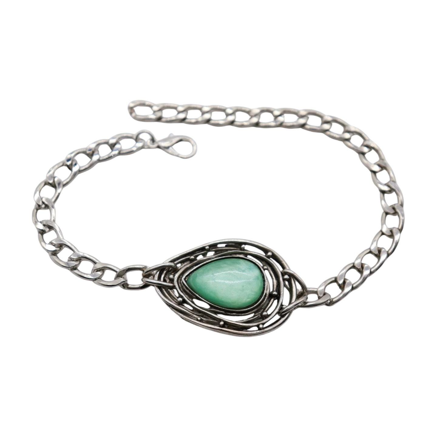 Meet the Women’s 2PCS Silver Boot Chain Bracelet Set — featuring stunning teal water drop charms that dangle, shine, and basically scream, “Yes, I came to slay.”