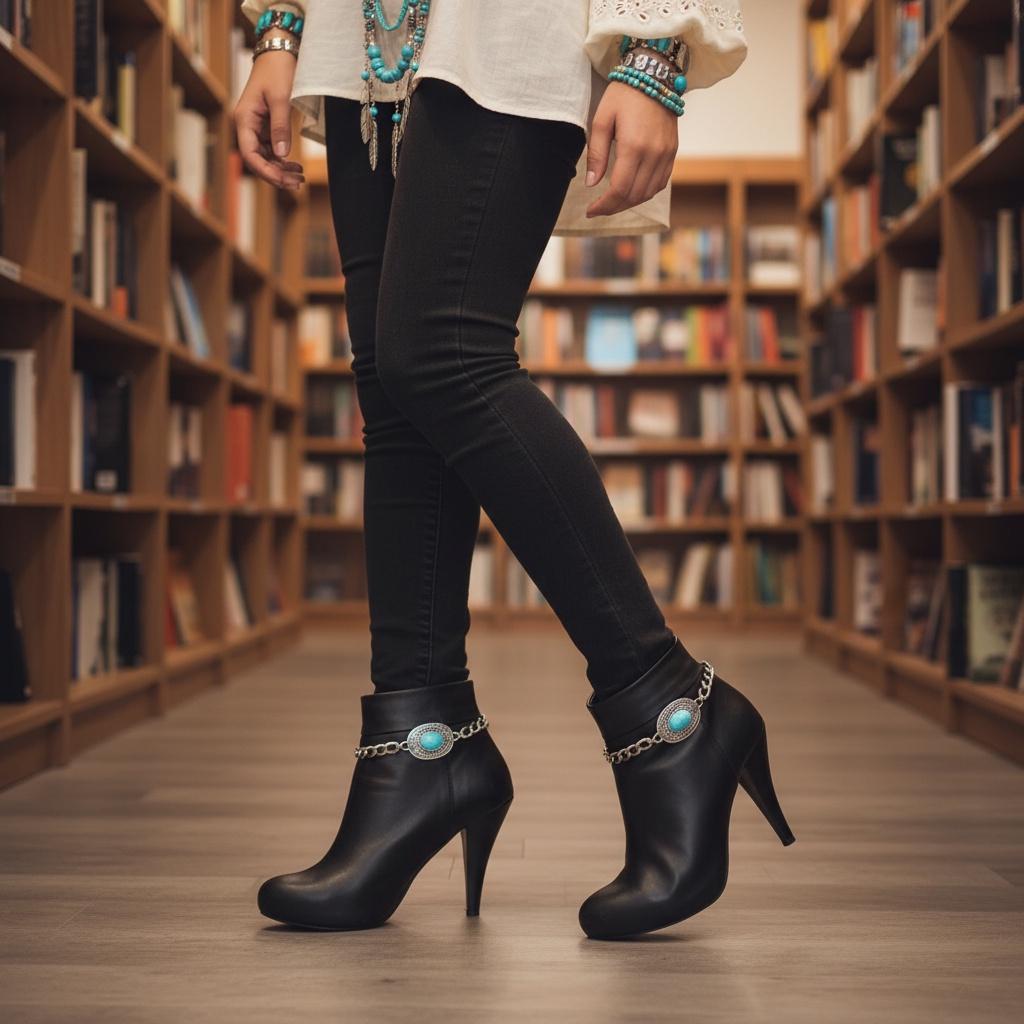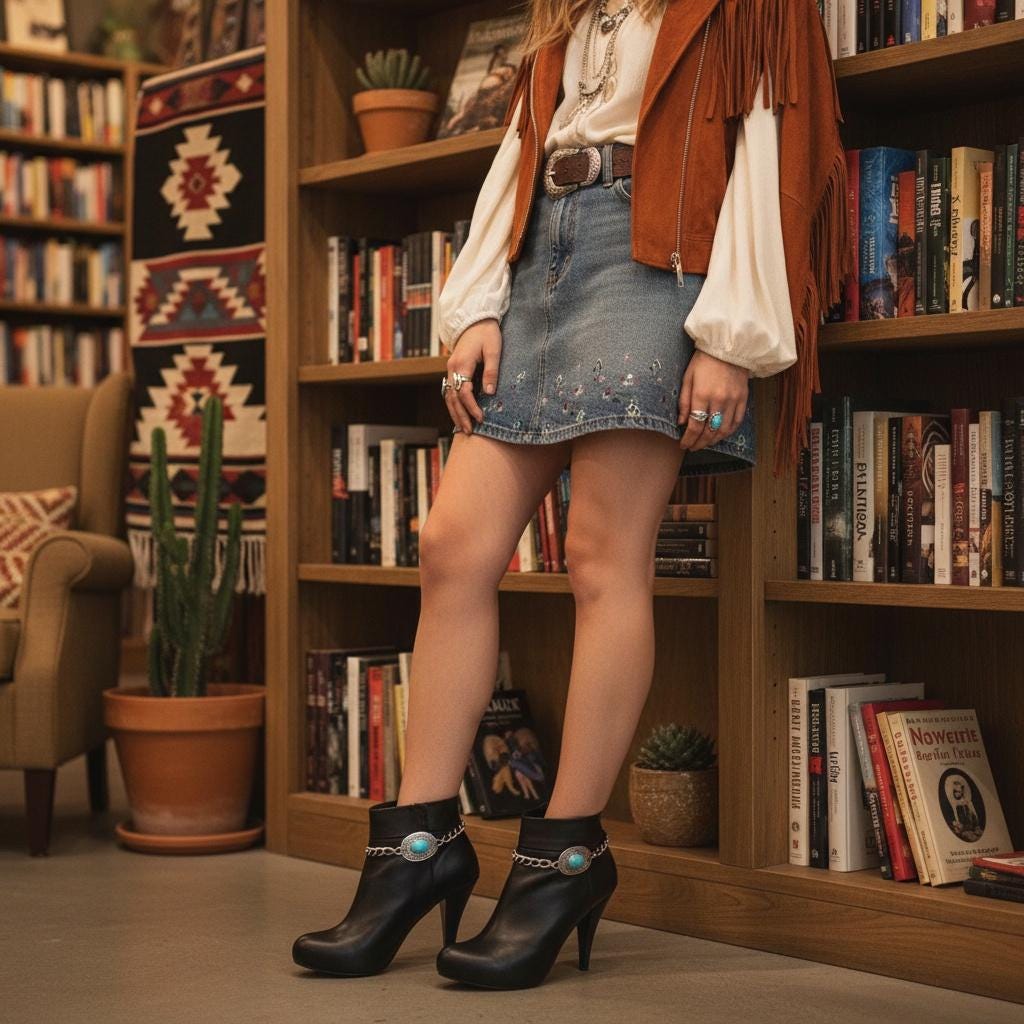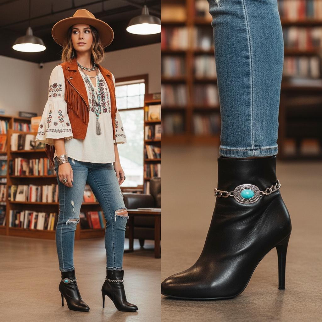 Silver Boot Chain Anklet Set: Turquoise Bead Concho Charms - Handmade USA