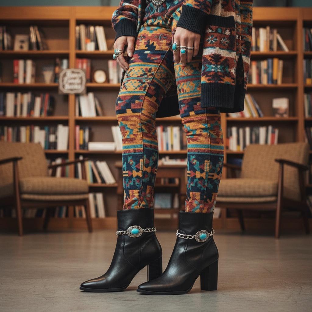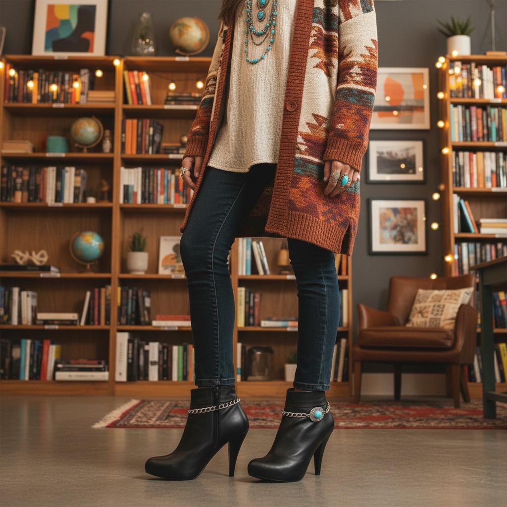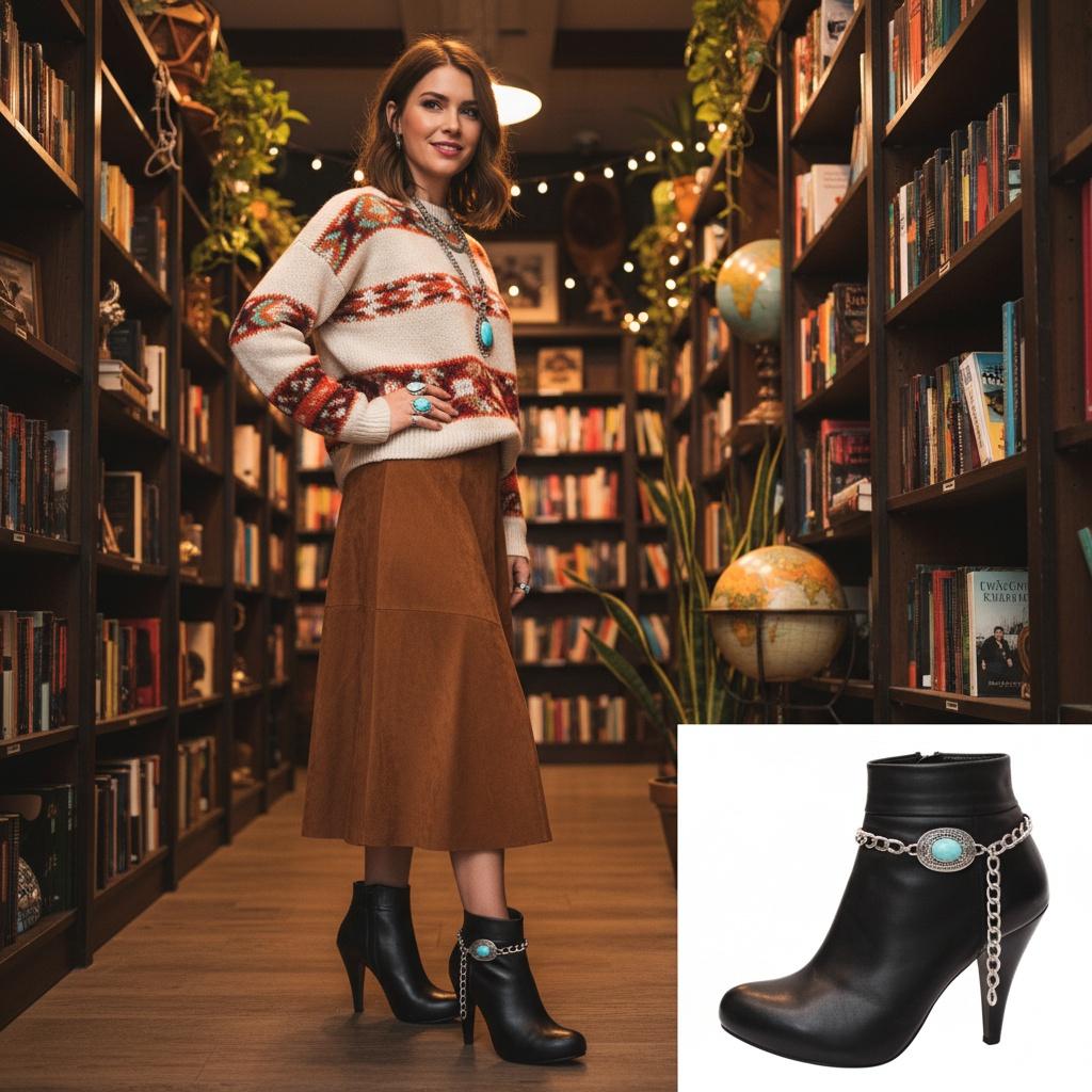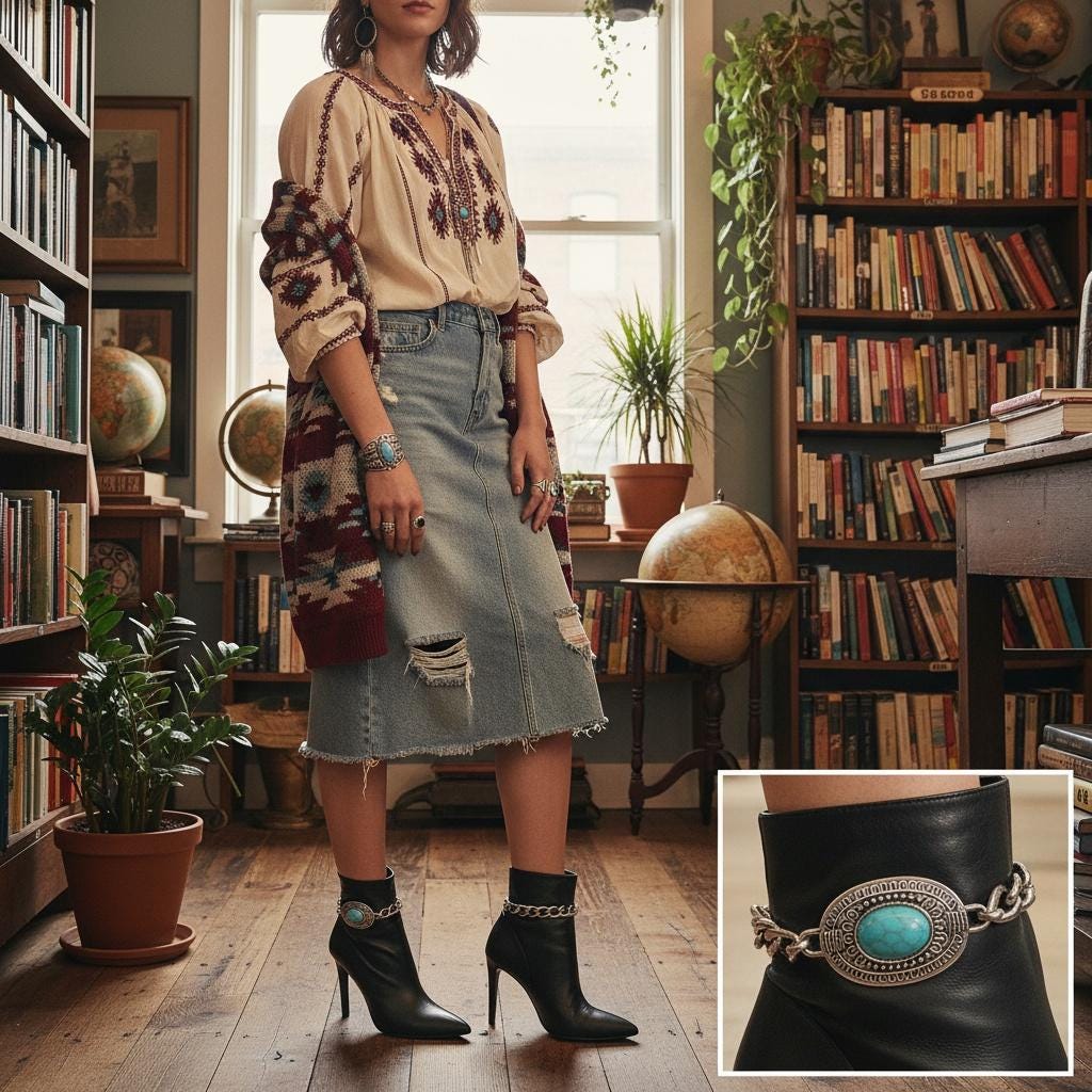 Silver Boot Chain Anklet Set: Turquoise Bead Concho Charms - Handmade USA