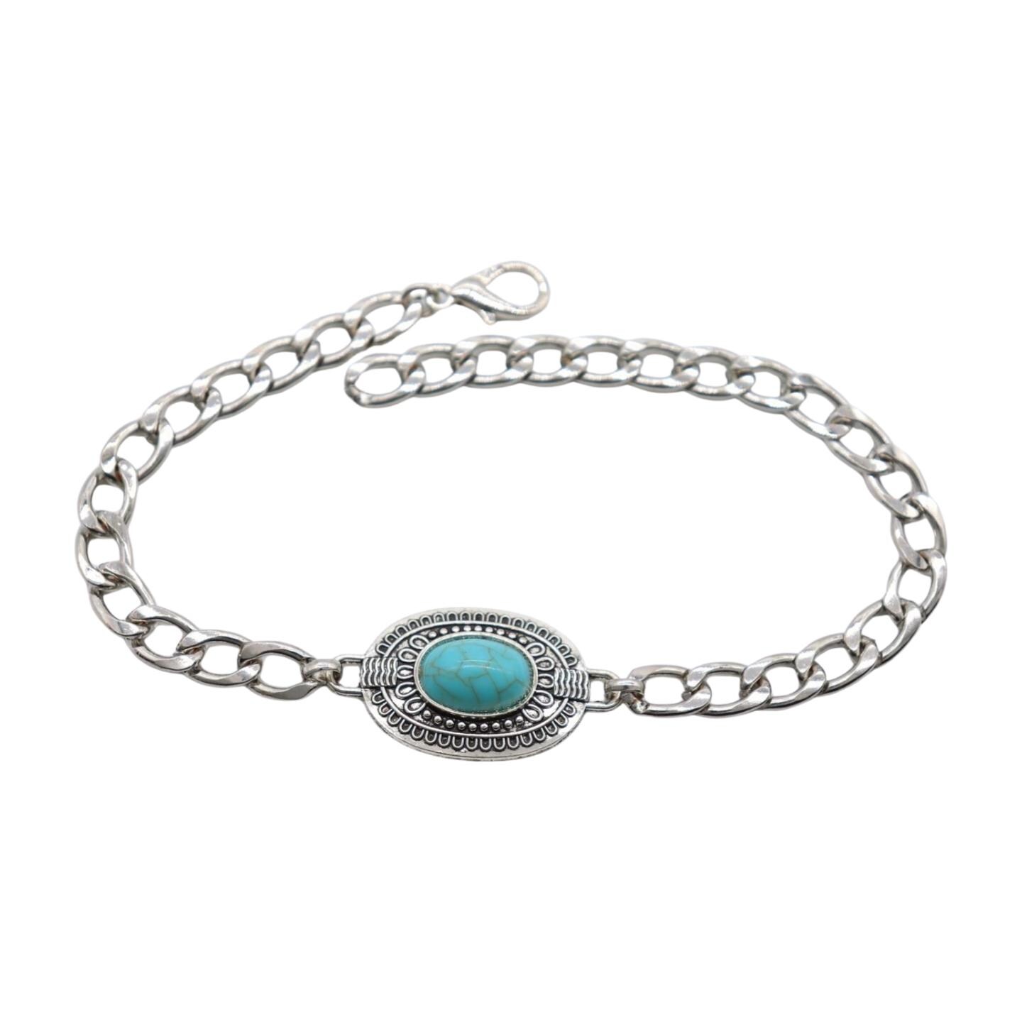 Color: Silver metal chain links and charm + turquoise blue bead (Oval Concho Turquoise)