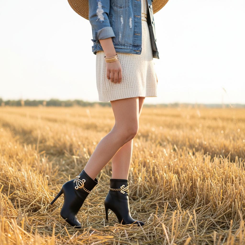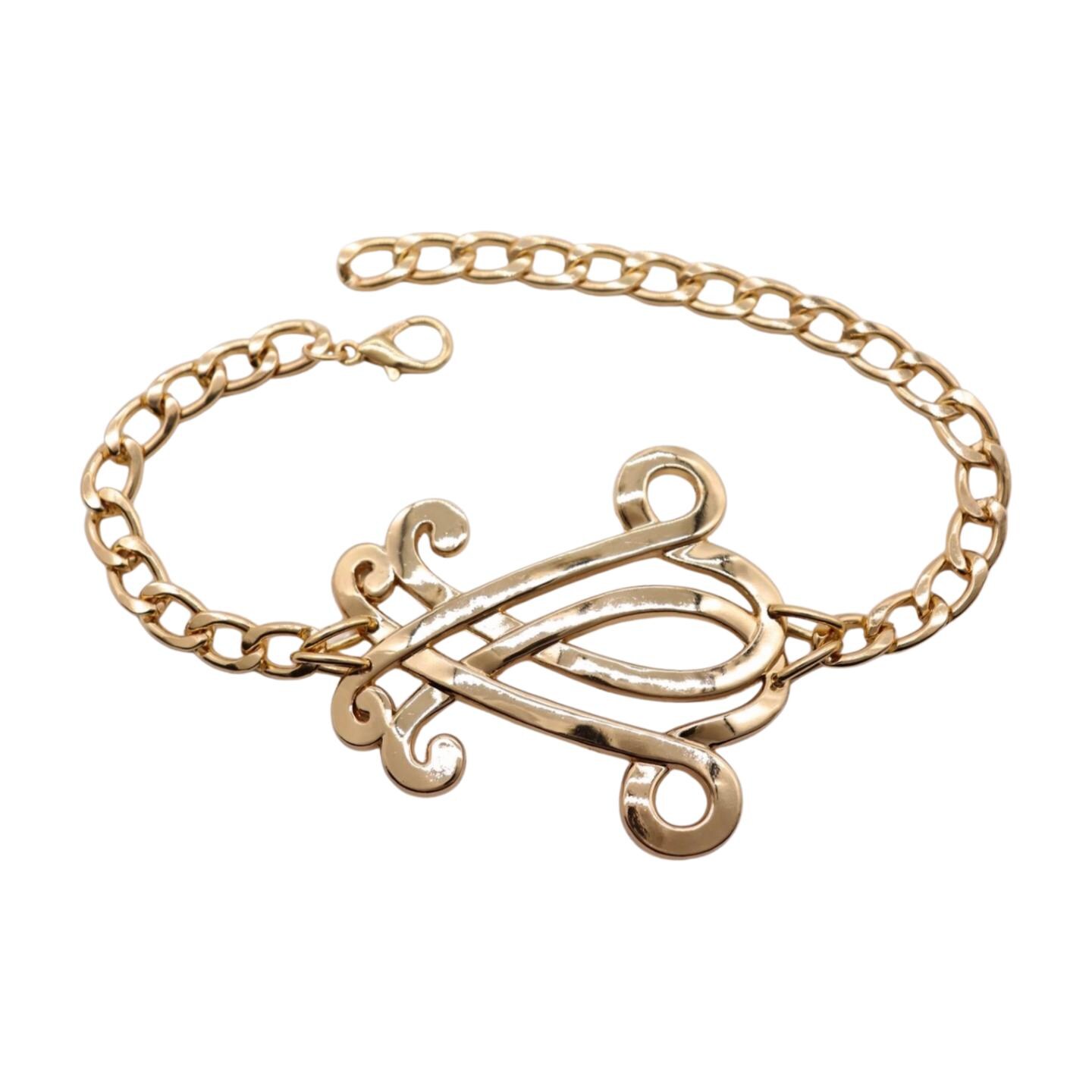 Statement Western Design: Bold gold-tone double-chain with an oversized scroll/concho charm instantly upgrades ankle boots, cowboy boots, and dress booties.