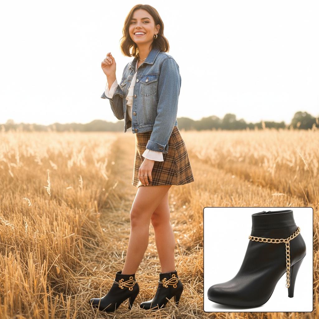 Meet the quickest glow-up your boots have ever seen. Clip on these Women’s Gold Boot Chain Anklets and watch a basic ankle boot turn runway-ready. The oversized scroll concho sits just at the outer ankle—eye-catching but wearable—while the sleek curb chains bring just enough shine for photos, festivals, and Friday nights. They’re comfortable, adjustable, and play nicely with everything from denim and graphic tees to sweater dresses and flowy skirts. If your style board says western glam, cowgirlcore, or city-biker with a wink, this is the add-to-cart moment.