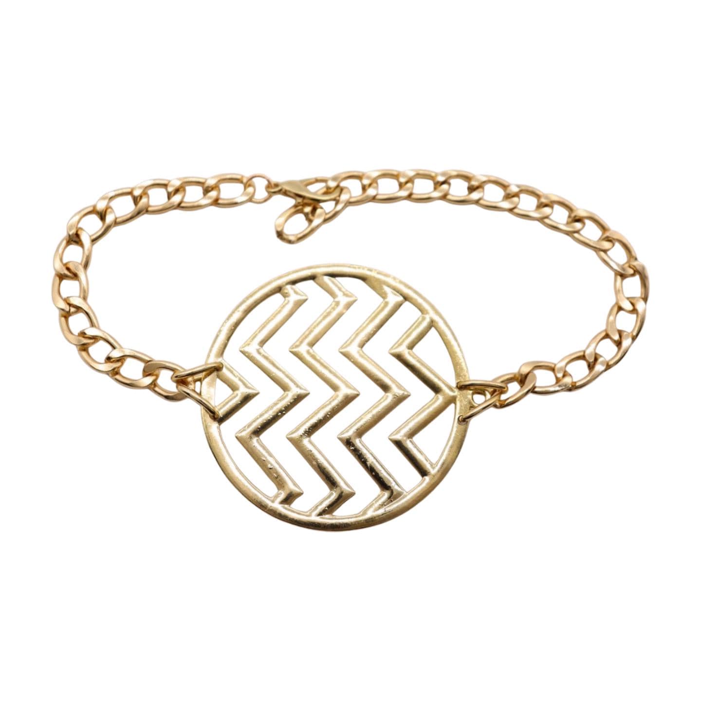 Women 2PCS Gold Metal Boot Chain Bracelet Shoe Anklet Round Chevron Charm Set Fashion Jewelry - A PAIR BC21