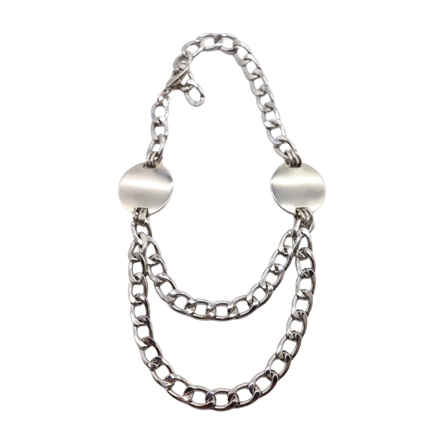Silver-tone metal alloy (curb chains + double-sided round disc charms).