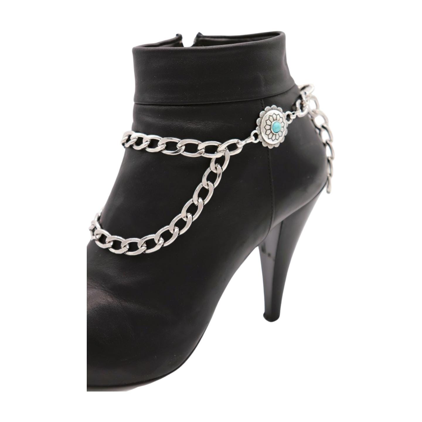 boot chains for women turquoise boot bracelet western boot jewelry cowgirl boot chain concho boot anklet flower boot straps adjustable boot accessories festival boho boot harness shoe anklet for boots turquoise jewelry for boots pair