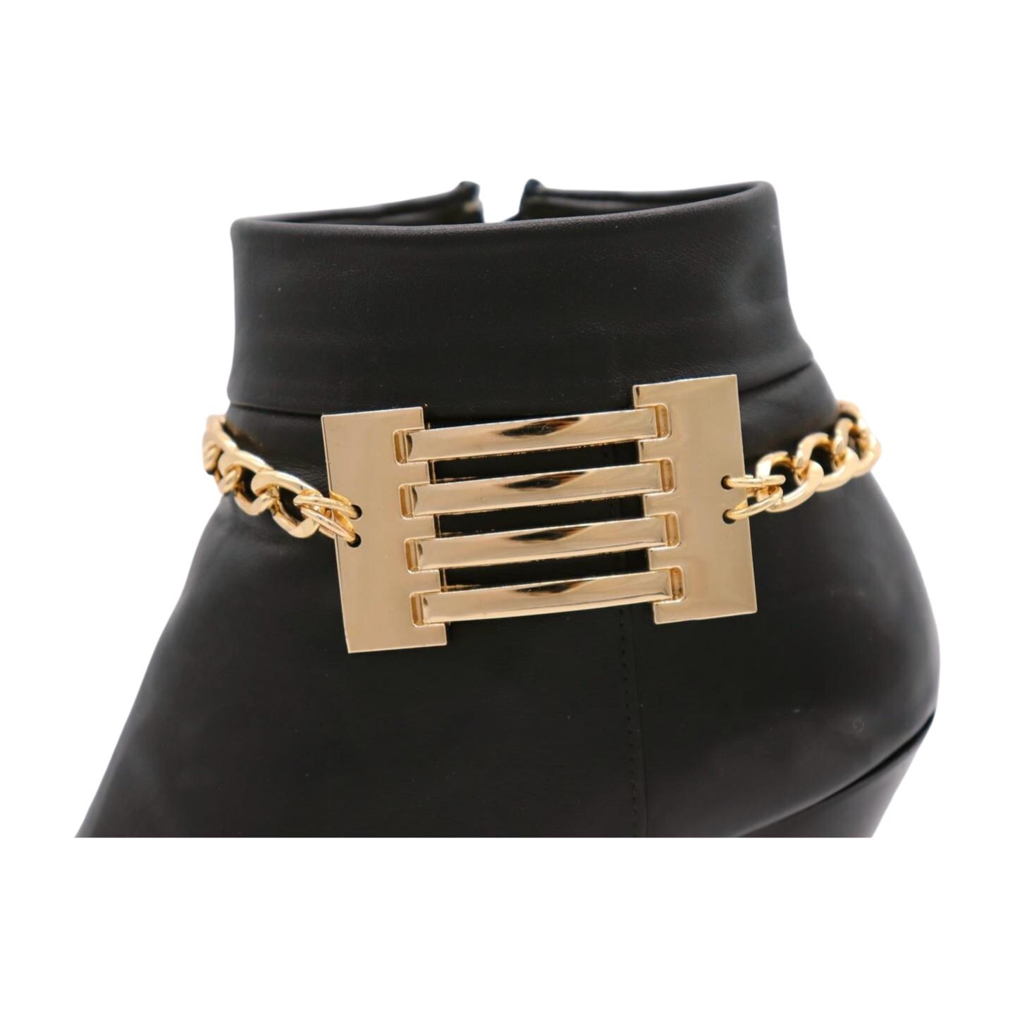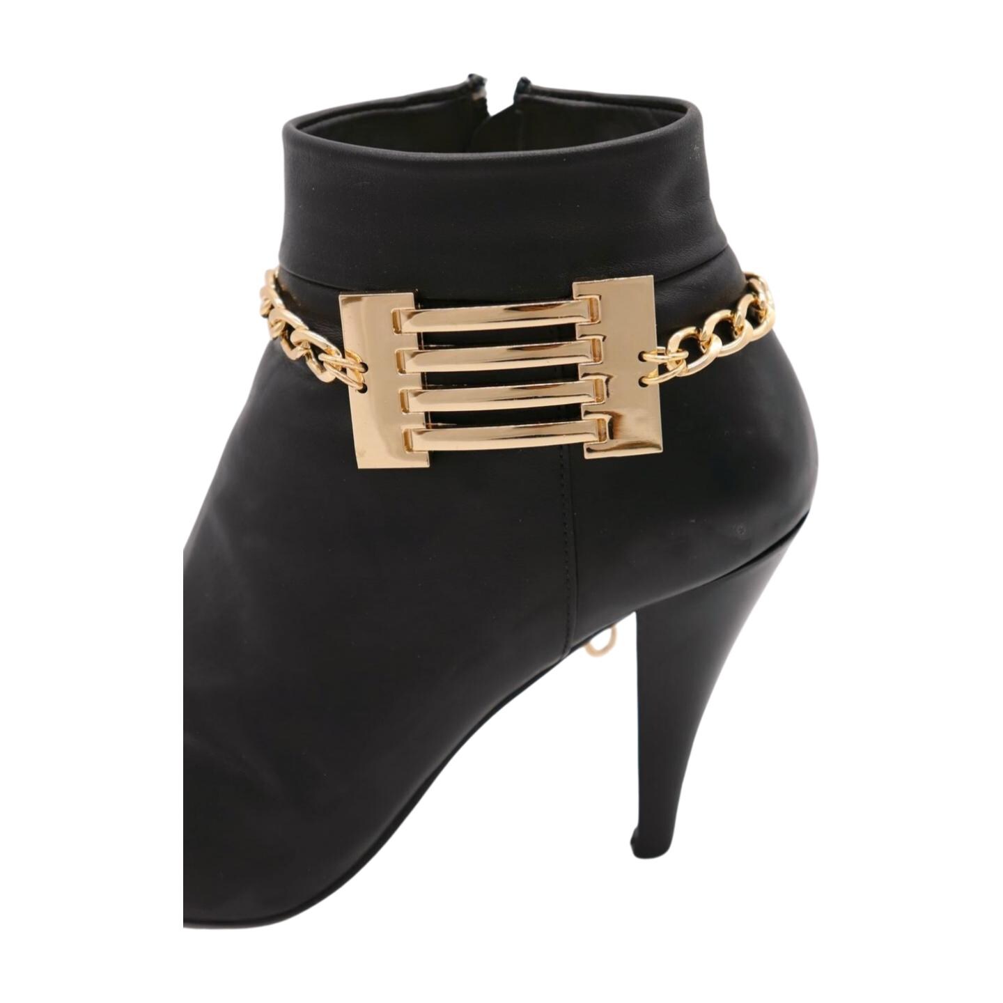 Women’s Gold-Tone Boot Chains – 2-Pc Pair | Adjustable 11–15 in | Ladder Plate Charm Boot Bracelet / Shoe Anklet | Western, Cowgirl, Biker, Festival Boot Jewelry | Handmade in USA