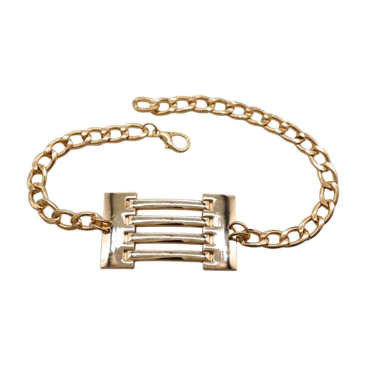 Bold Ladder-Plate Charm: Polished gold-tone plate with chunky curb chain = instant western glam that photographs beautifully.