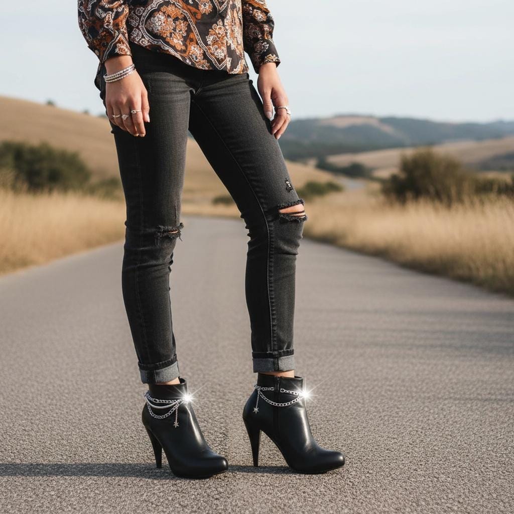 boot chain bracelet pair shoe anklet women silver celestial star moon western boot jewelry biker cowgirl festival adjustable chain curb chain ankle boot accessories boho rocker trendy gift for her