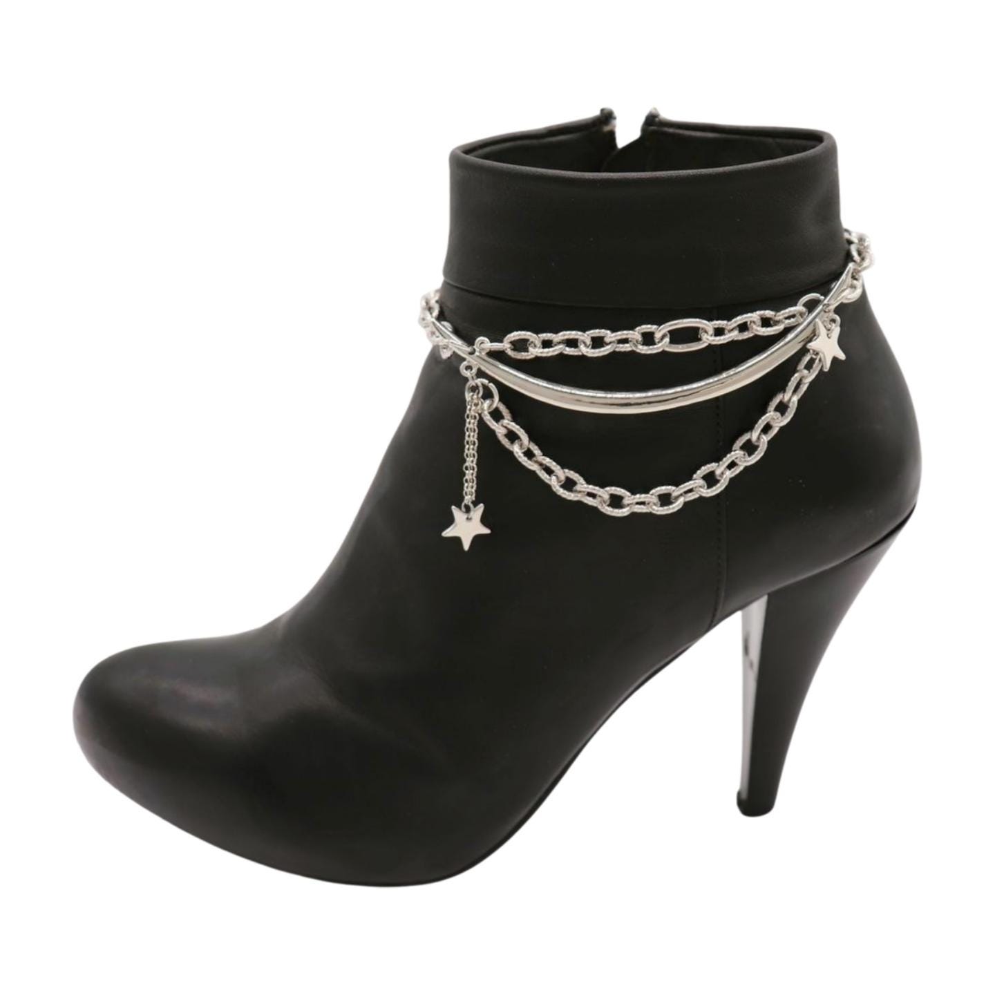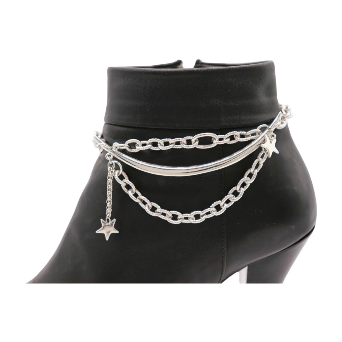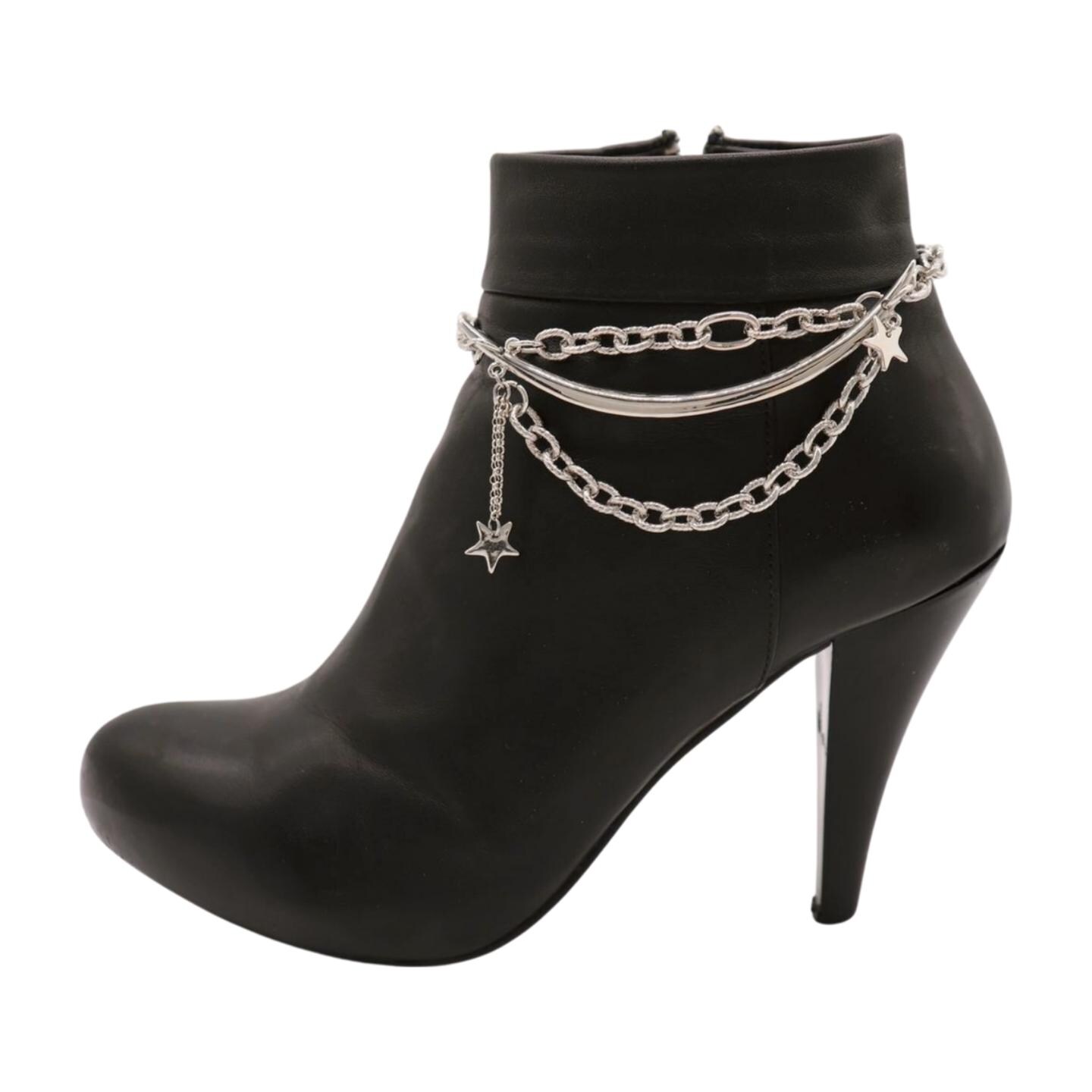 Women 2PCS Silver Metal Boot Chain Bracelet Shoe Anklet Stars Charm Set Fashion Jewelry - A PAIR BC28