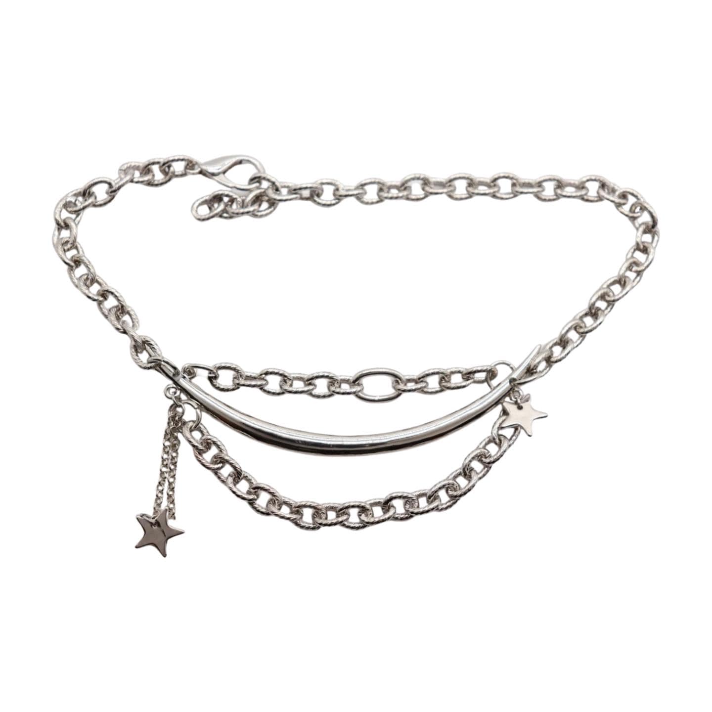 2PCS Silver Boot Chain Anklet Set – Stars & Crescent Moon Charm, Western & Biker Boot Jewelry – Adjustable 11–15 in – Pair, Handmade in USA