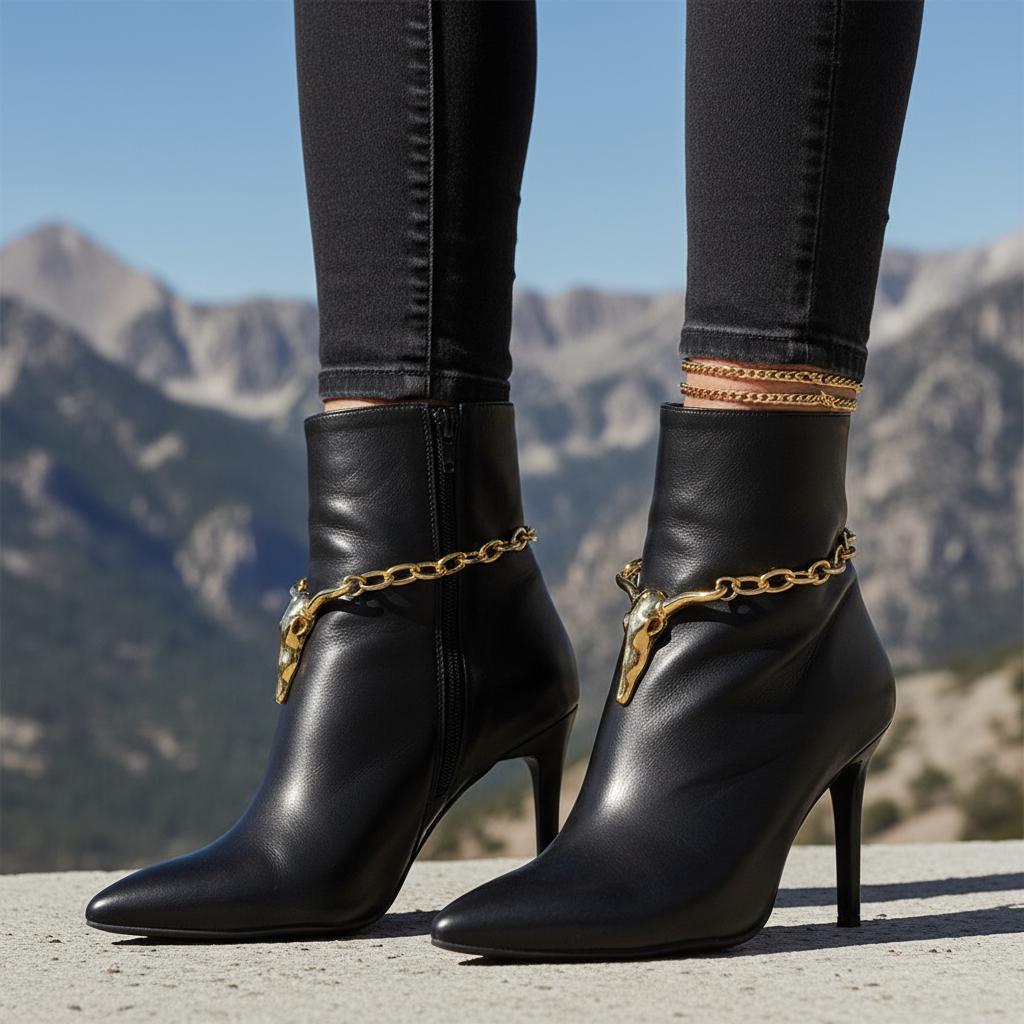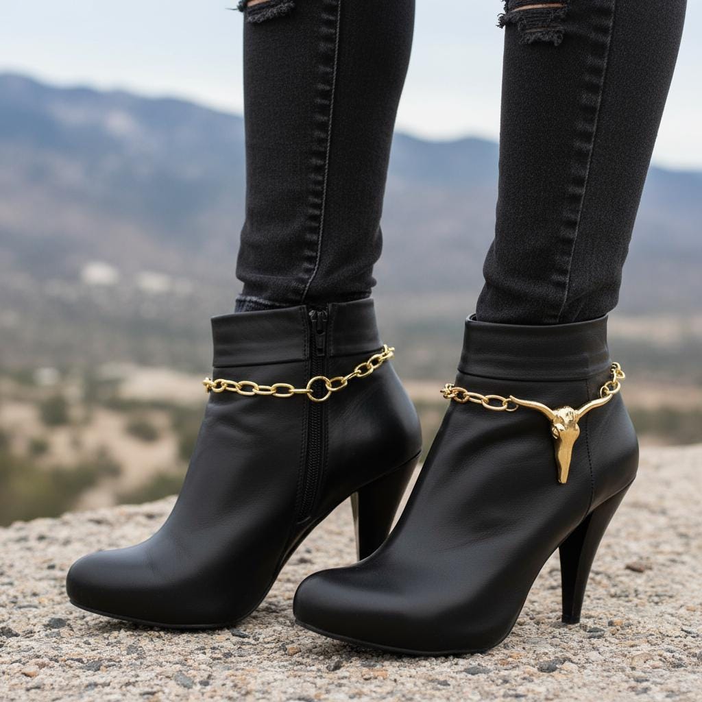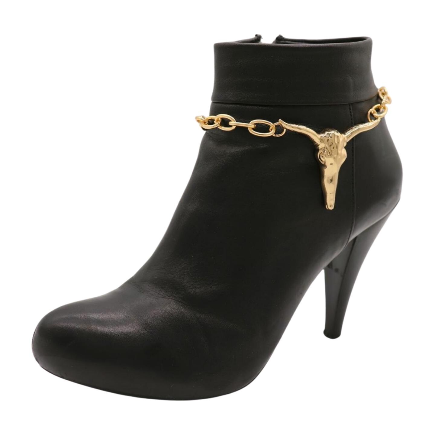 Meet your new “how is that not part of the boot?” accessory. The BC33 Gold Longhorn Boot Chain Anklet Set turns simple boots into show-stoppers in one easy clip. Each anklet features a polished gold longhorn/bull skull charm on a sleek oval-link chain that drapes smoothly around your boot. Whether you’re headed to a concert, a weekend festival, or just running errands with a little extra yeehaw, these chains add instant personality—no commitment, no DIY tools, no drama.