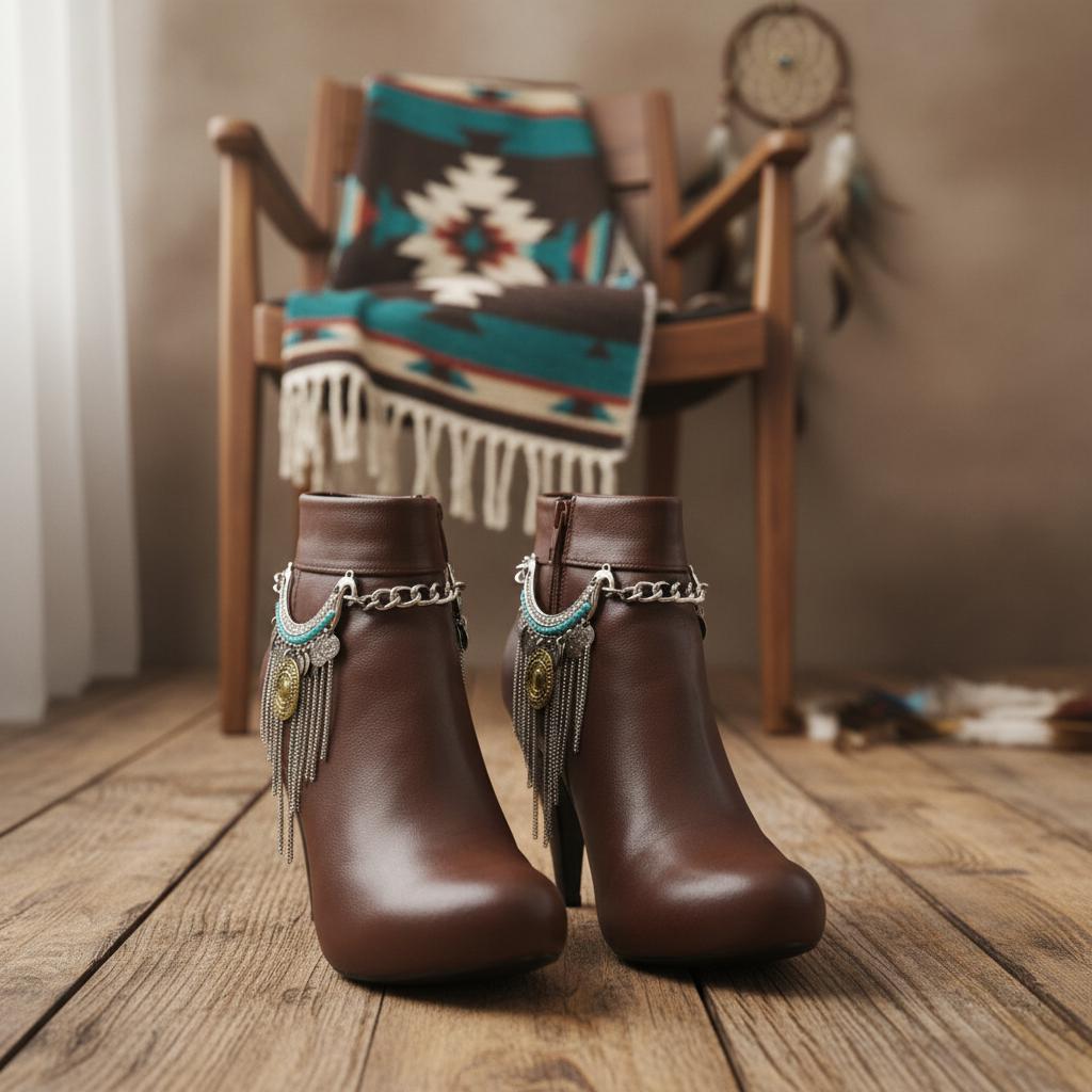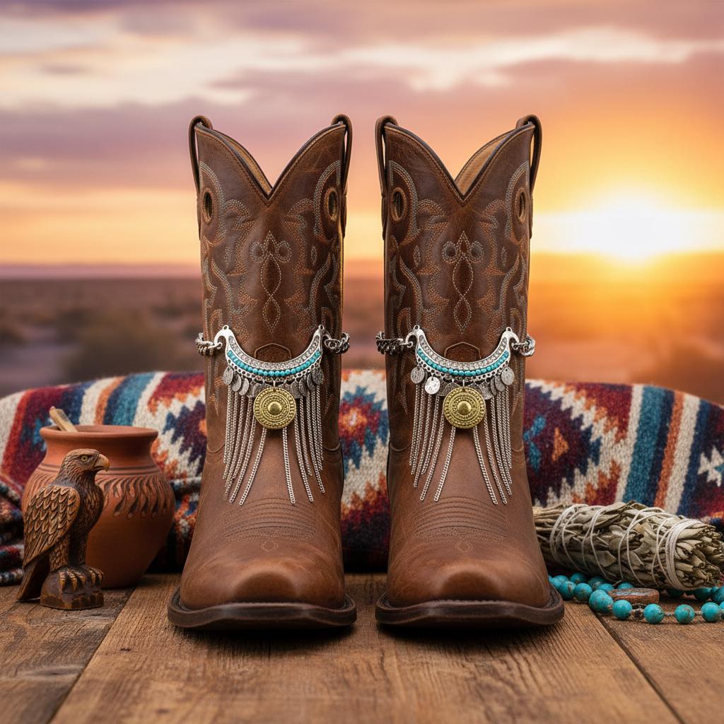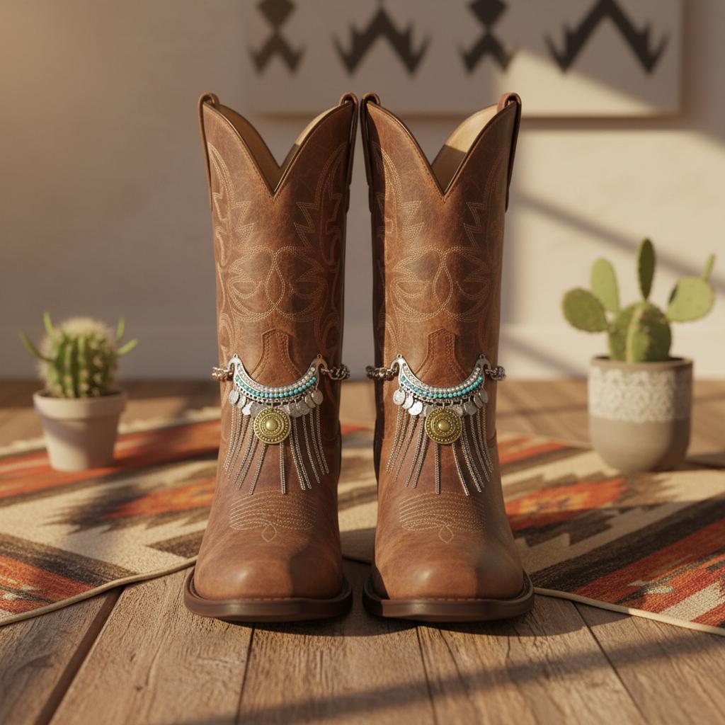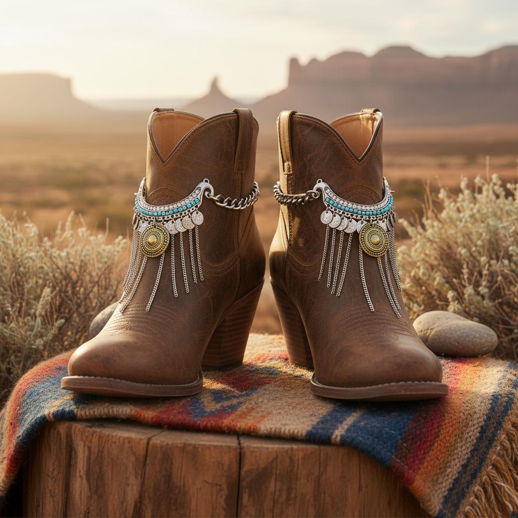 2PCS Fringe Boot Chains: Silver Cowgirl Anklets, Ethnic Charm, Handmade USA Turquoise PAIR
