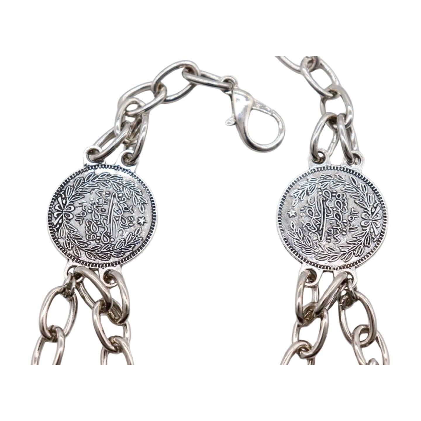 Color: Gold metal chain links and charms (double sided ethnic coins)