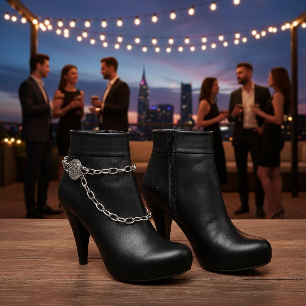 Silver Boot Chain Bracelet: Coin Charm Shoe Anklet, Western Boho Jewelry (Pair)
