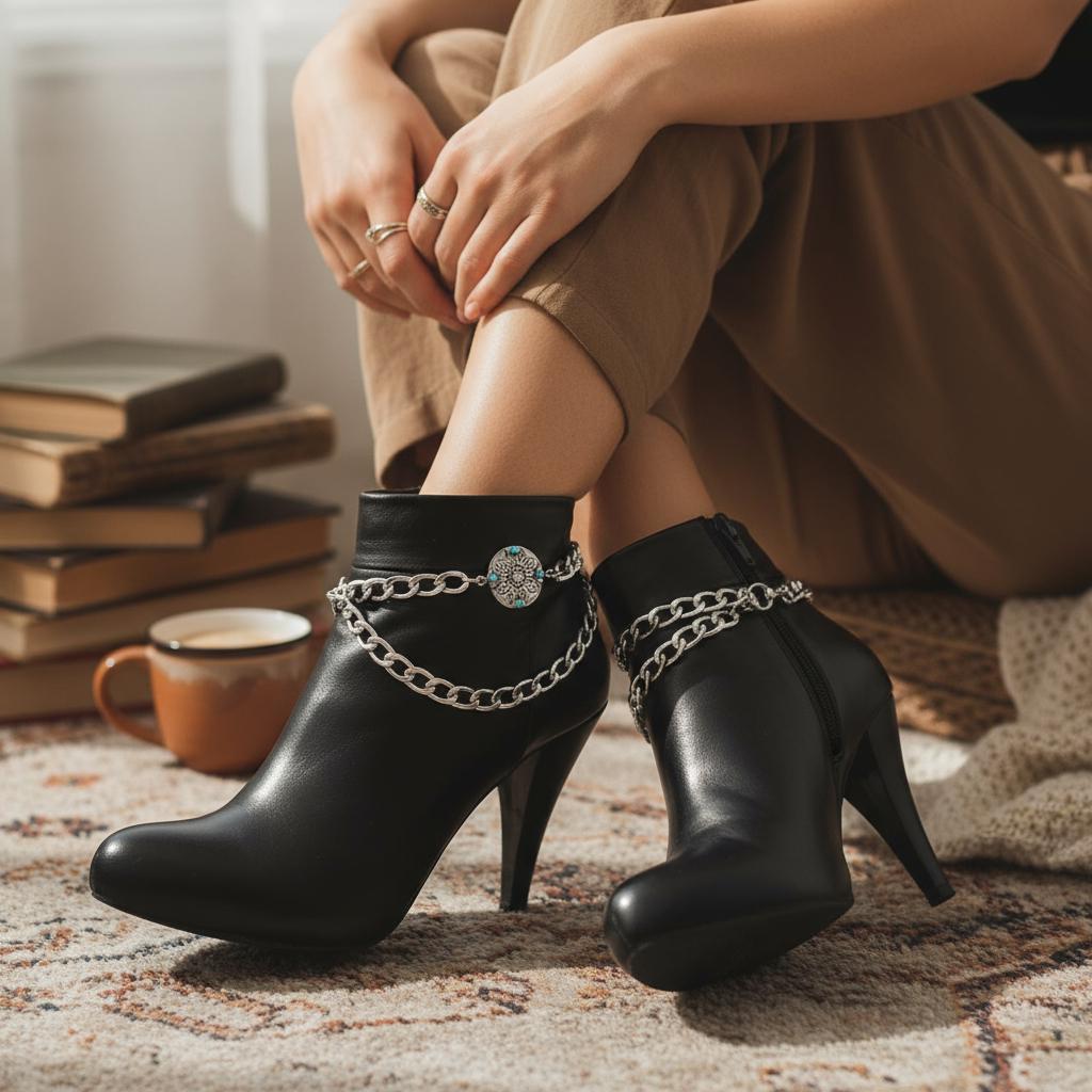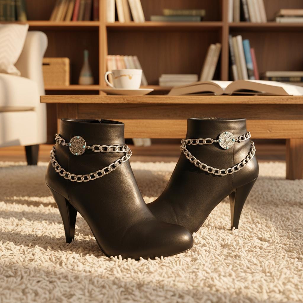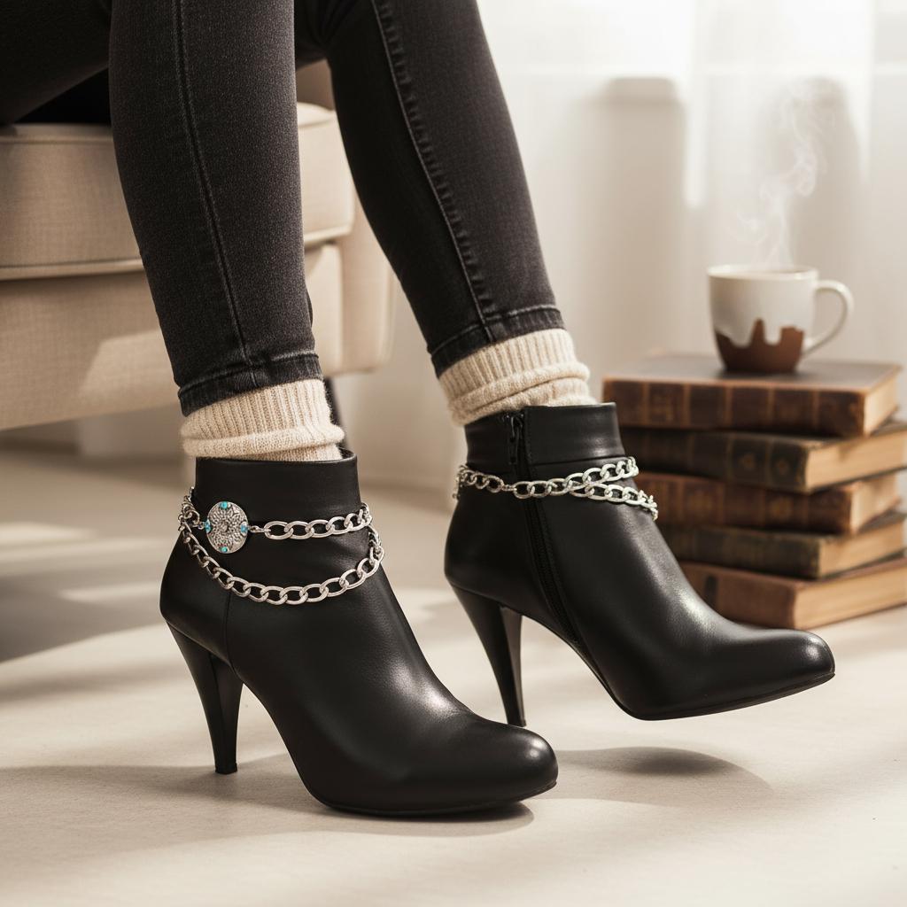 Your boots called—they want a main-character moment. Clip on BC38 and watch the silver double-chain sweep across the vamp while the turquoise coin throws a little Southwest sunshine on every step. Jeans, sweater dresses, leather leggings, floral skirts—somehow it works with all of them.