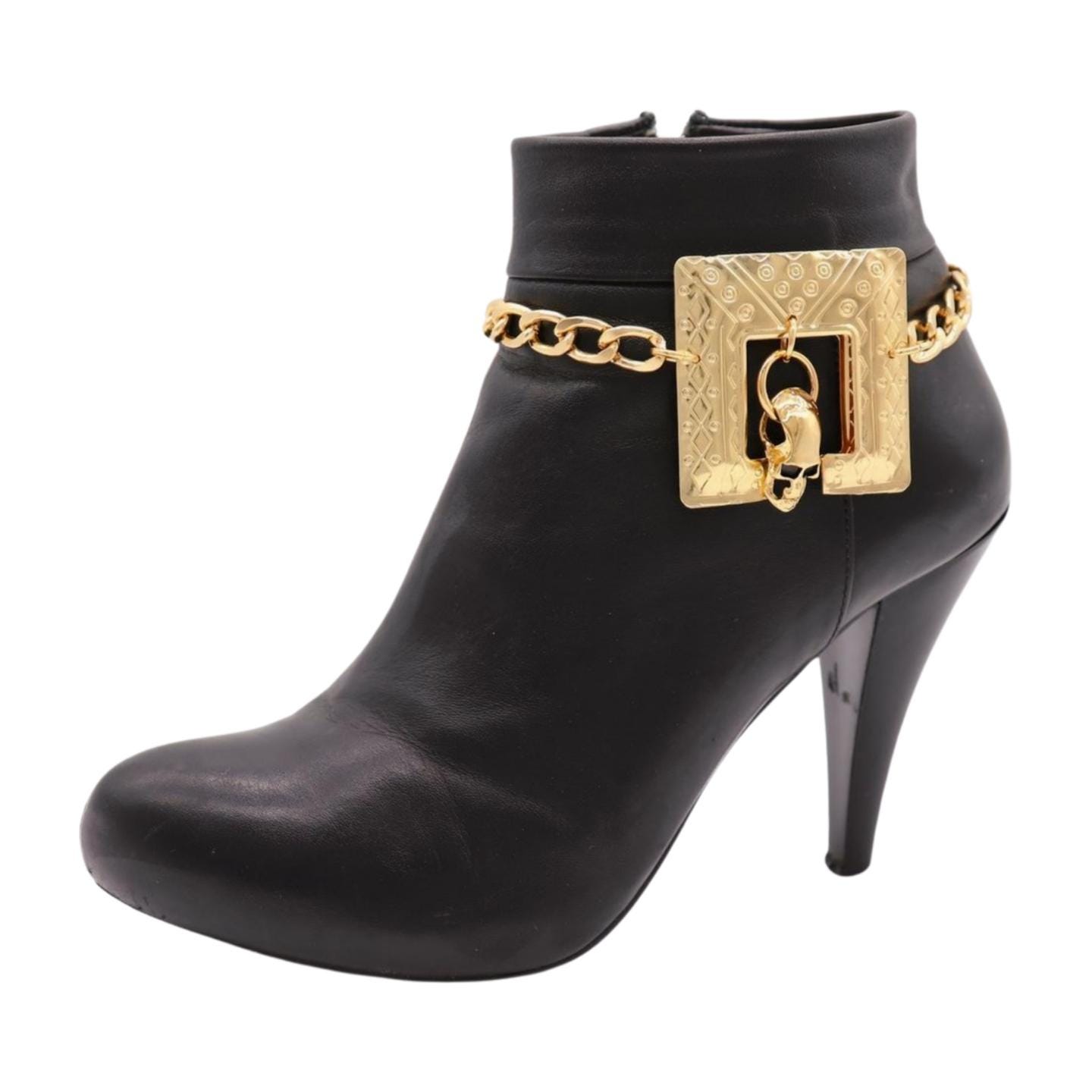 Instant Boot Glow-Up: Clip on these gold-tone boot chains to turn everyday boots into bold, street-ready style. The engraved square plate and dangling skull charm bring glam-rock edge with Western attitude.