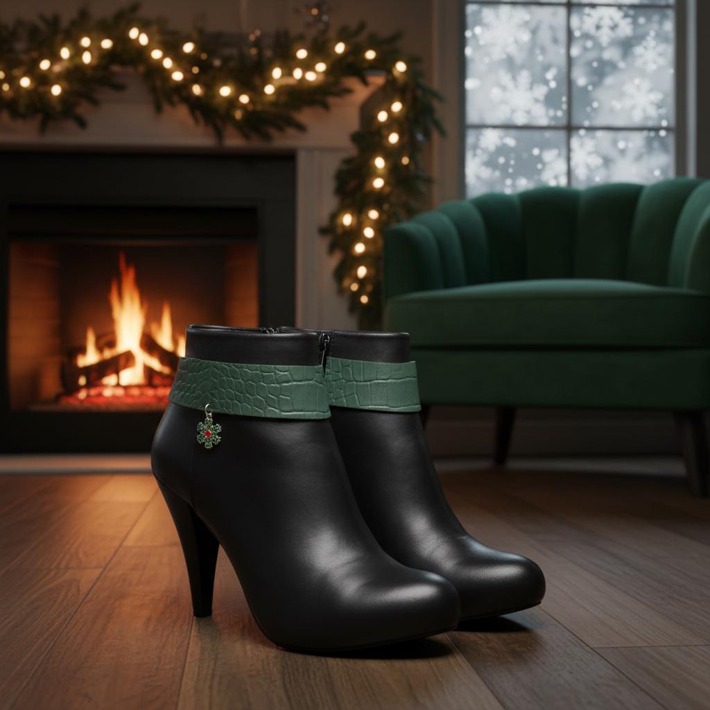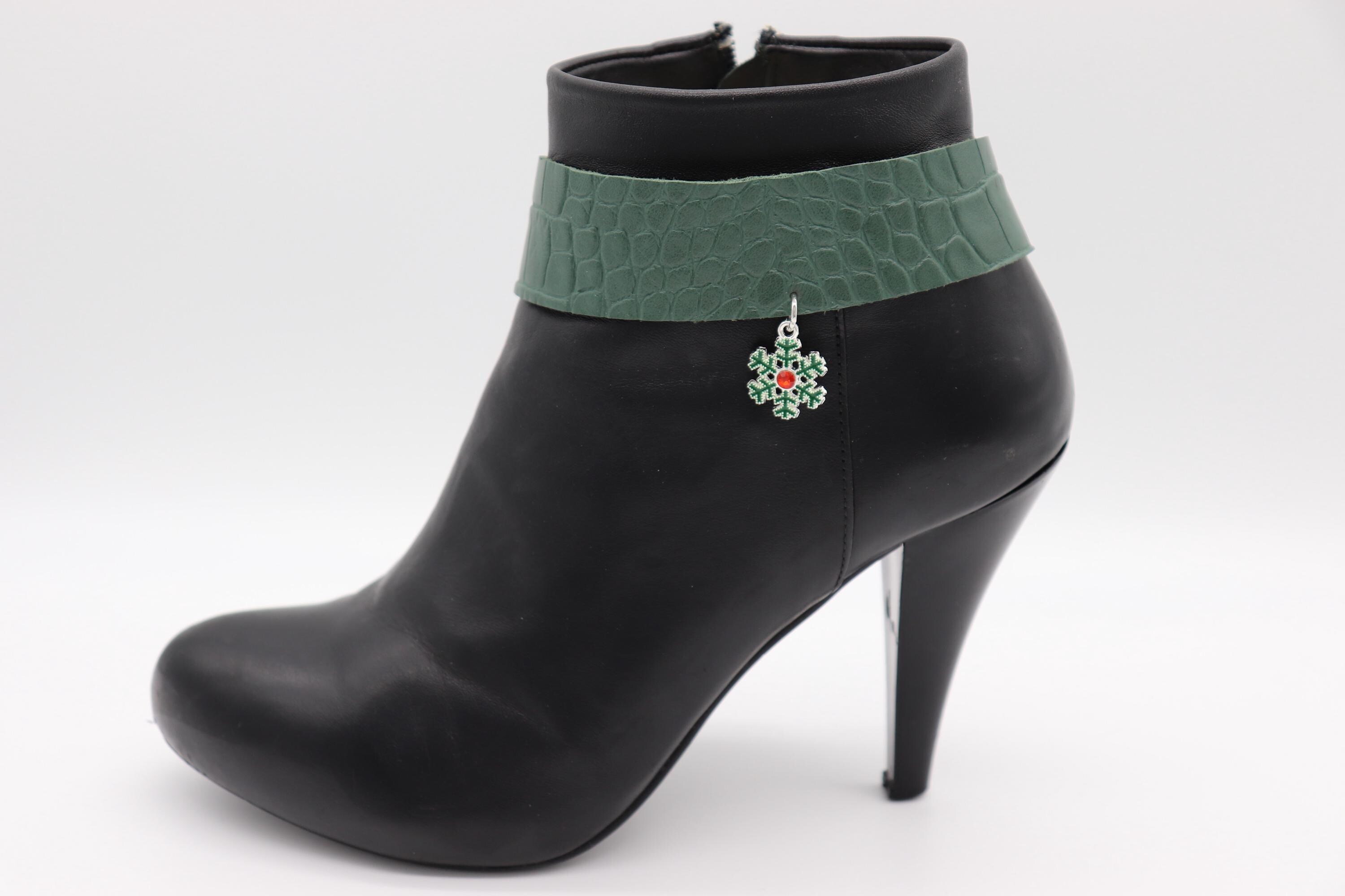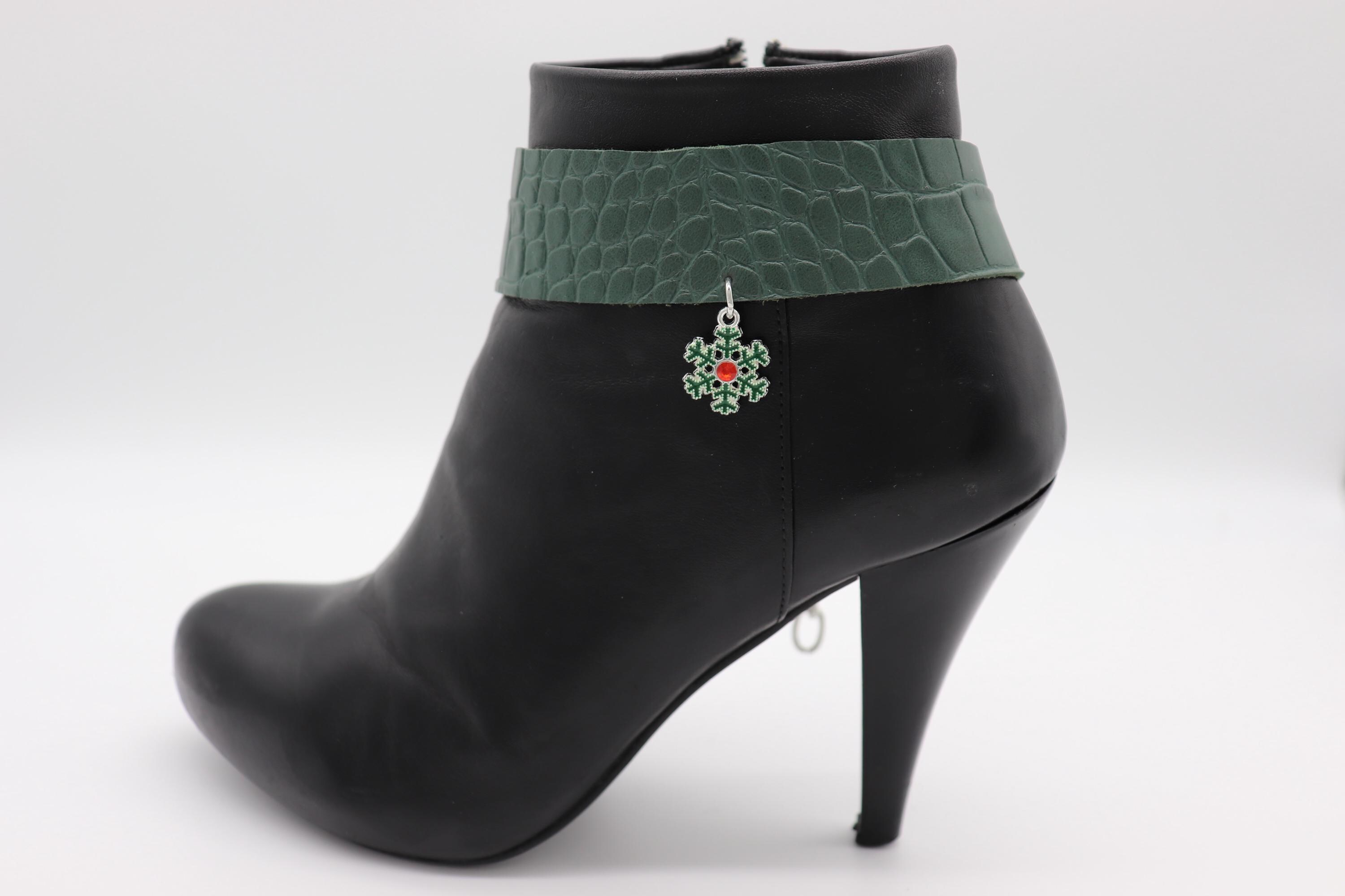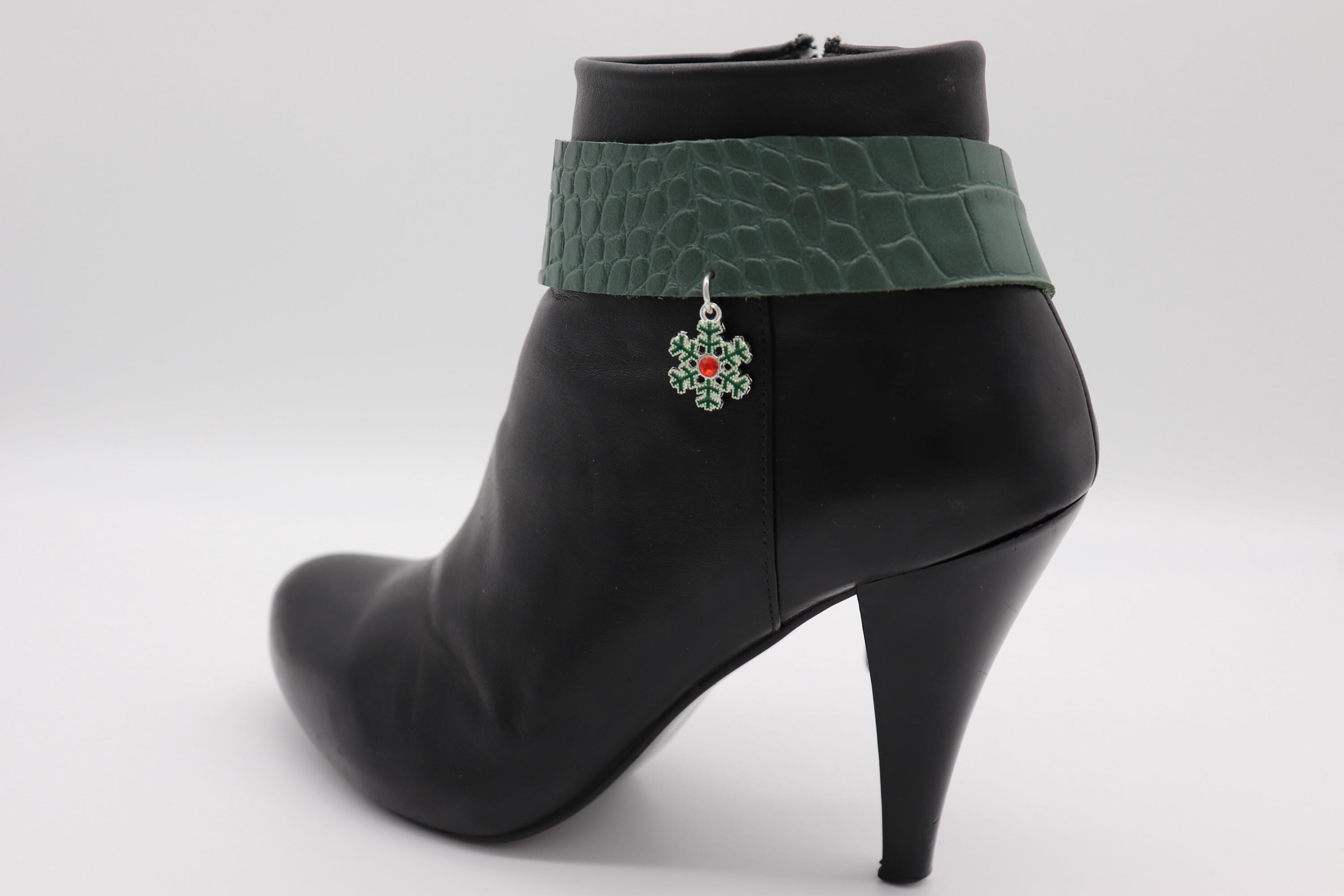 western boot chain cowgirl boot bracelet rodeo boot jewelry christmas boot anklet holiday boot accessories green band snowflake charm outfit bling adjustable chain shoe anklet women boot strap boot charms pair gift ideas winter outfits party accessories small batch made in usa handmade limited edition