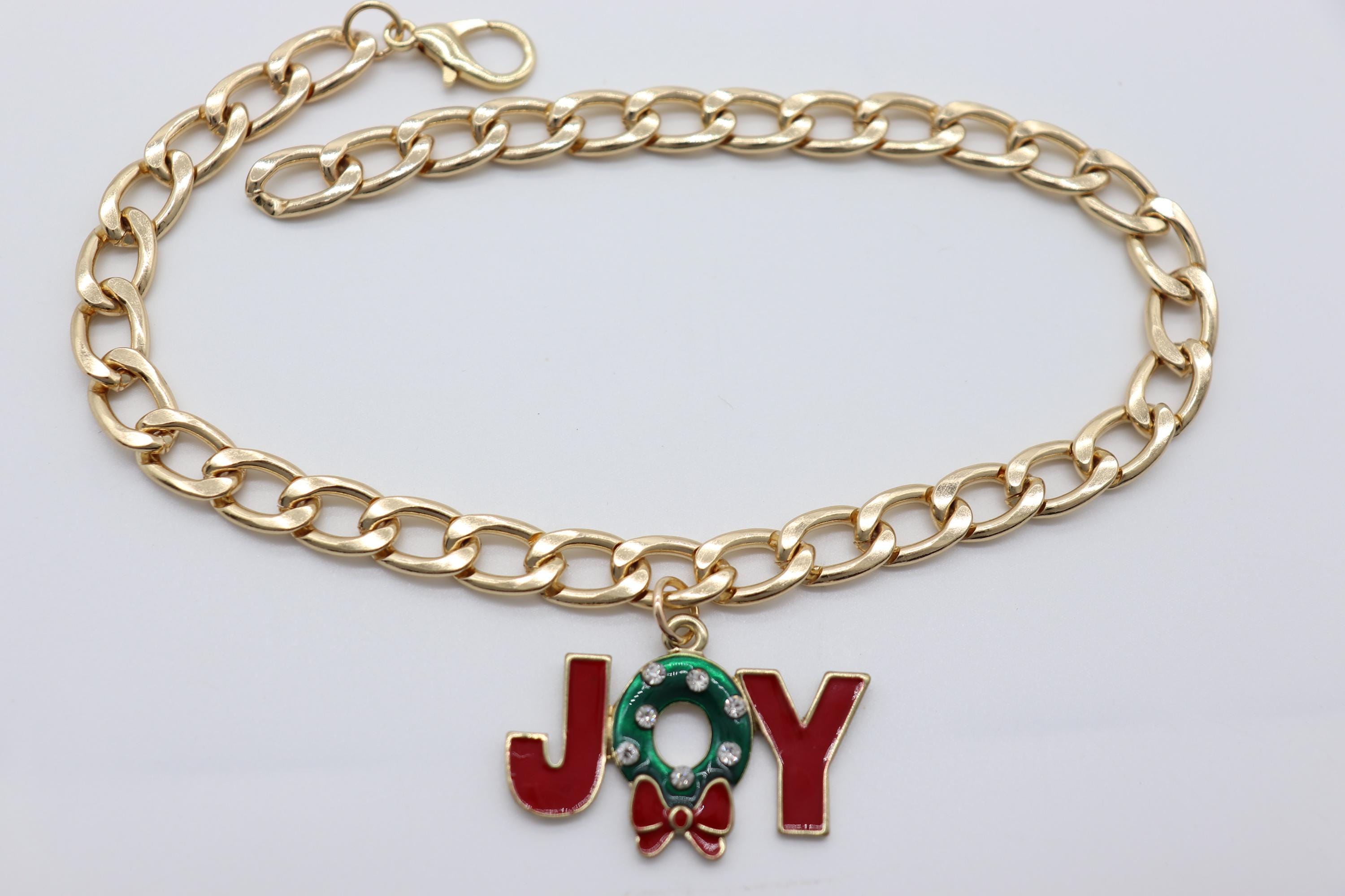 Women’s Boot Chain Anklet – JOY Wreath Charm, Gold-Tone Metal, Holiday Christmas Boot Jewelry, Adjustable 11"–15", Lobster Clasp, Handmade in USA – 2PCS Pair Boot Bracelets (BC53)