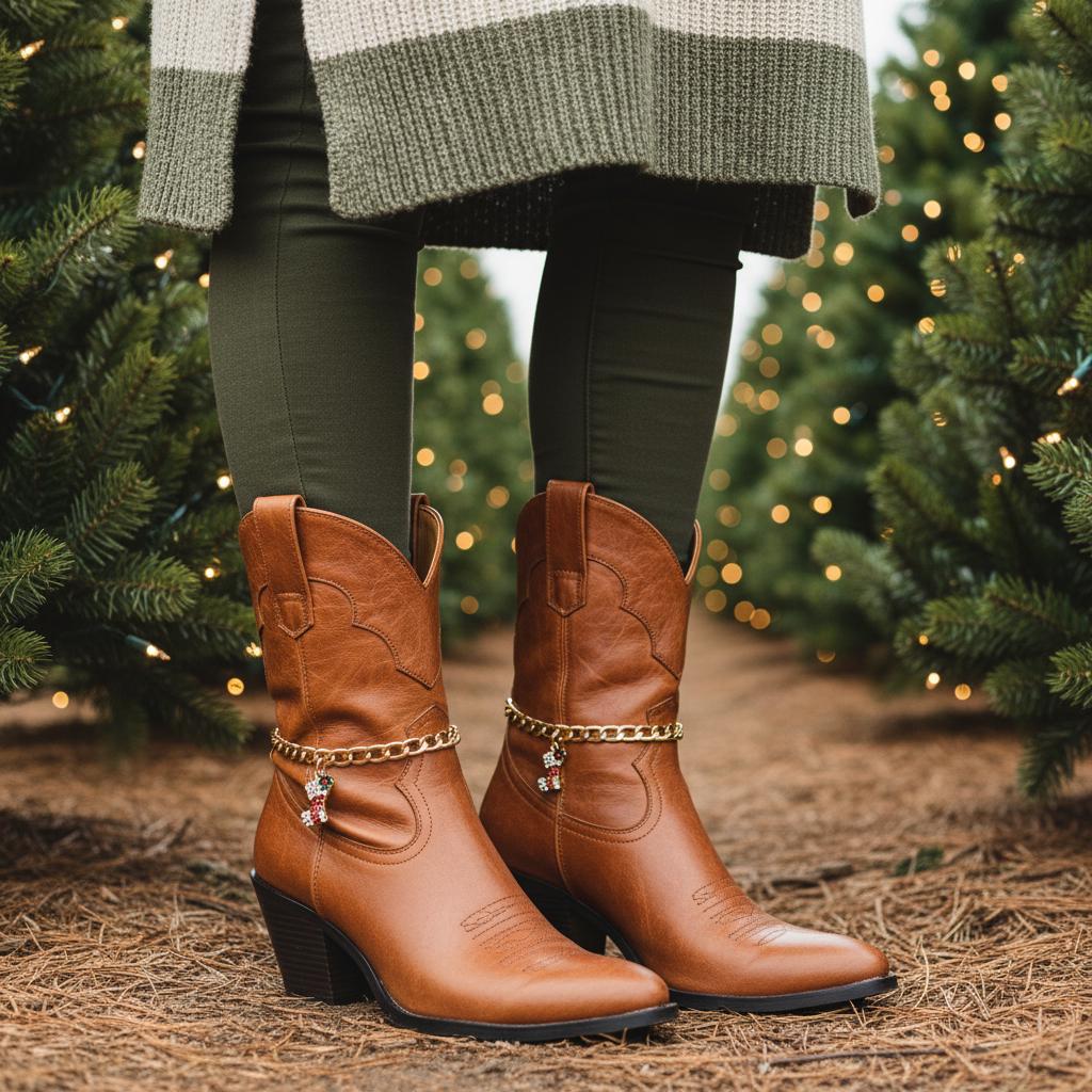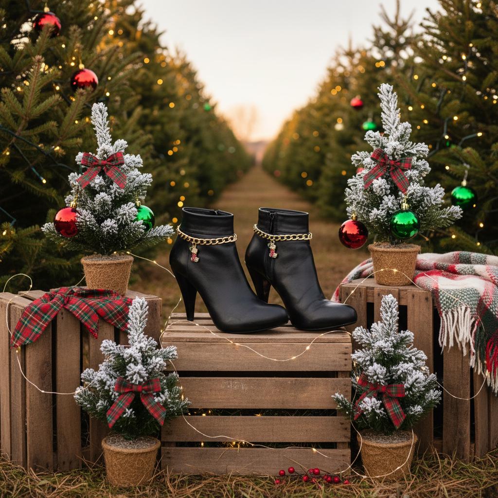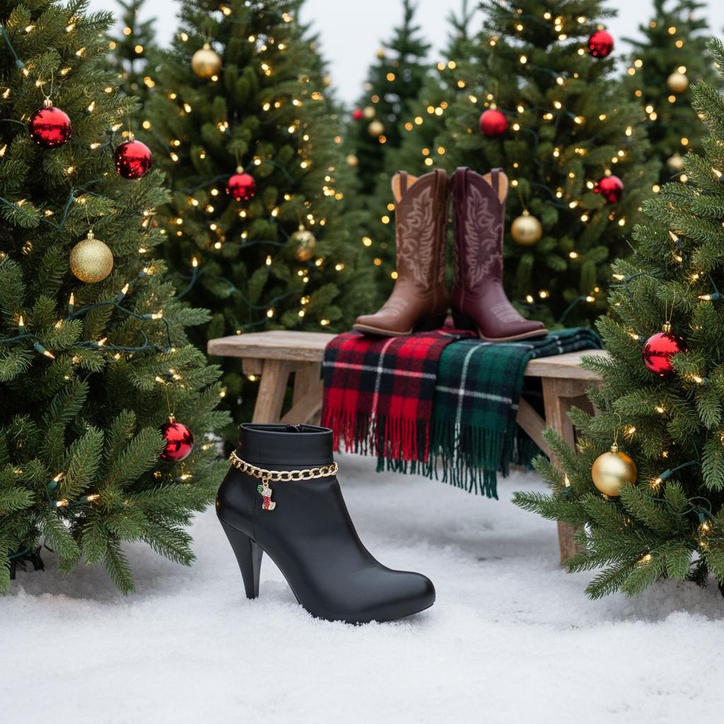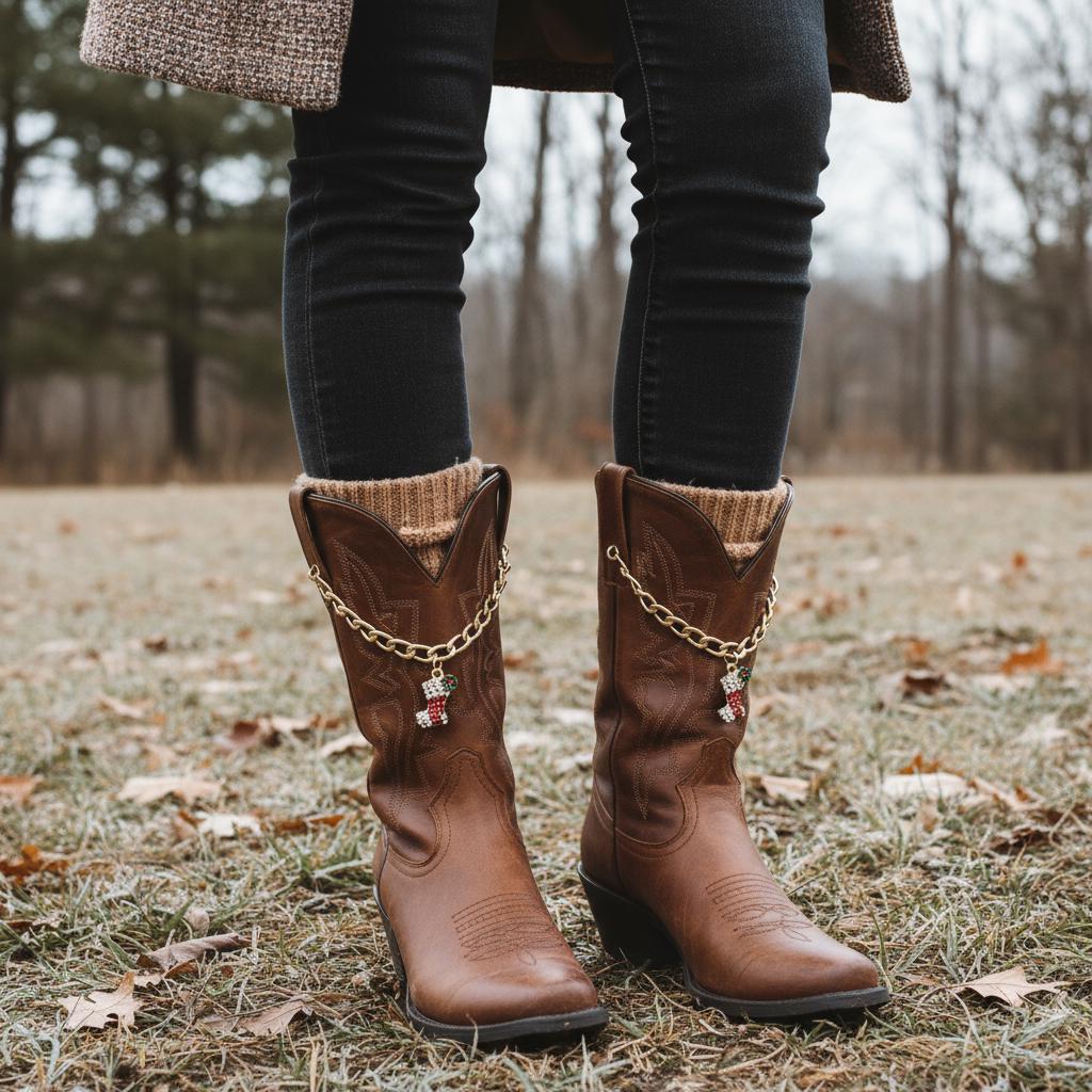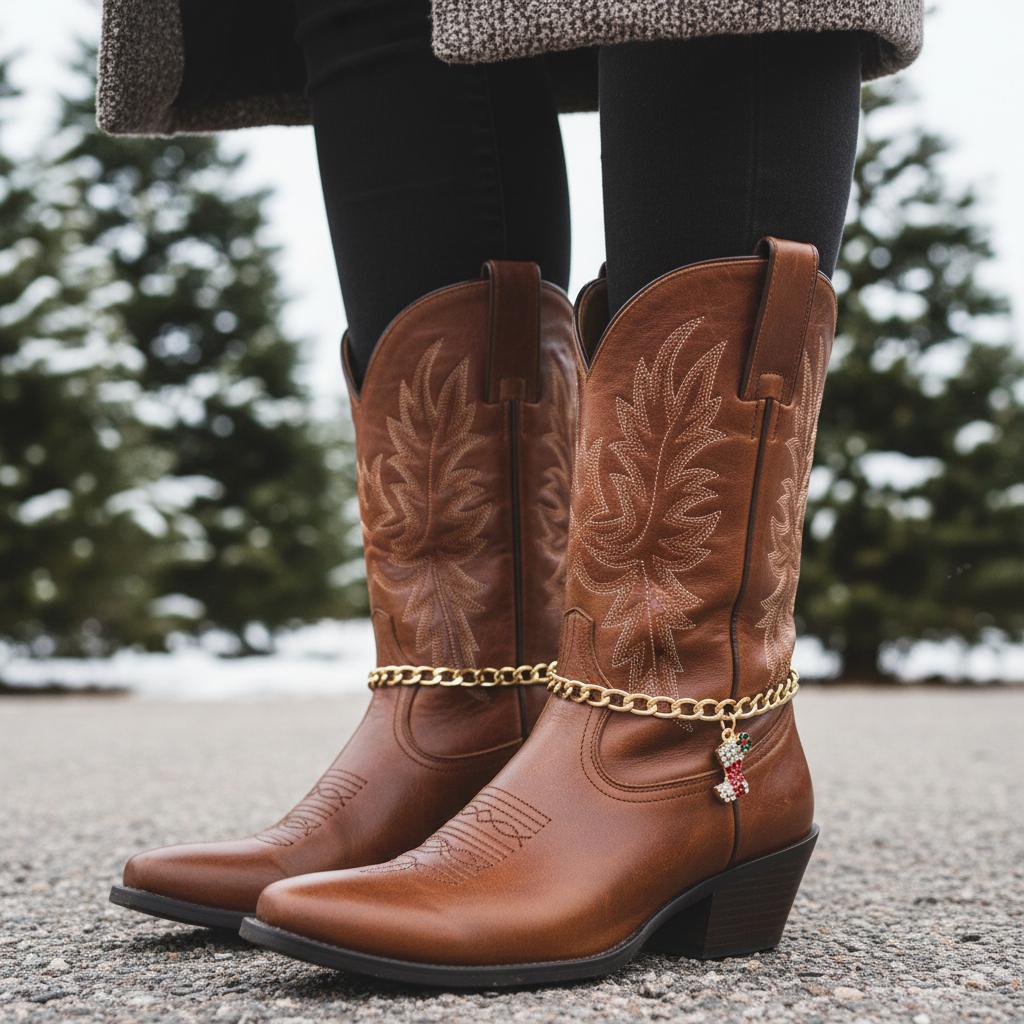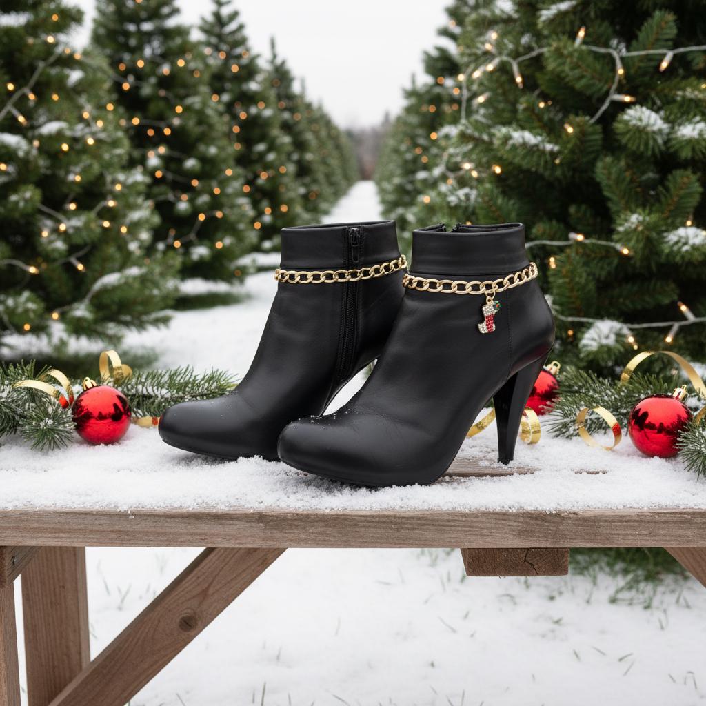 boot chain bracelet pair, christmas boot jewelry, stocking charm boot anklet, holiday boot chains women, gold curb chain ankle boot chain, western boot accessories, rhinestone boot charms, festive shoe jewelry, adjustable boot chain