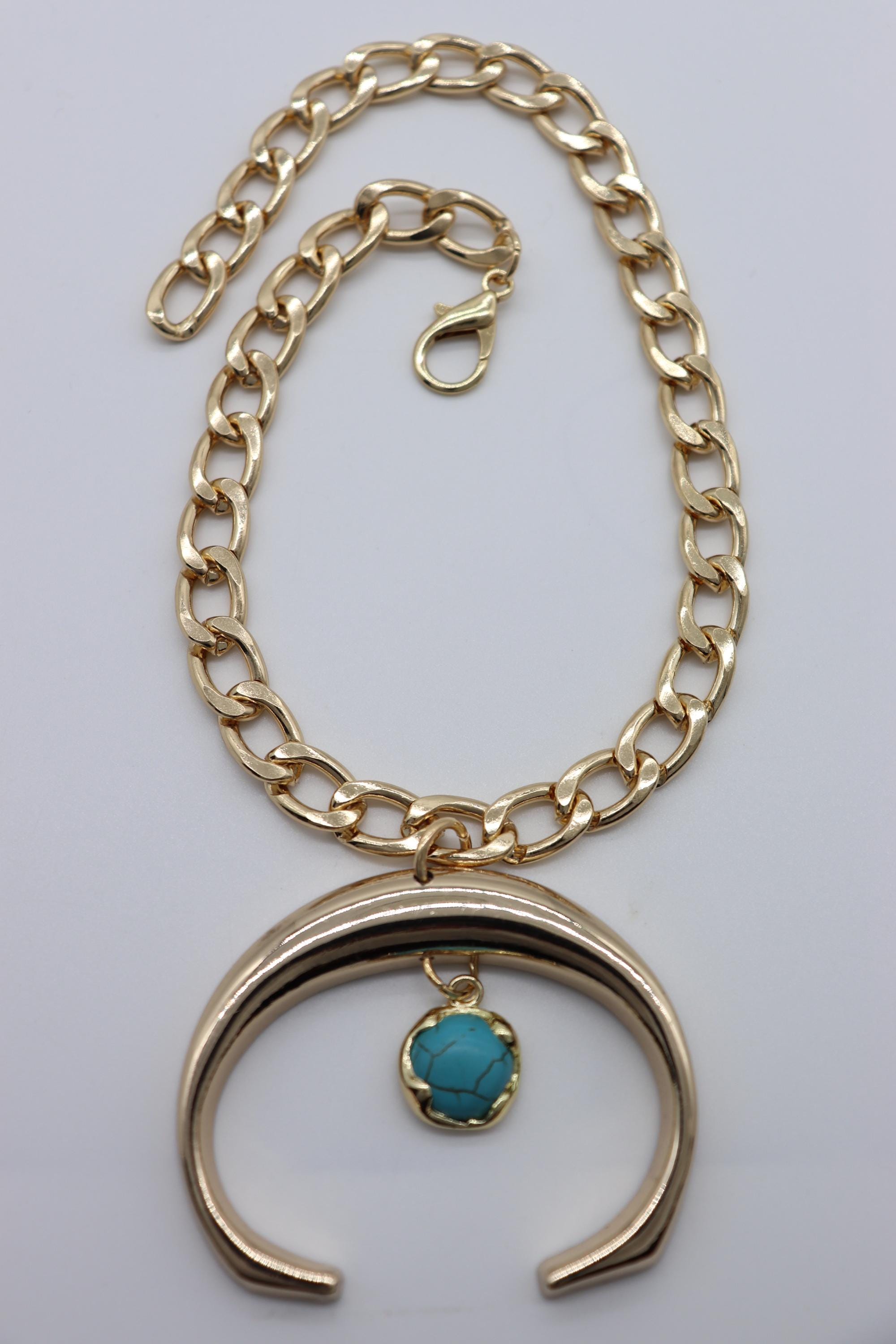 Color: Gold metal chain links and hardware charm + turquoise blue color bead (C Turquoise)