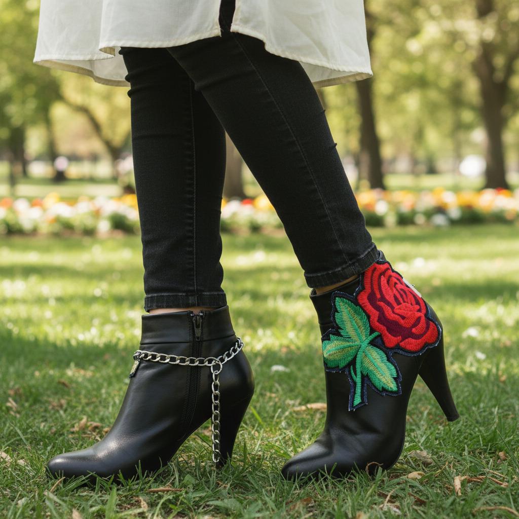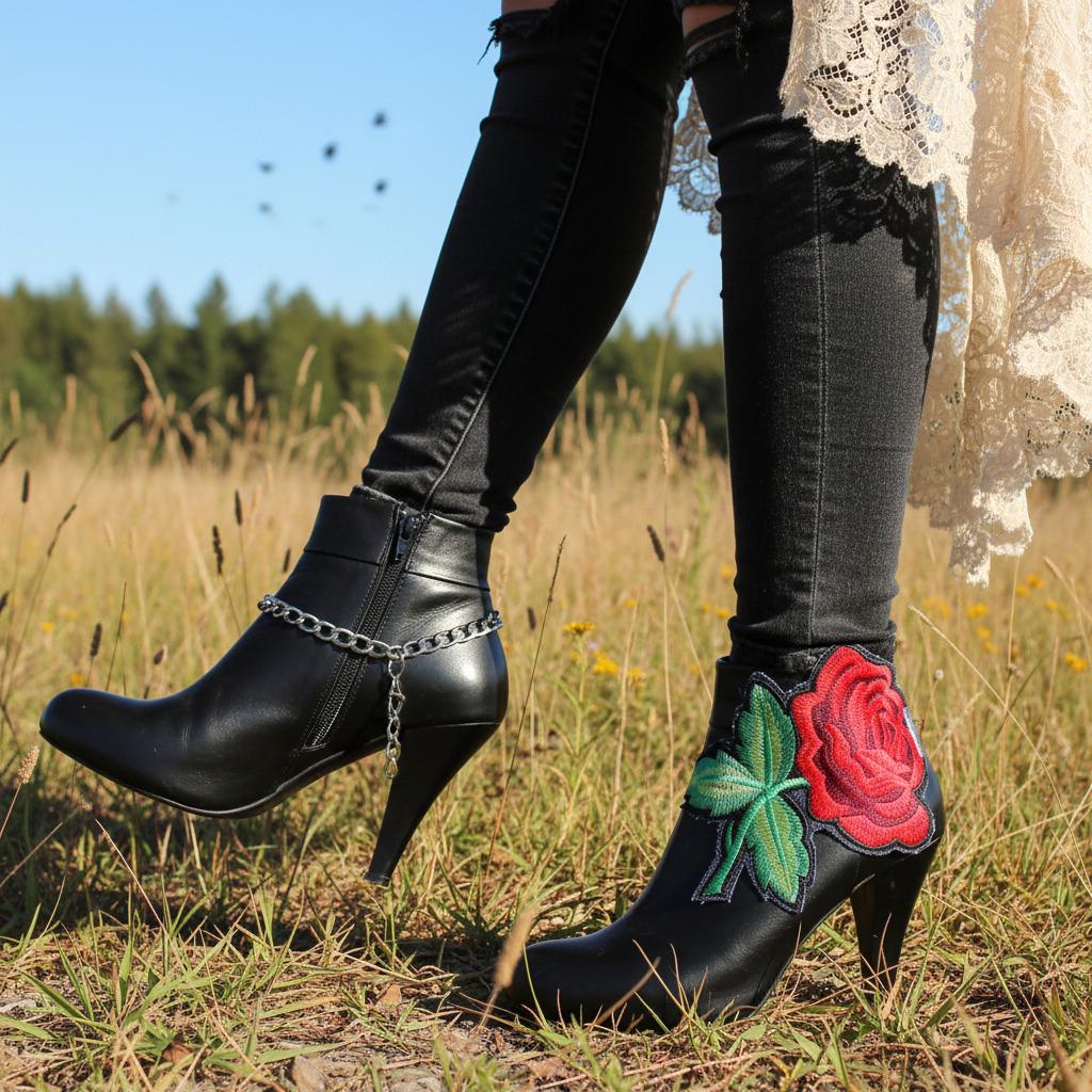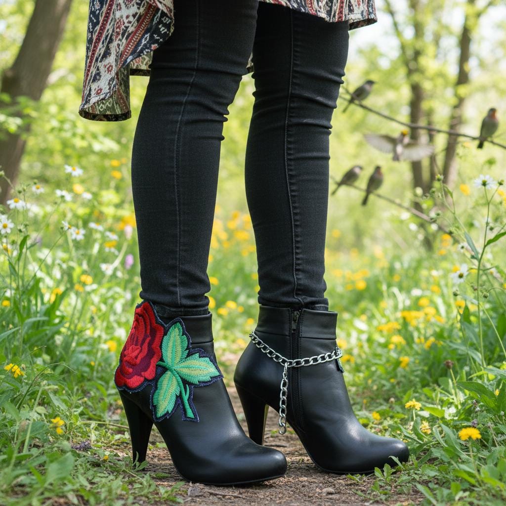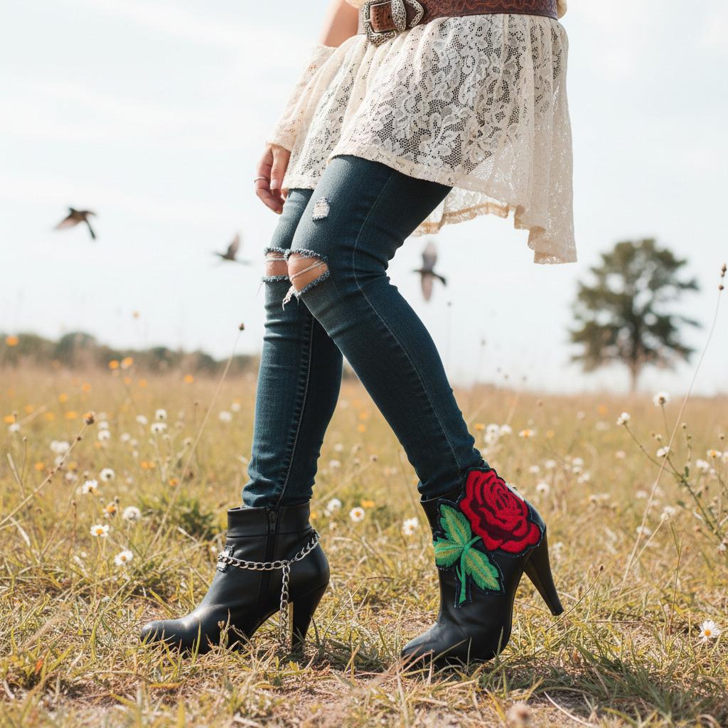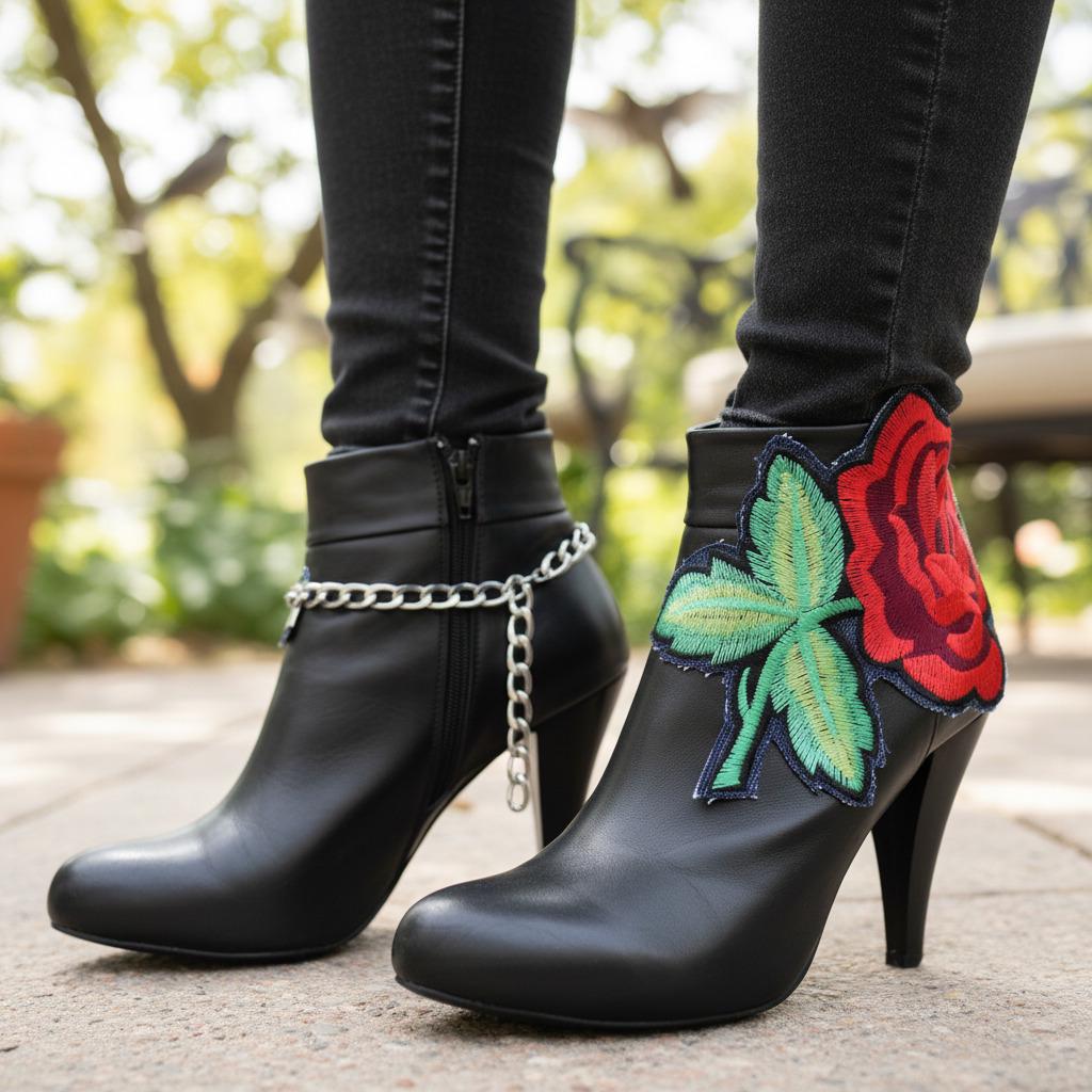Give your boots a bouquet. This two-piece rose boot chain set wraps ankle or western boots in a bold embroidered rose and a gleaming silver chain. We hand-assemble each anklet in small batches in the USA so the patch lays smooth, the chain drapes with movement, and the clasp feels secure whether you’re line dancing, brunching, or taking festival photos.