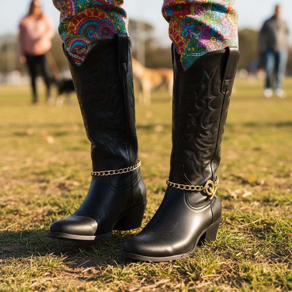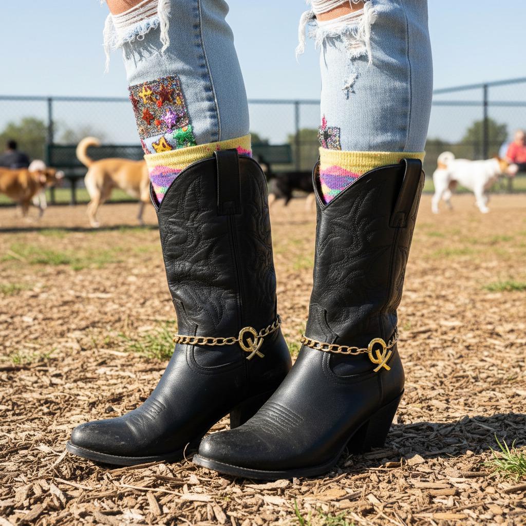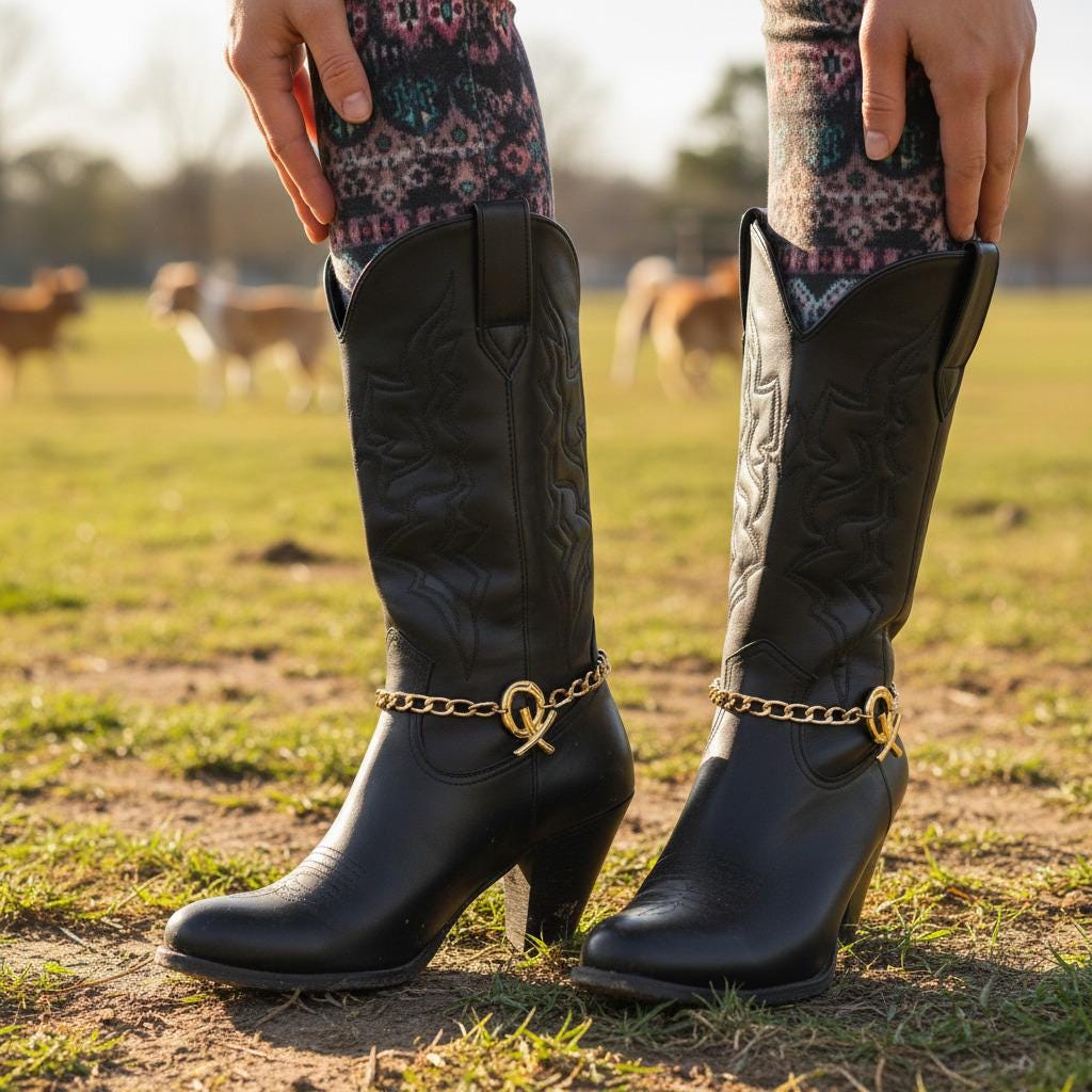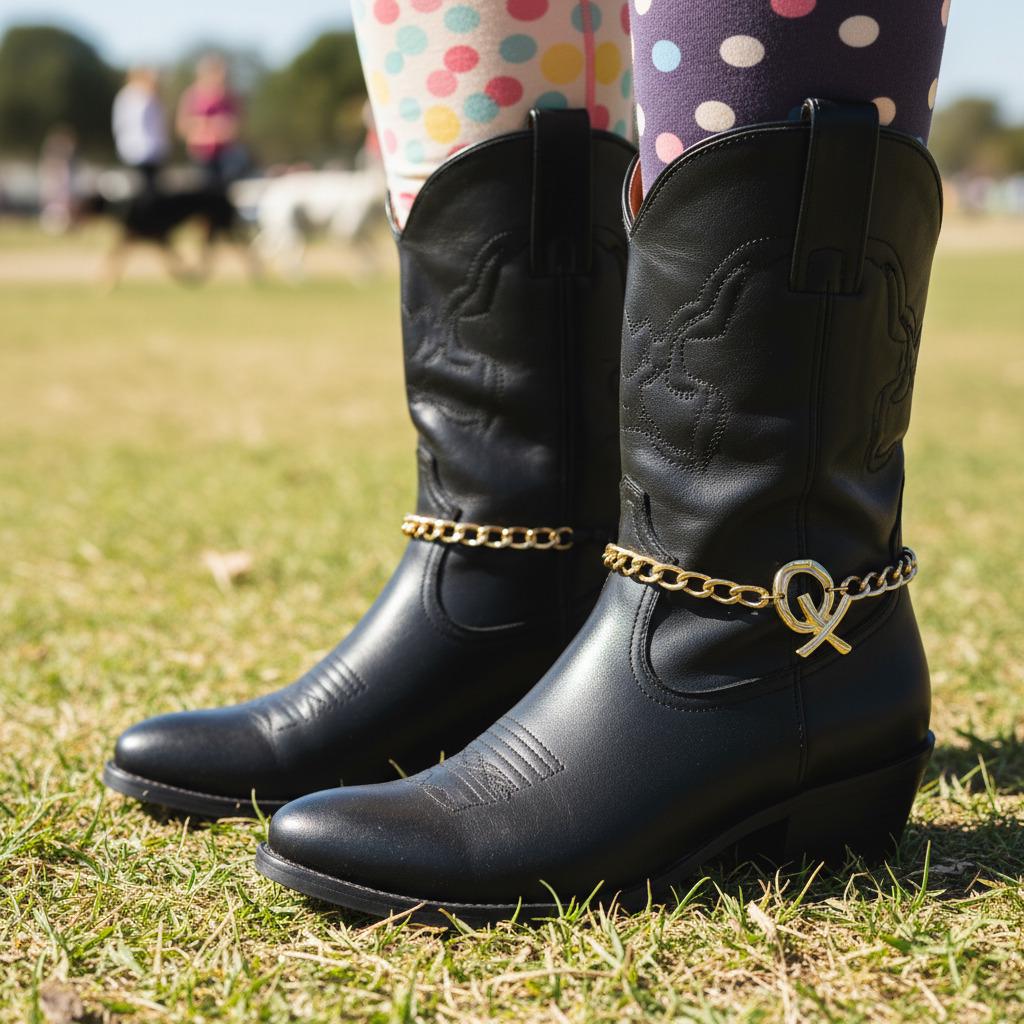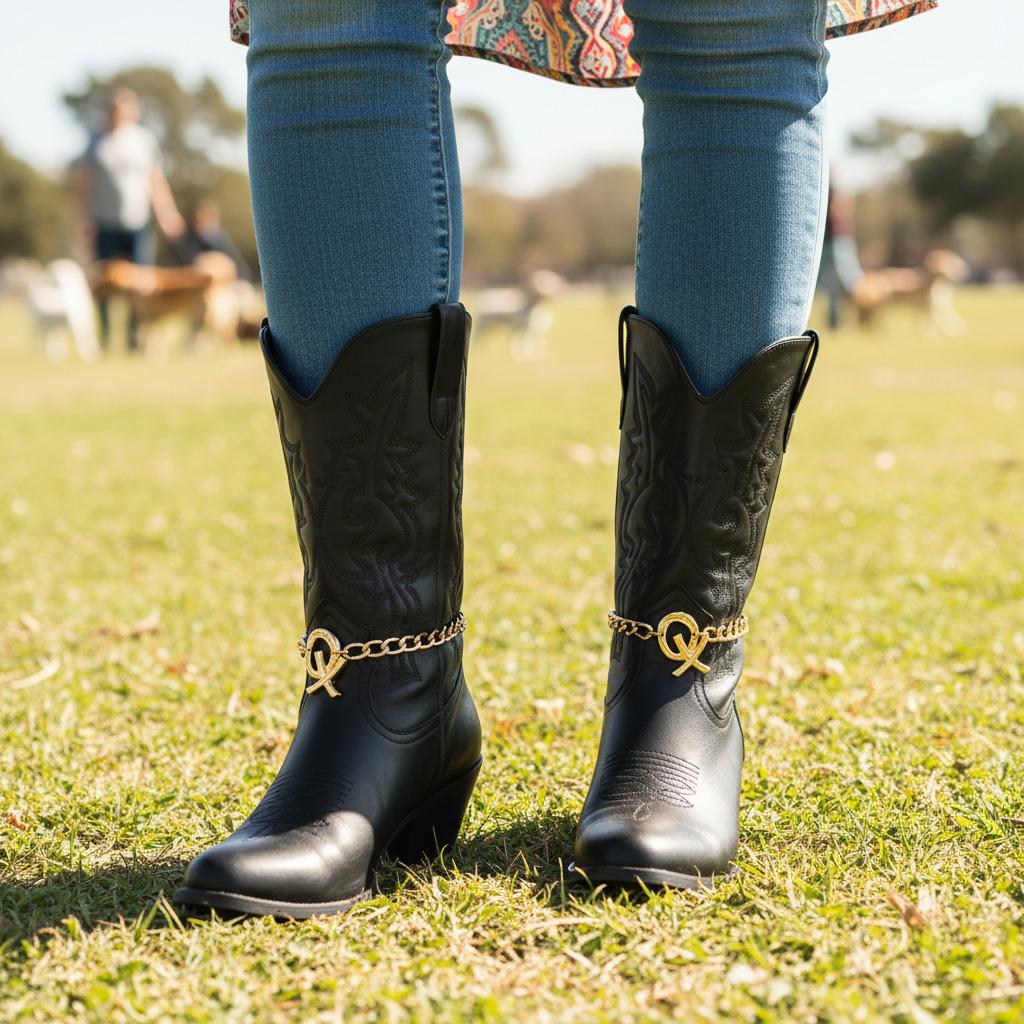 Give your boots a glow-up. This Gold XO Boot Chain Bracelet Pair slips around ankle boots or cowboy boots and instantly reads polished and playful. Each anklet is hand-assembled in the USA from gold-tone metal with a secure lobster clasp and an adjustable 11"–15" fit. The sculptural XO charm (about 1.5" x 1") adds just the right pop for concerts, festivals, bachelorettes, Nashville weekends, or everyday outfits.