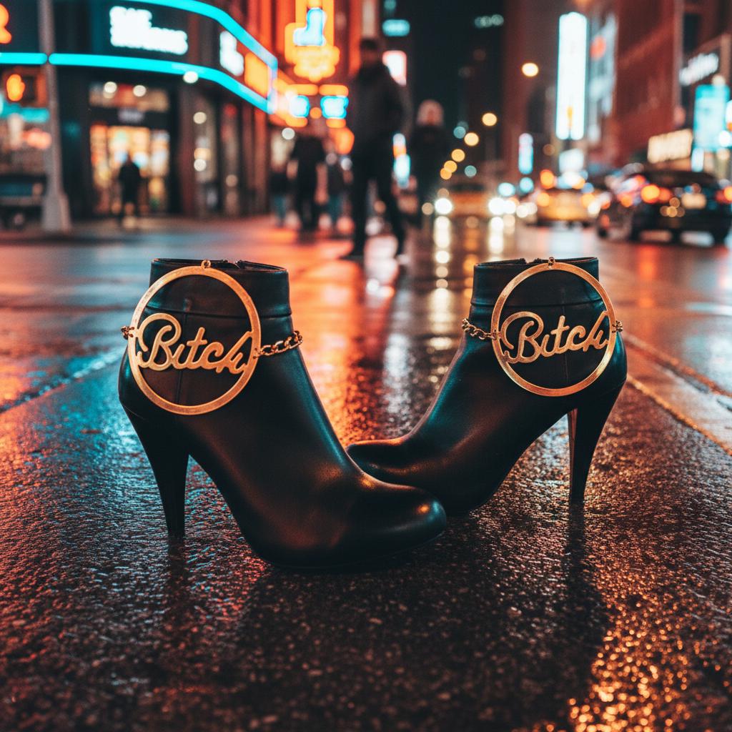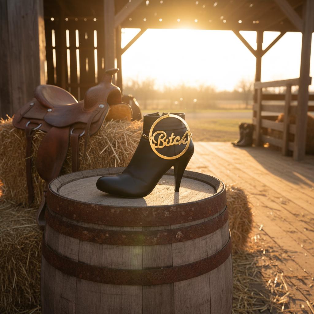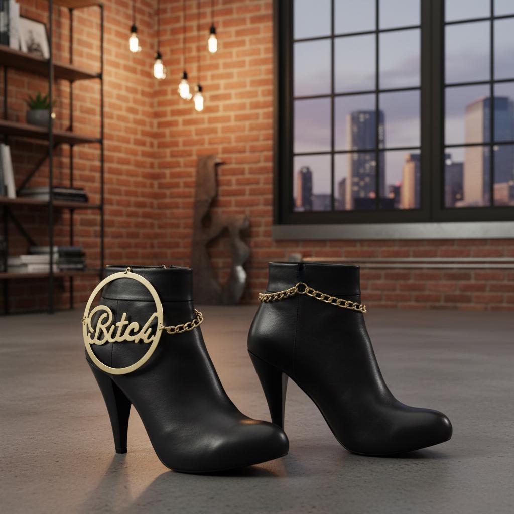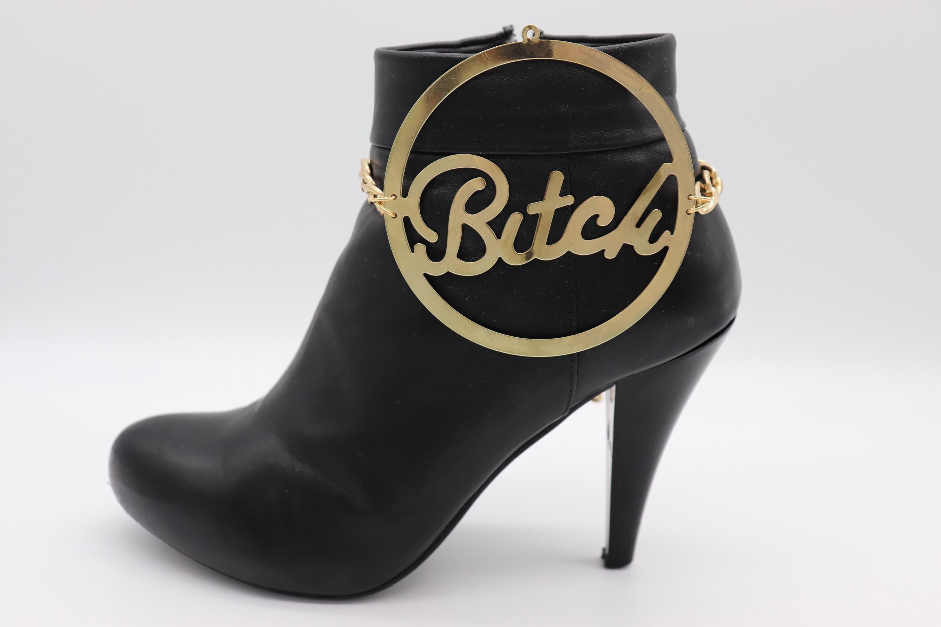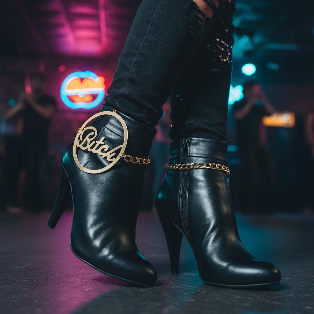 Gold Boot Chains with “B!tch” Charm – Western Shoe Jewelry, Handmade