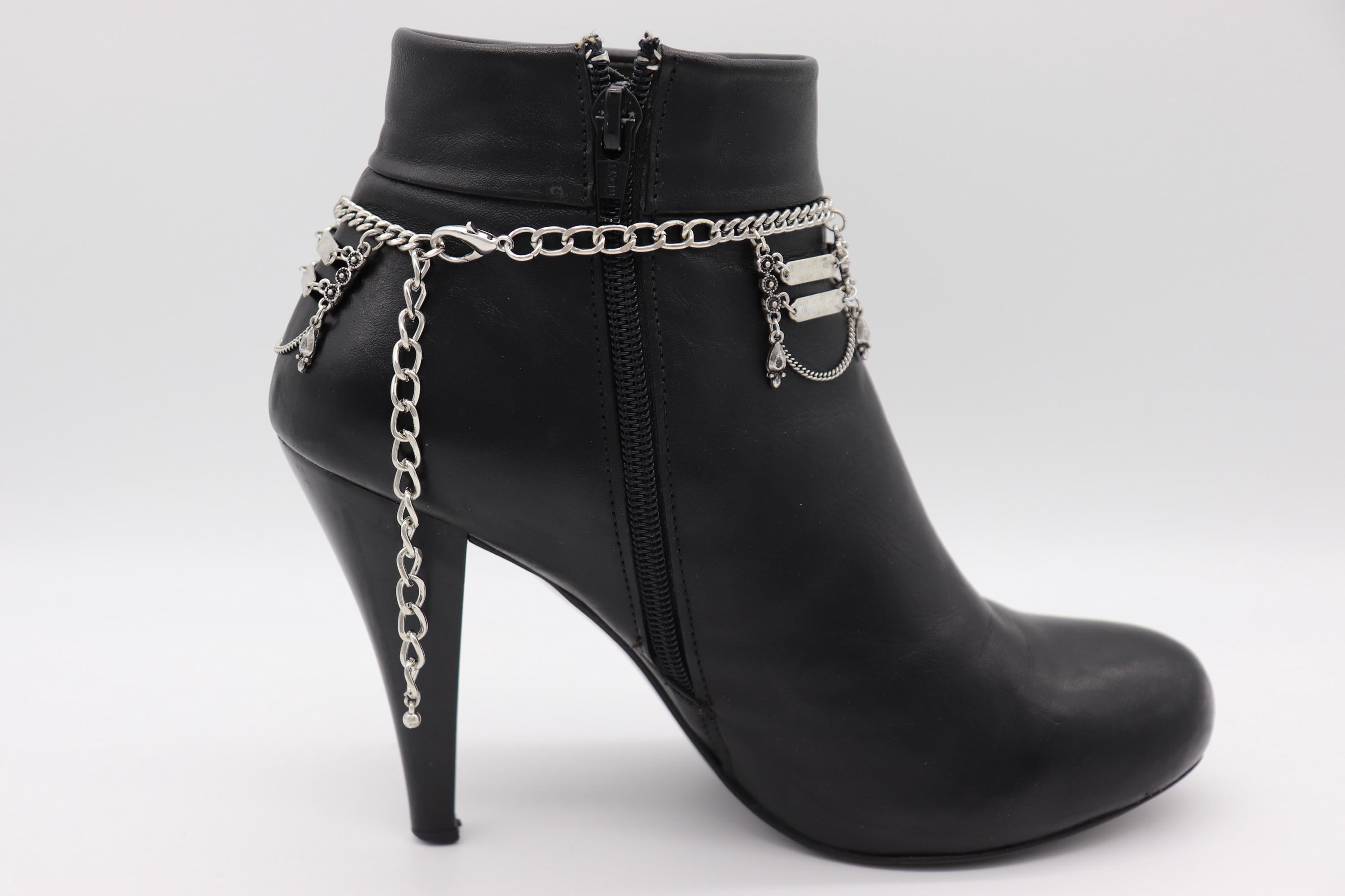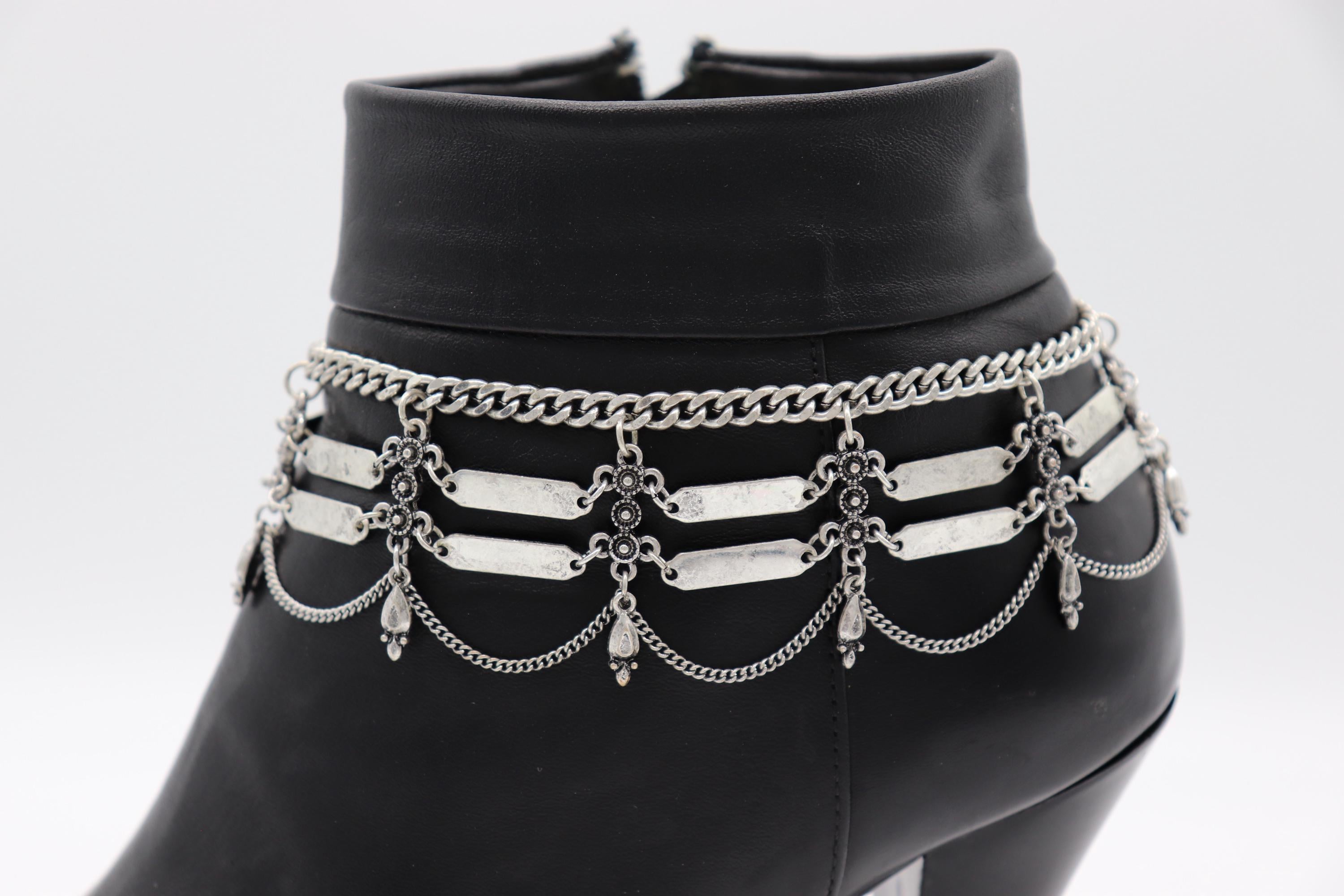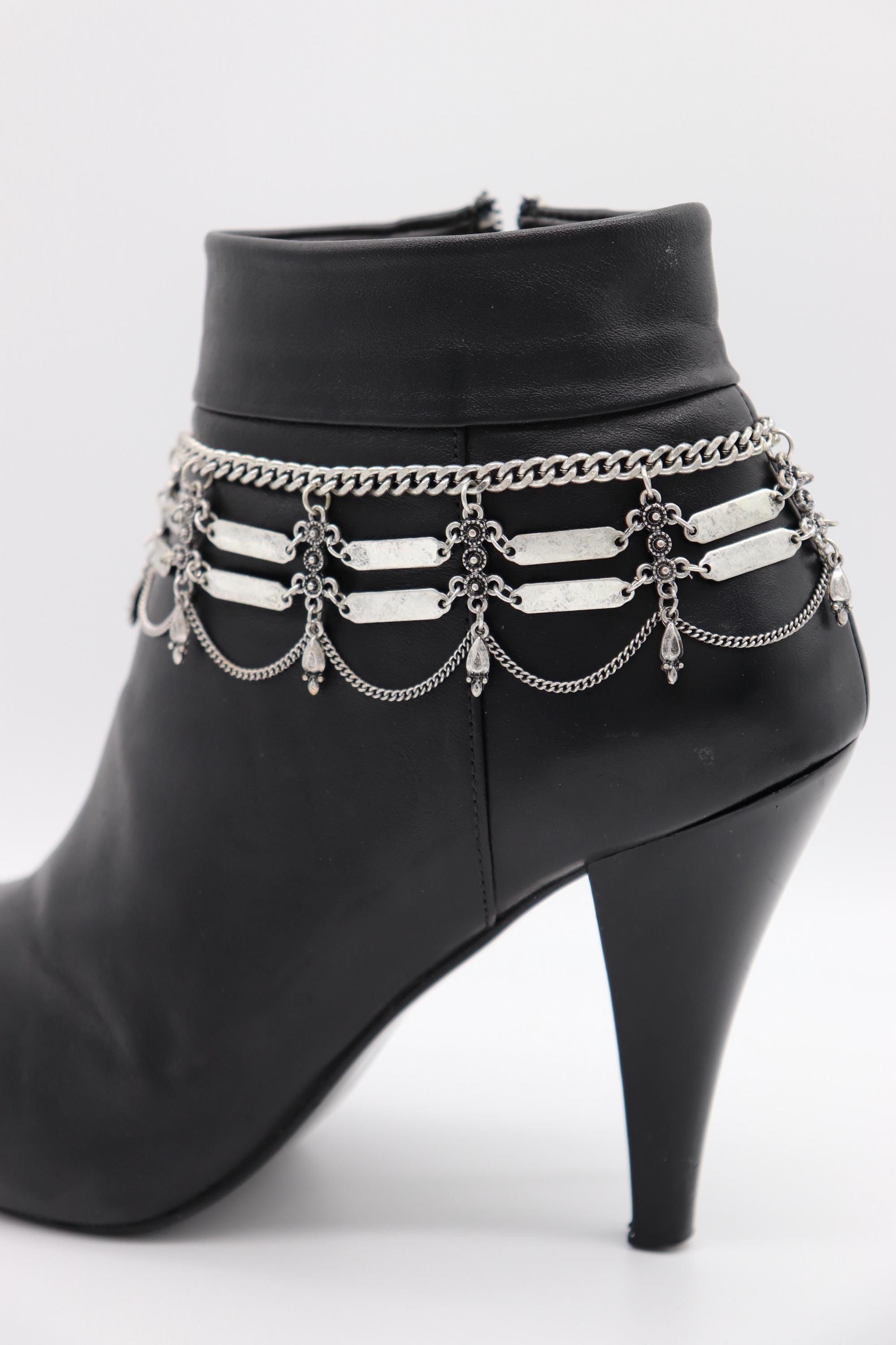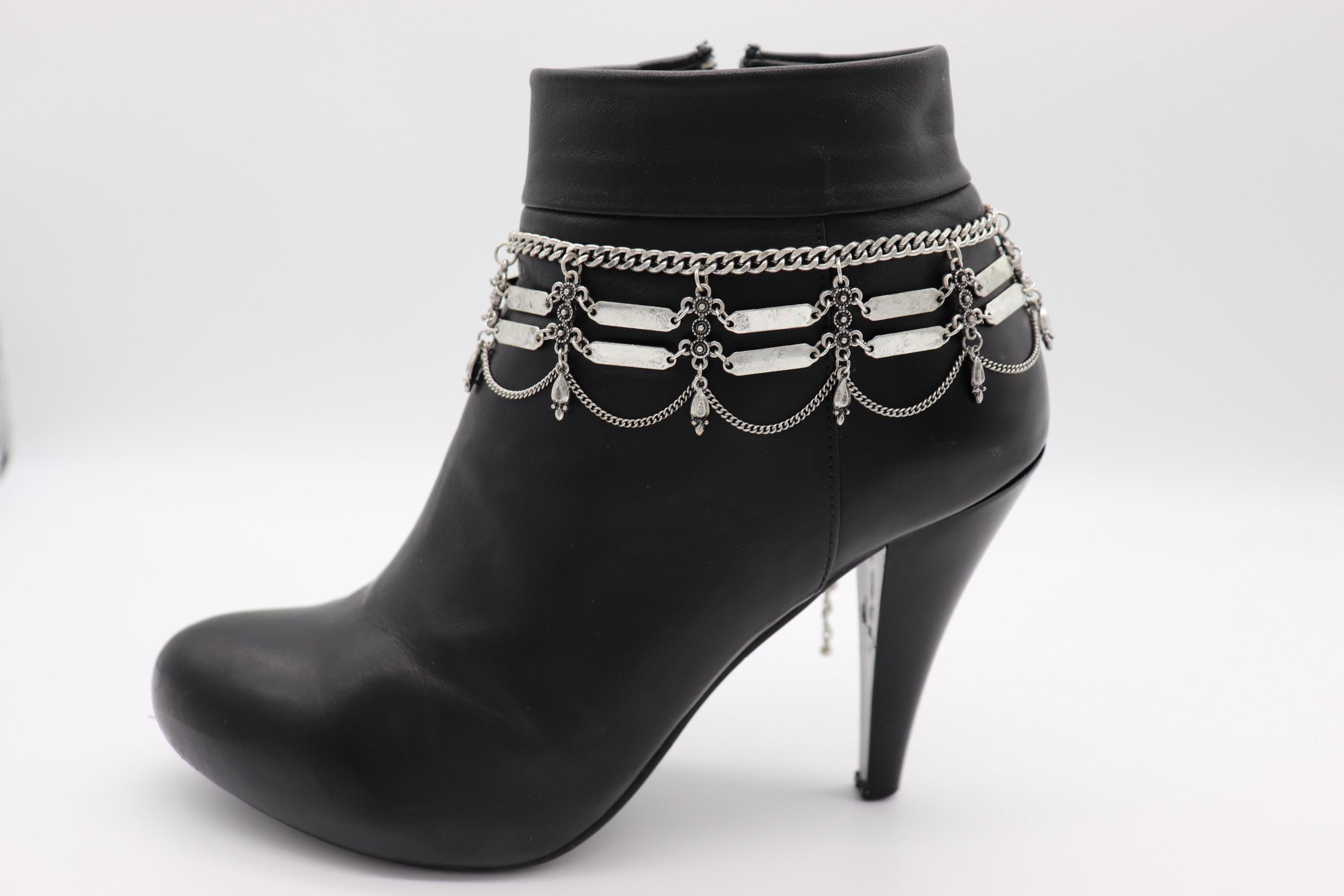 Antique Silver Boot Chains – Draped Flower Western Cowgirl Ankle Jewelry