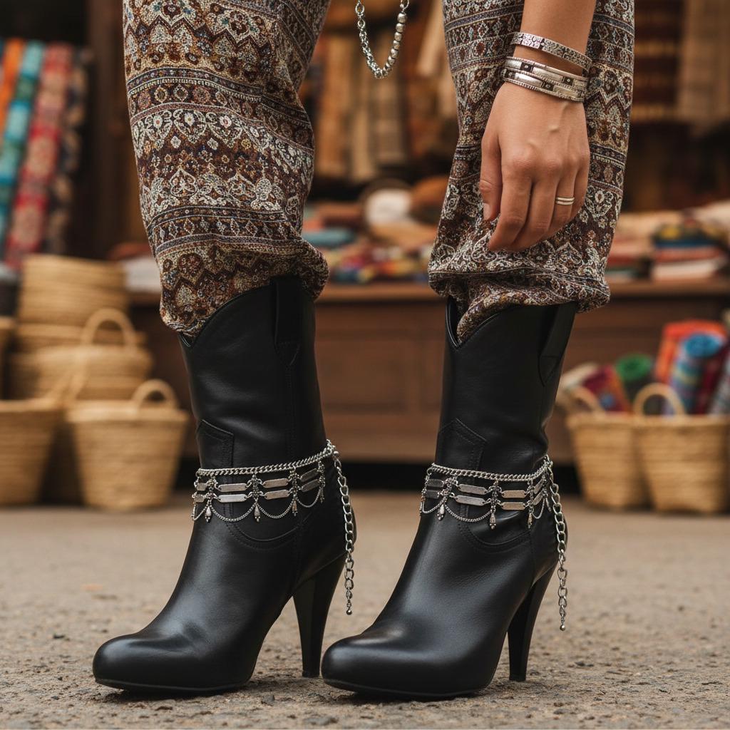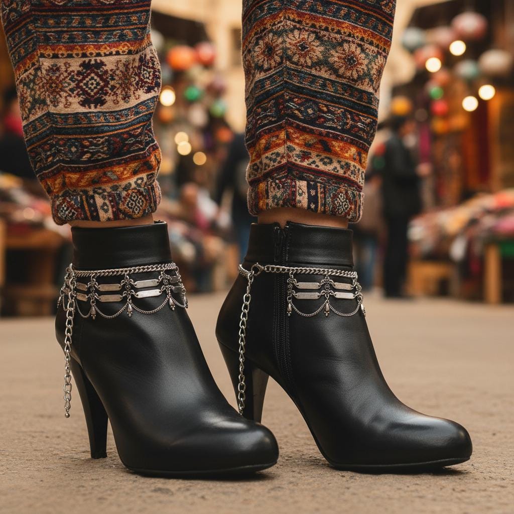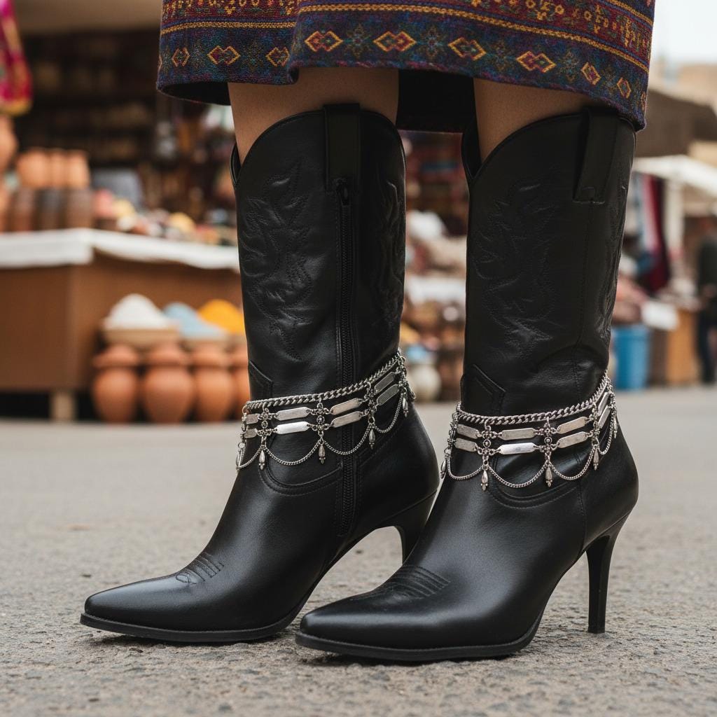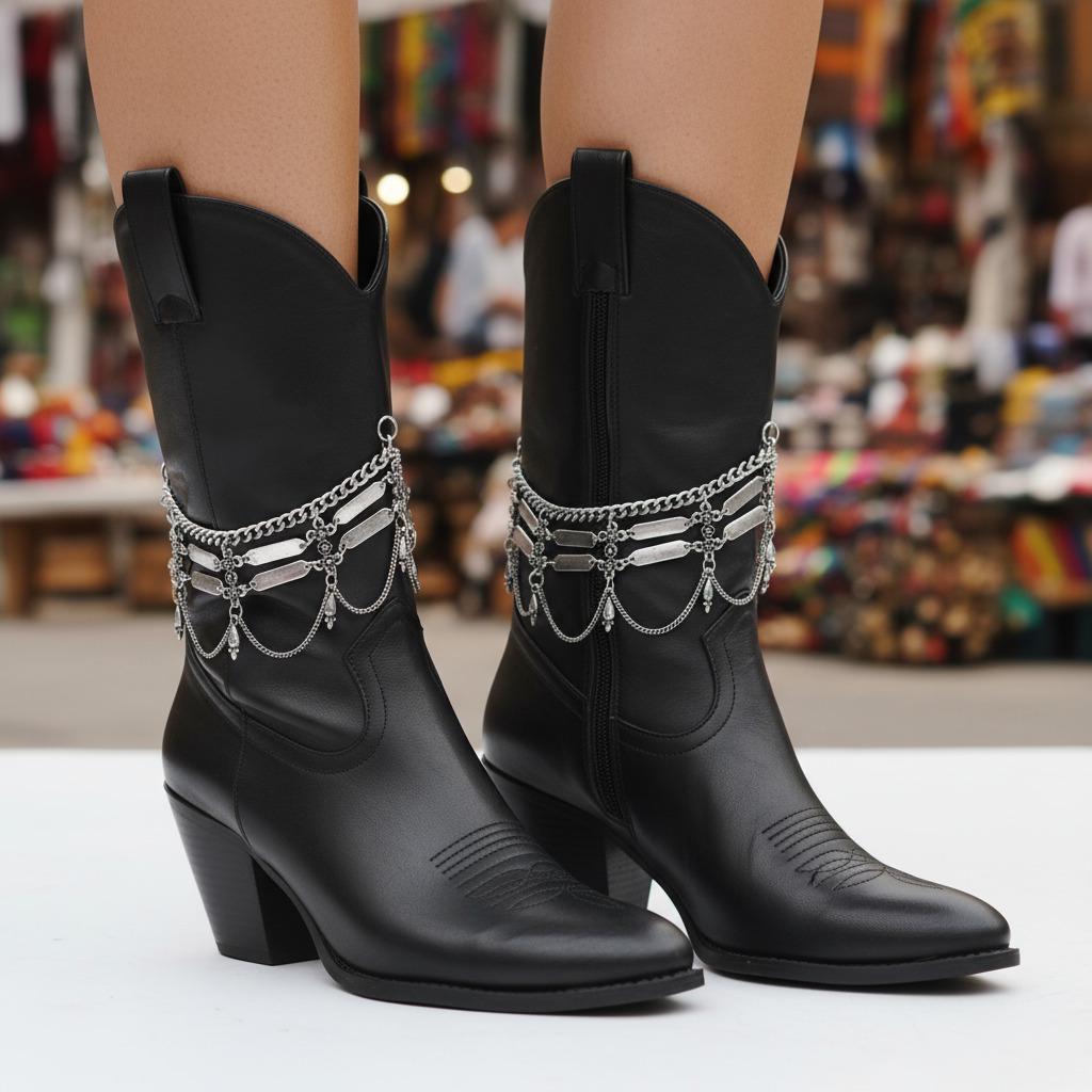 Antique Silver Boot Chains – Draped Flower Western Cowgirl Ankle Jewelry