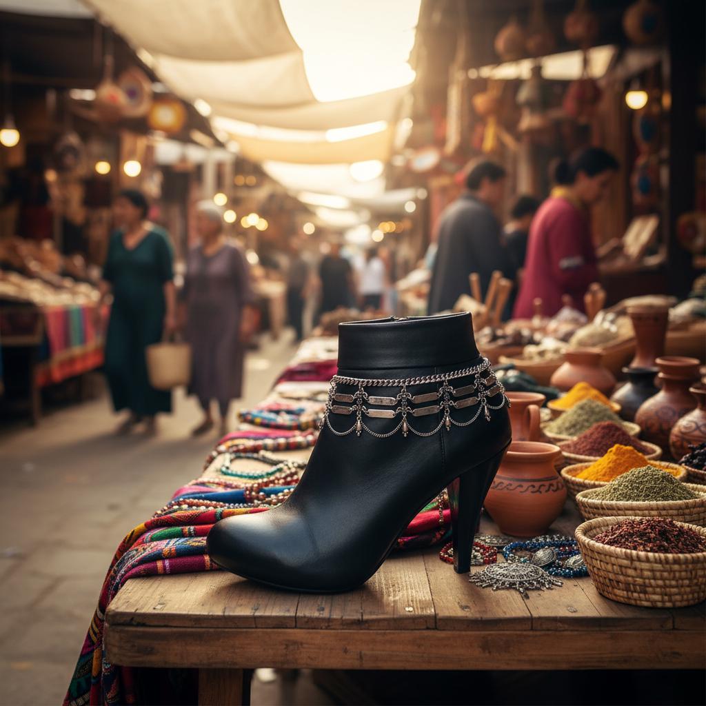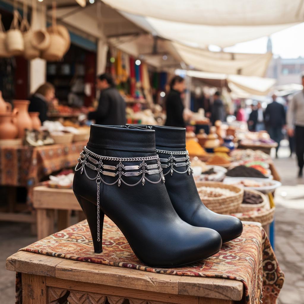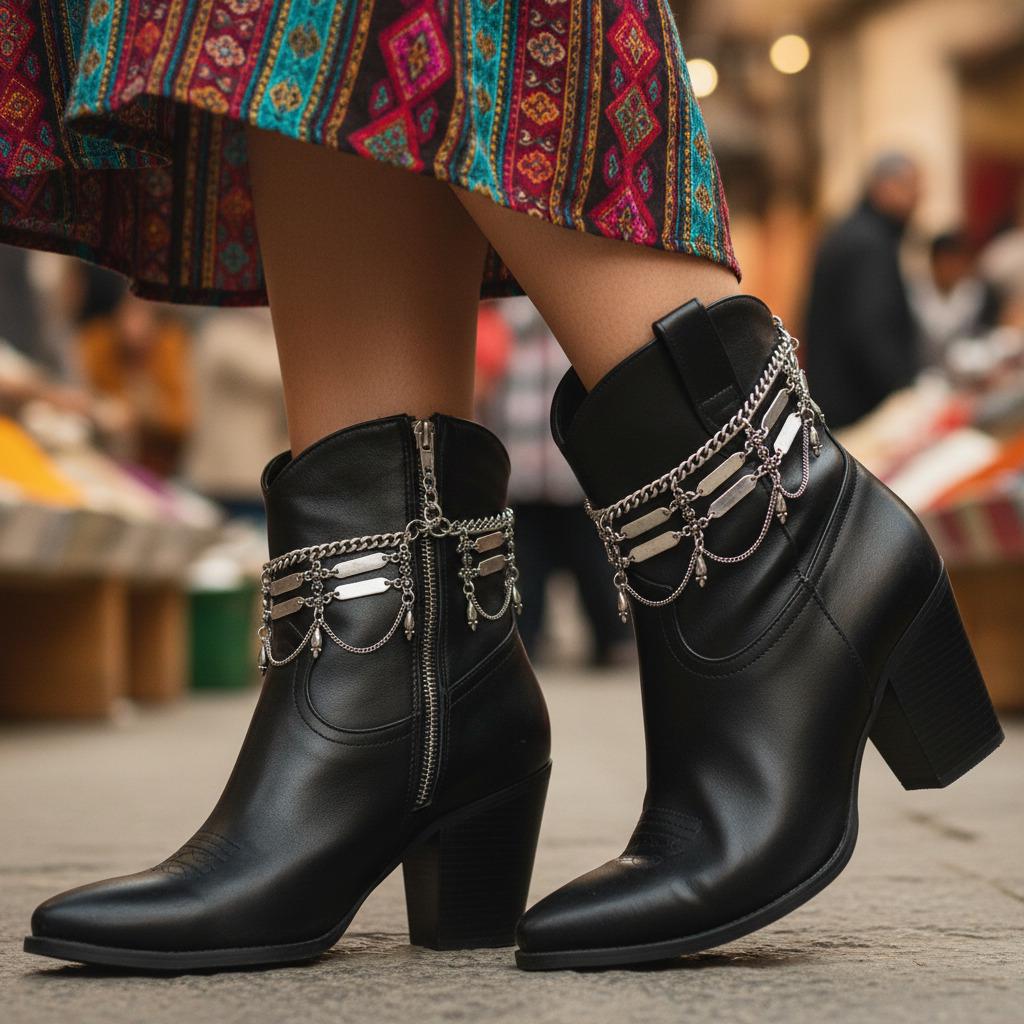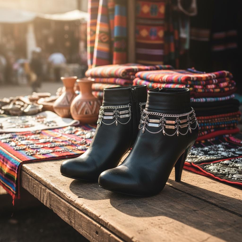 Antique Silver Boot Chains – Draped Flower Western Cowgirl Ankle Jewelry