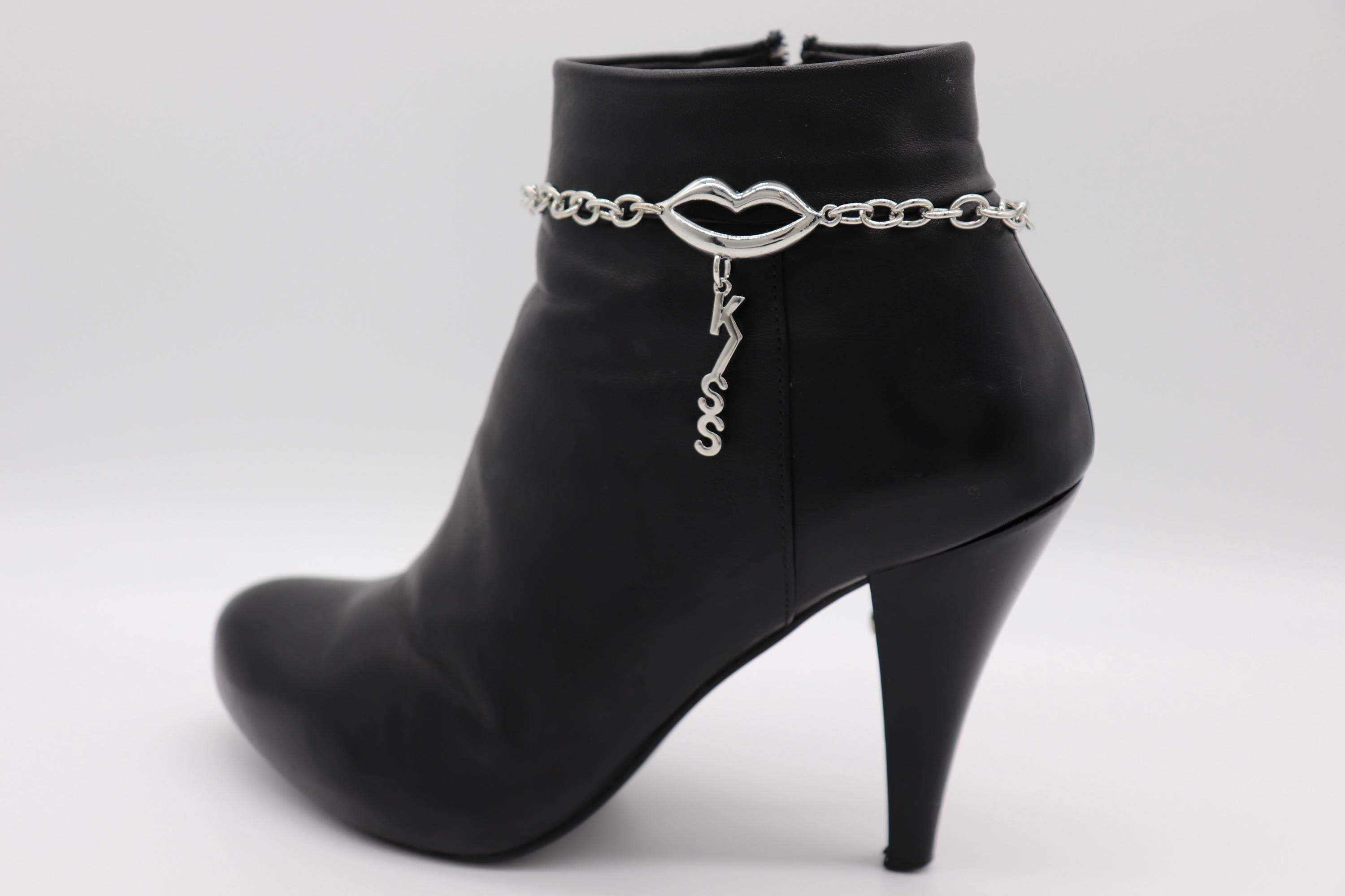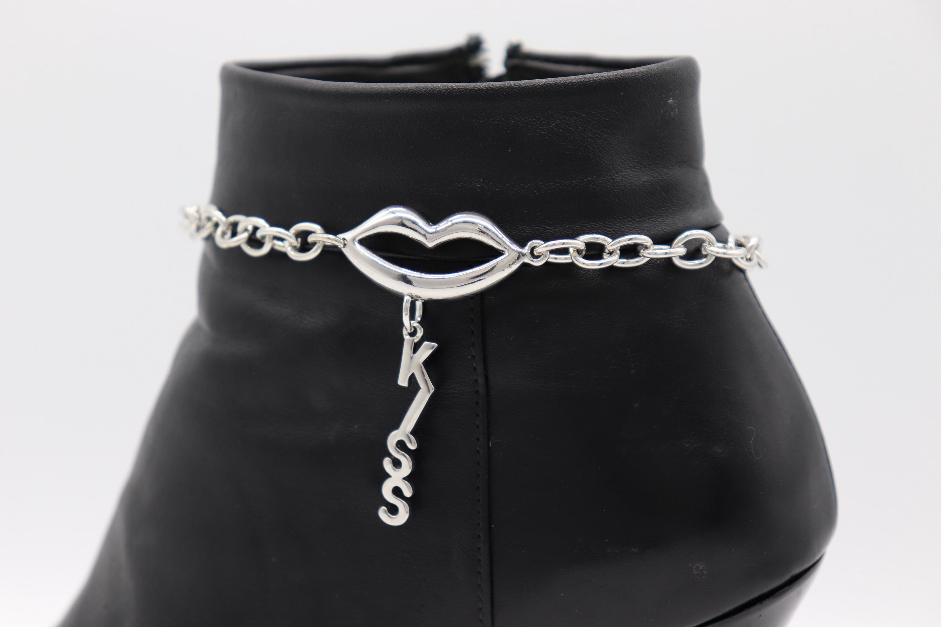 women boot chain, western boot anklet, cowgirl boot jewelry, silver lips charm, kiss boot bracelet, festival boot accessories, adjustable boot anklet