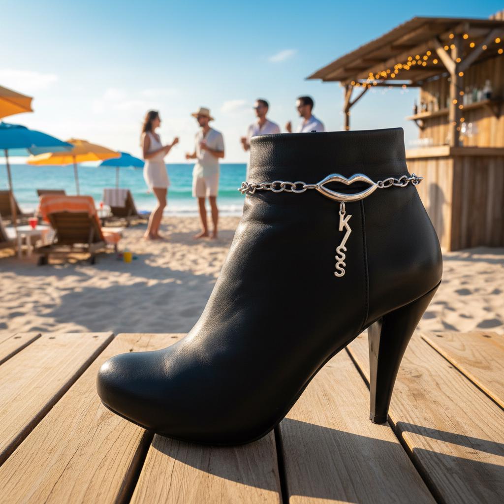 Meet the boot glow-up you’ll actually wear. Our Silver “Kiss Lips” Boot Chain Anklet Pair clips on in seconds and turns everyday ankle or cowgirl boots into a playful, flirty statement. Each set includes two matching chains (one for each boot) with a polished lips charm that spells KISS—a wink of sparkle that goes from farmers’ market to festival to date night without missing a beat.