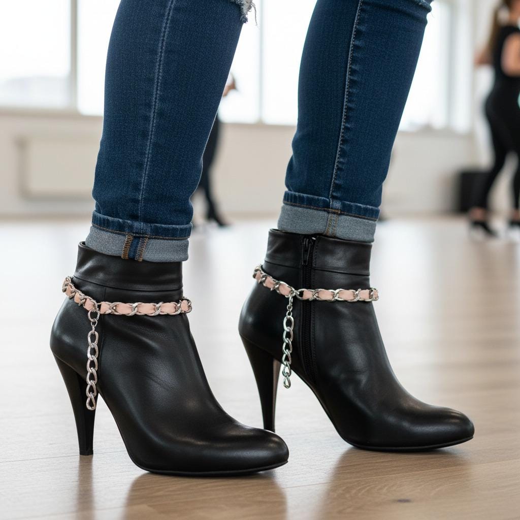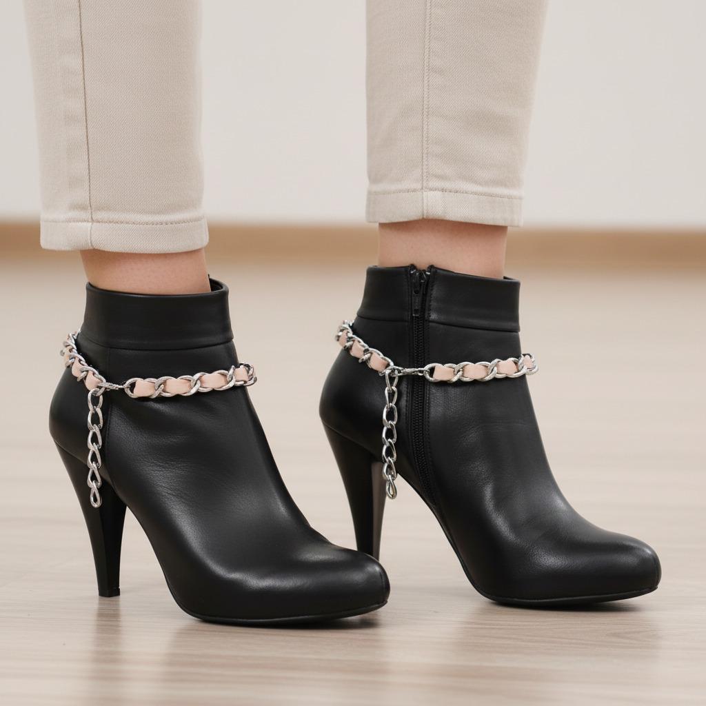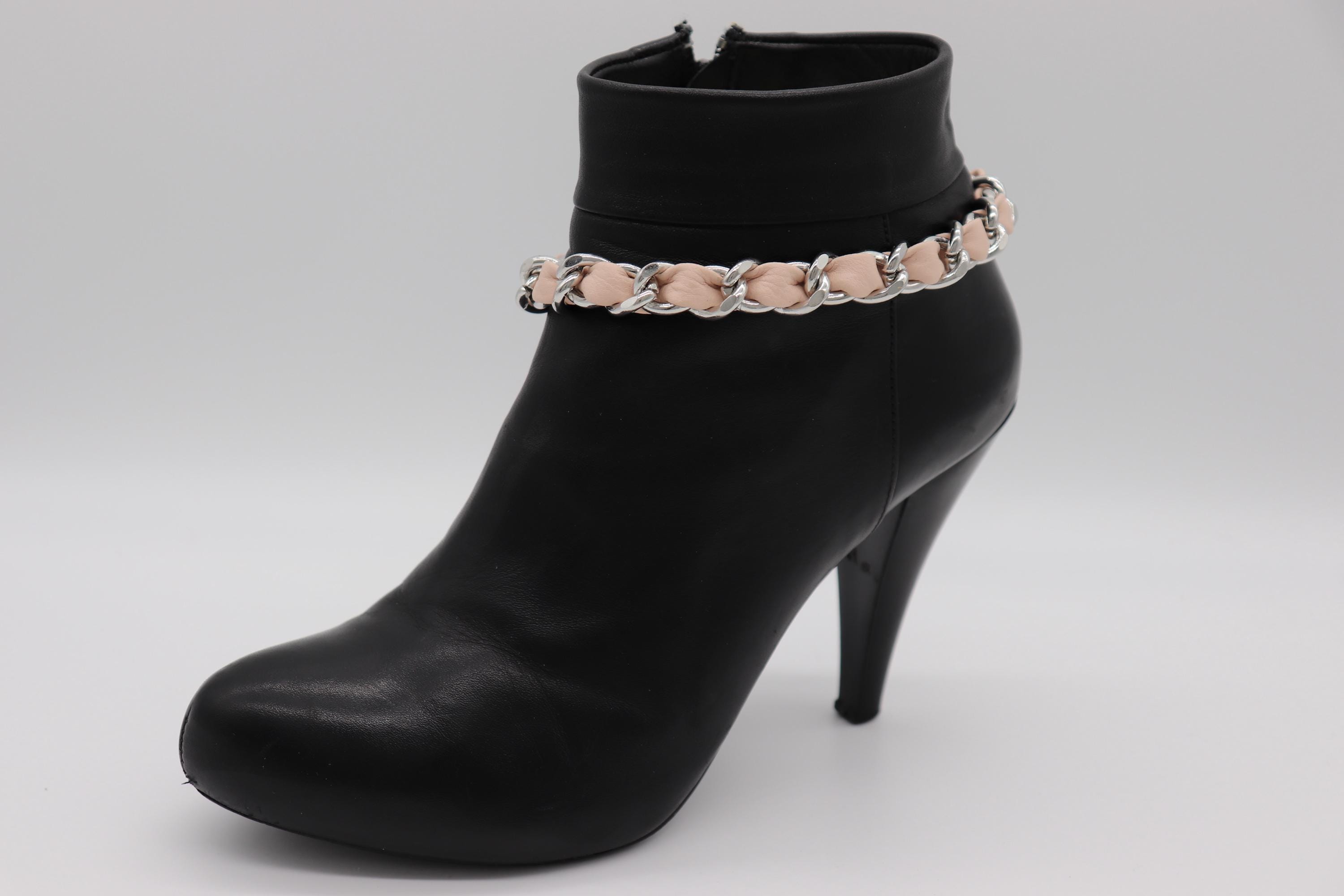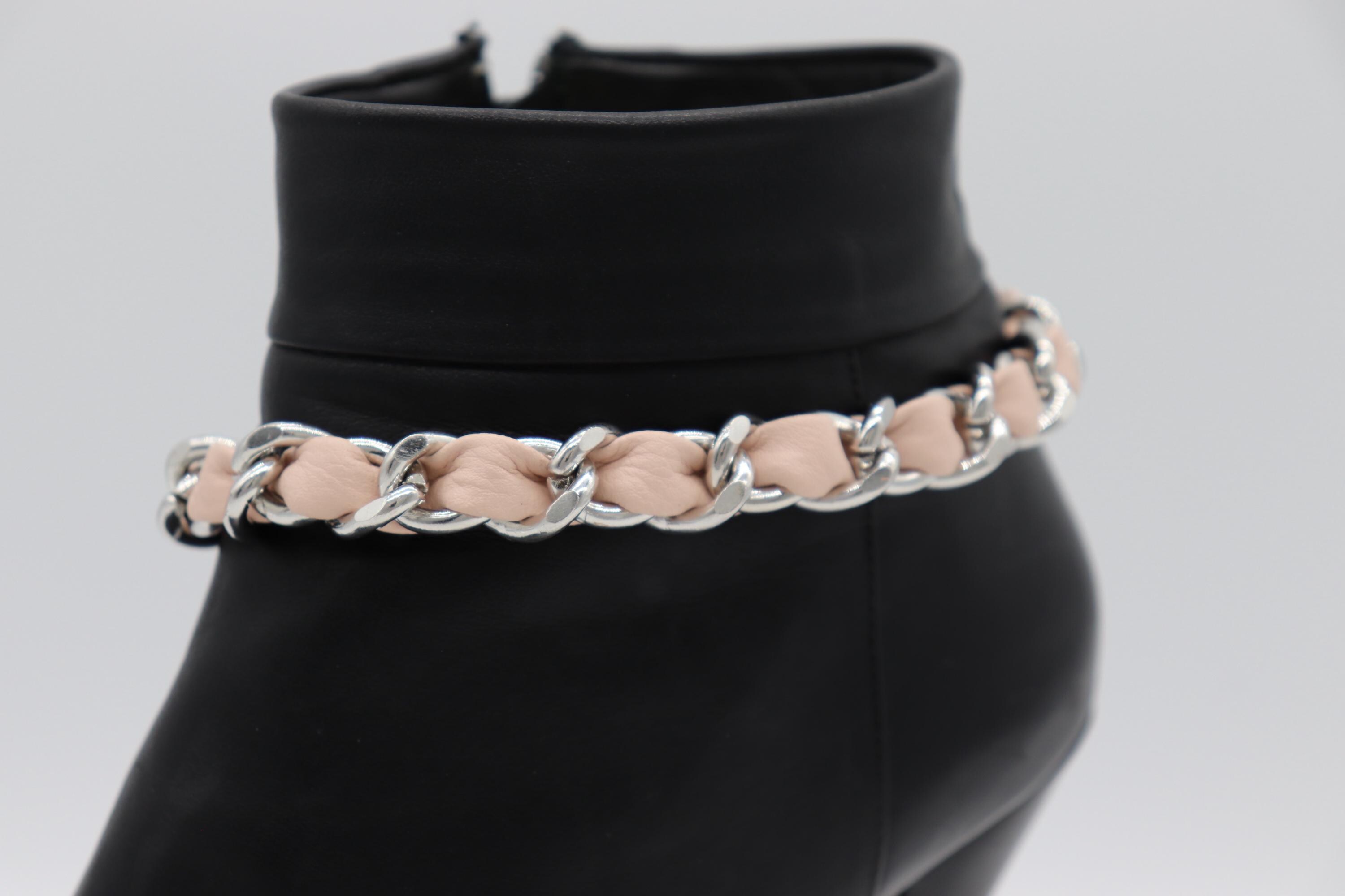 Boot Chain Anklet Pair – Silver & Pink Faux Leather, Western Jewelry