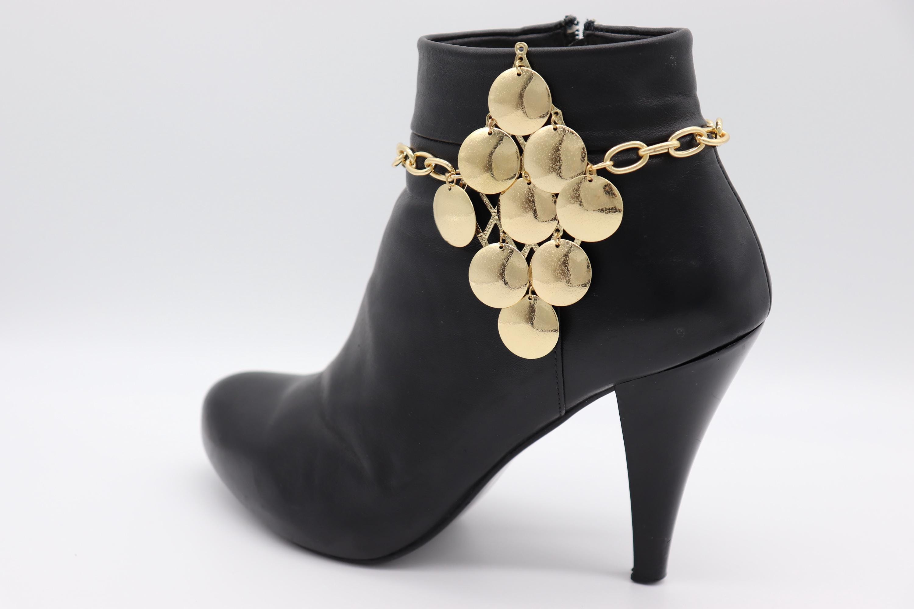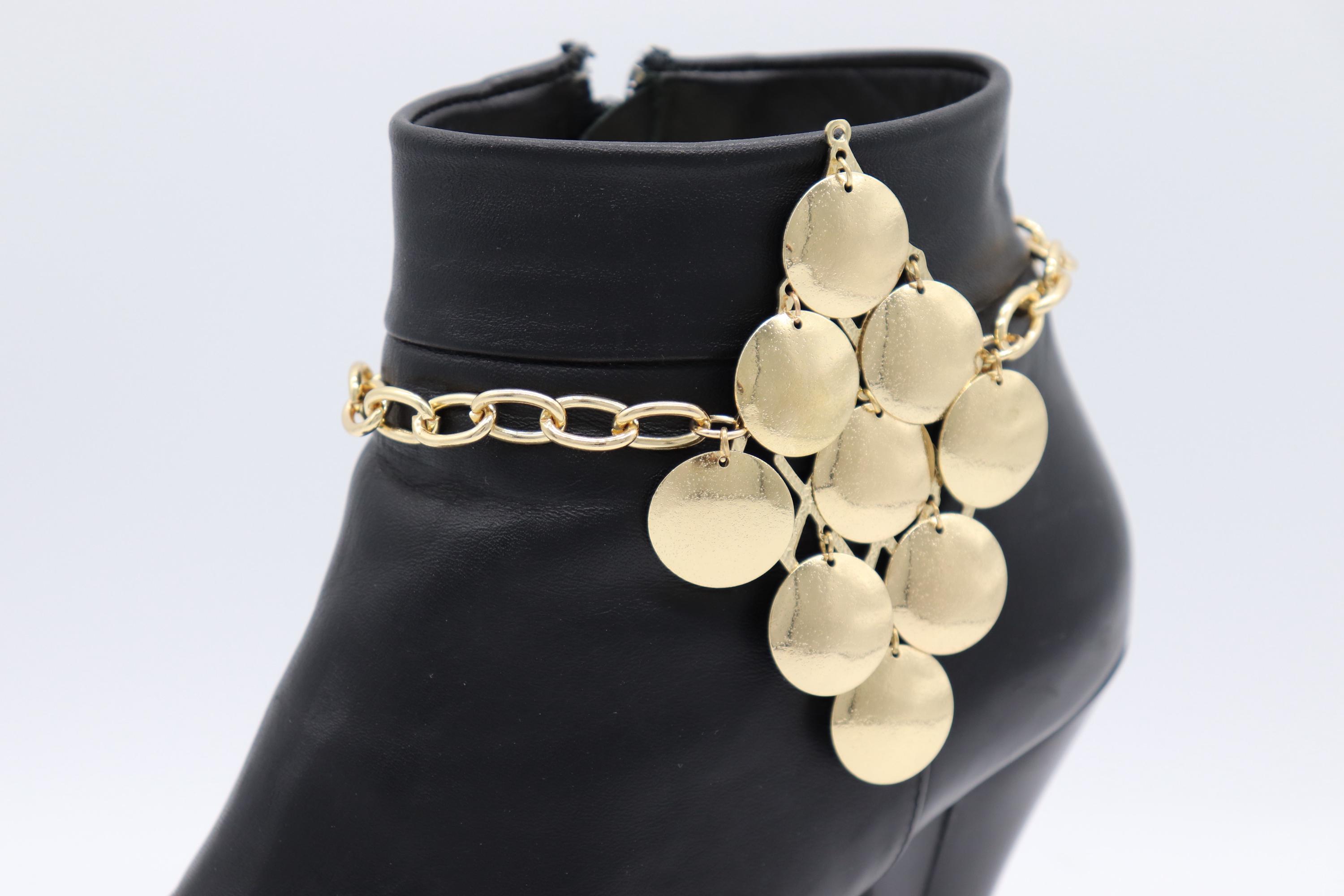 Give your boots their moment. This handmade anklet pair wraps a gold-tone curb chain around your ankle and finishes with a flirty cascade of polished coin discs—arranged like a shimmering bunch of “grapes.” They sway when you walk, sparkle when you dance, and turn everyday boots into a statement piece in seconds.