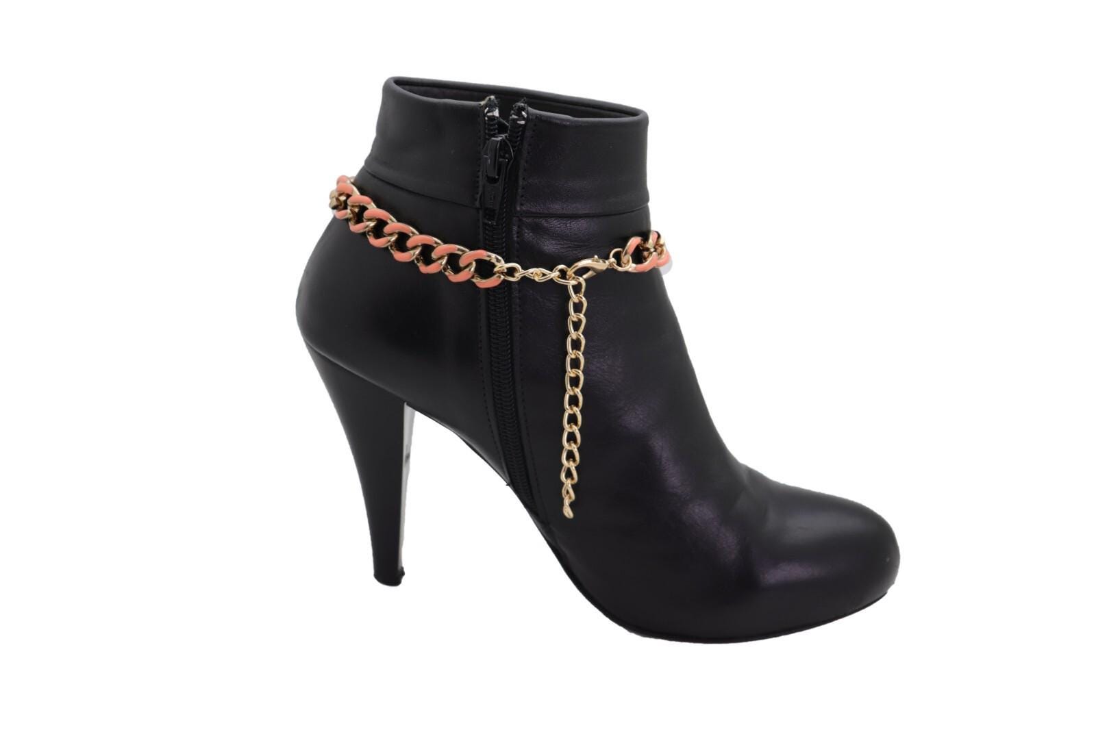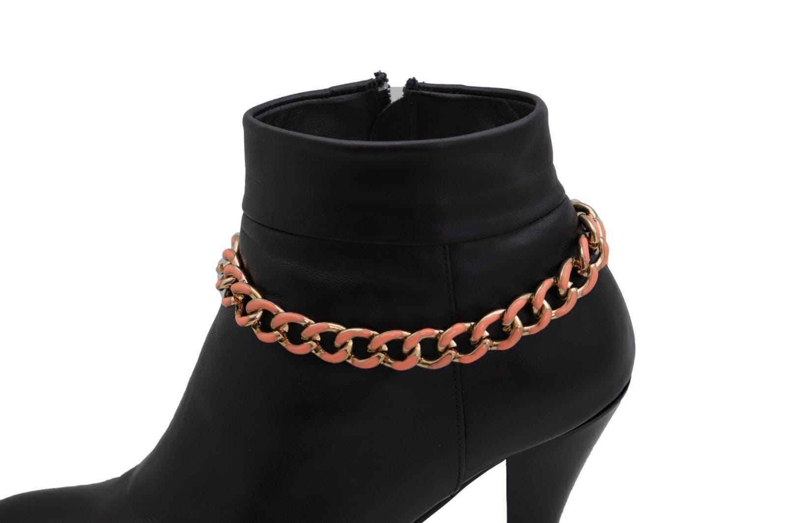 These Gold Tone Boot Chain Anklet Bracelets are the quick, wearable styling trick that makes boots look intentionally styled in seconds. The chain has a classic curb-link look with coral-color links woven through for a warm pop that stands out beautifully against black boots, denim, and neutral outfits.