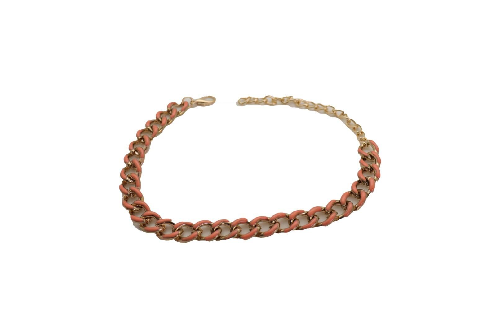 Gold tone metal chain with coral-color accent links