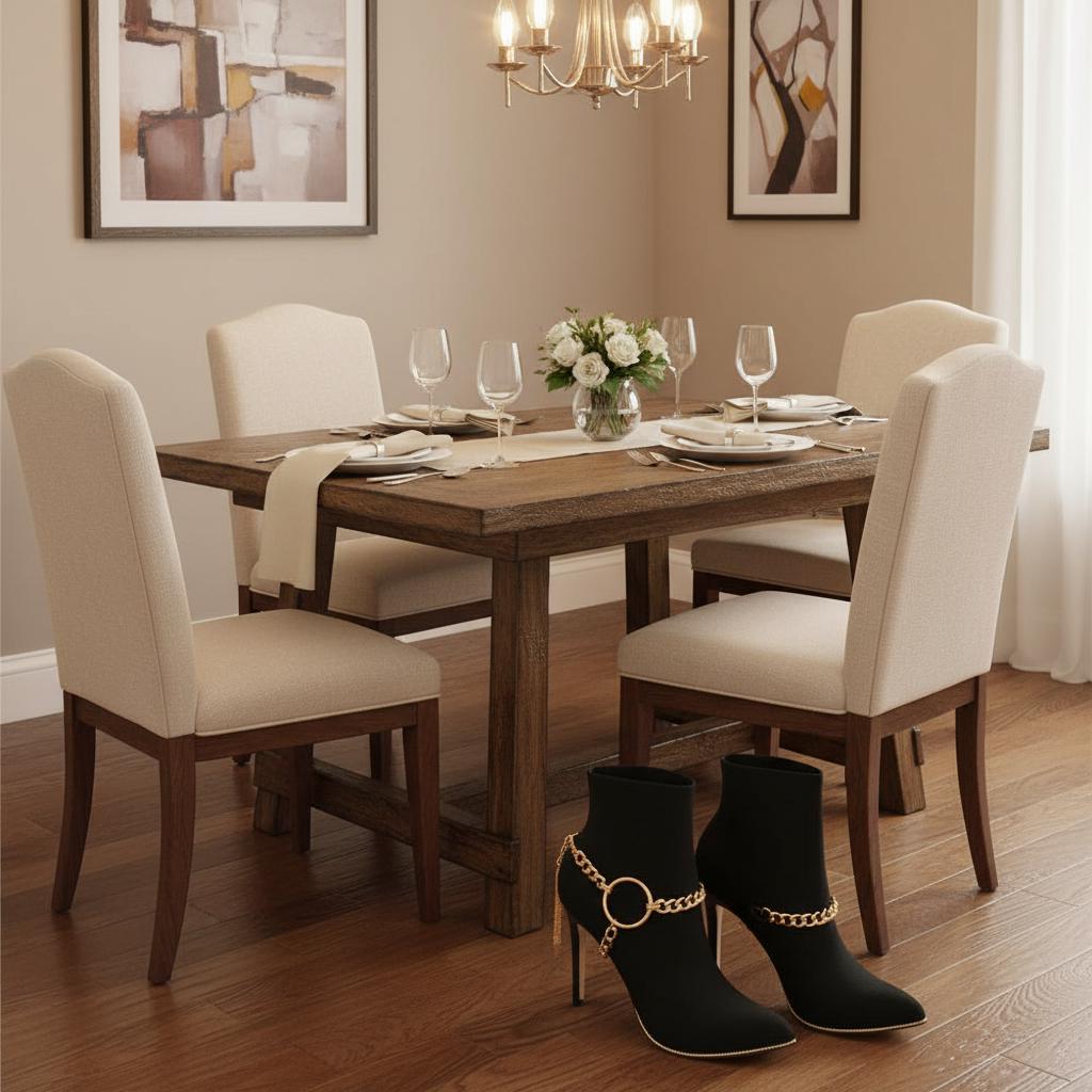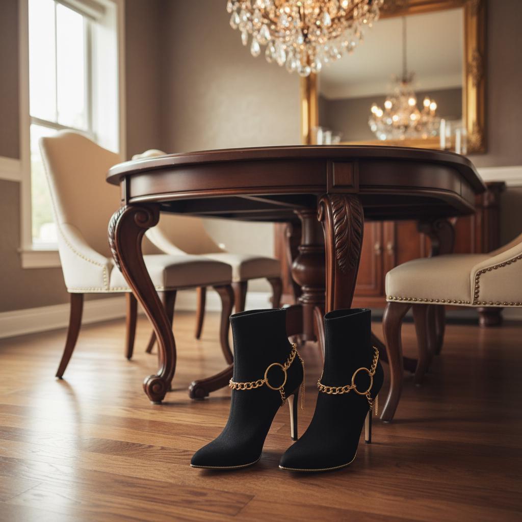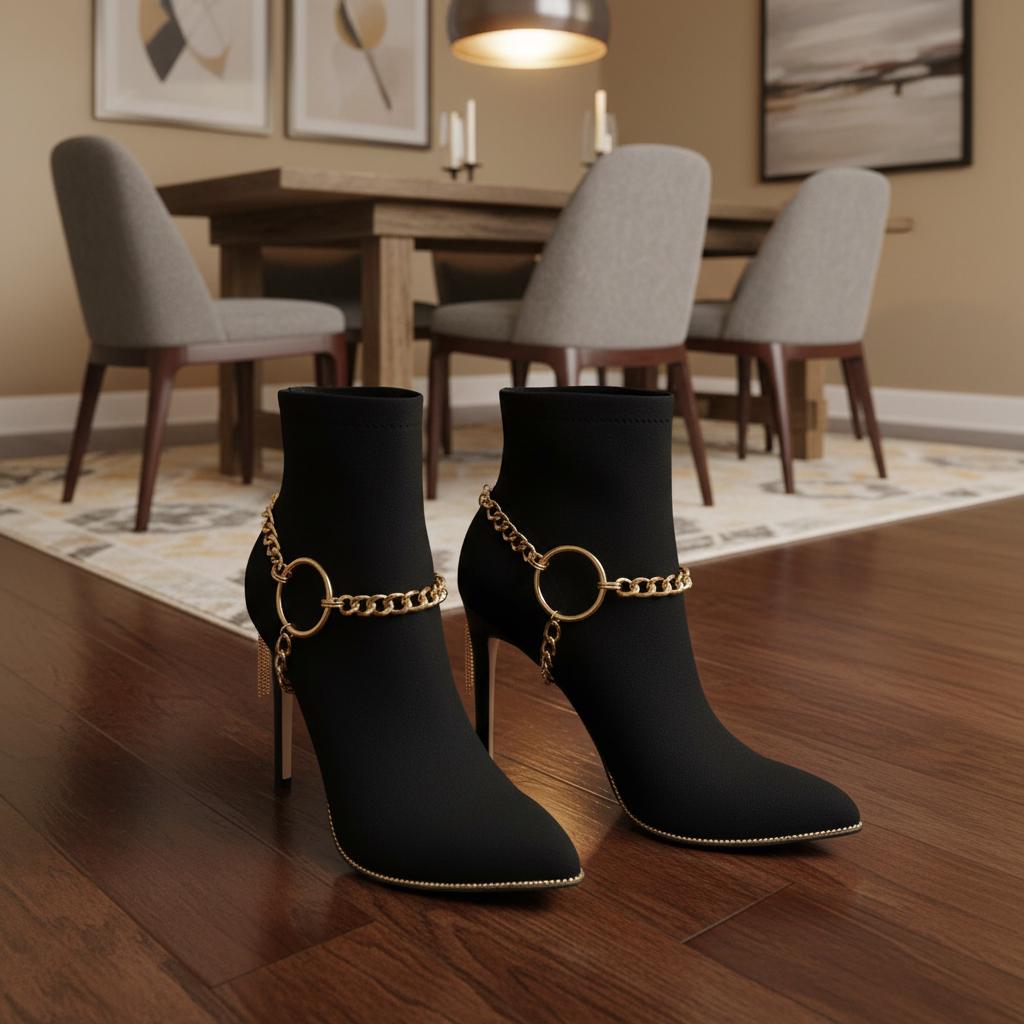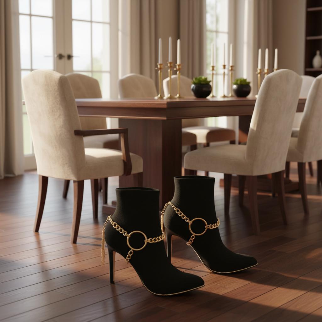 This is a pair of gold-tone boot chain bracelets designed to wrap your boots with a clean, eye-catching detail: a bold circle ring accent on the side and a back fringe tassel that moves when you walk. It’s a fun styling upgrade that makes boots look instantly more “finished,” like your outfit had a plan—even if your plan was “grab coffee and look cute doing it.”