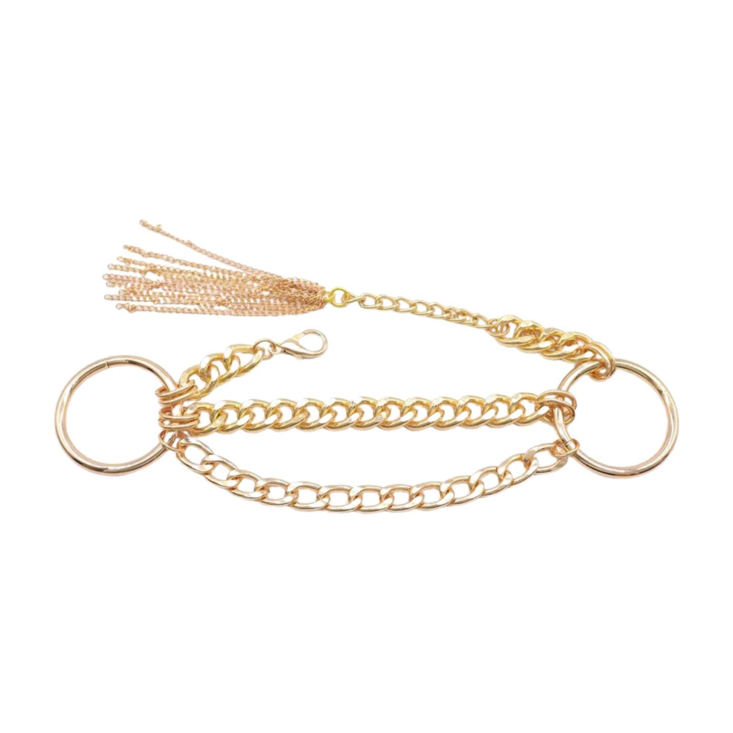 Gold-tone chain wrap with circle ring accent and back tassel fringe