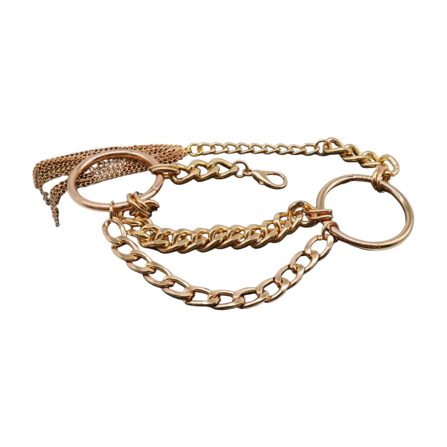 Gold Metal Chain Boot Bracelet SET: Western Circle Under Back Tassel Fashion Jewelry BC115