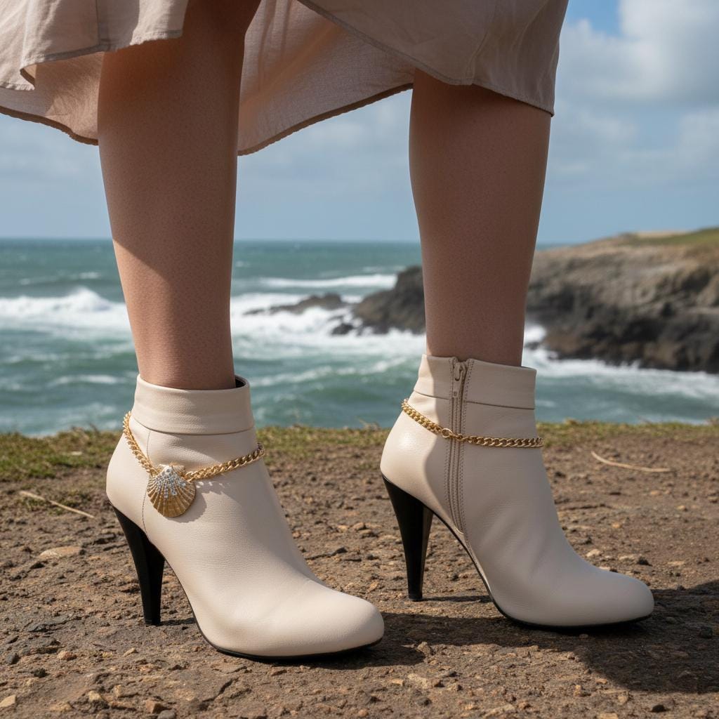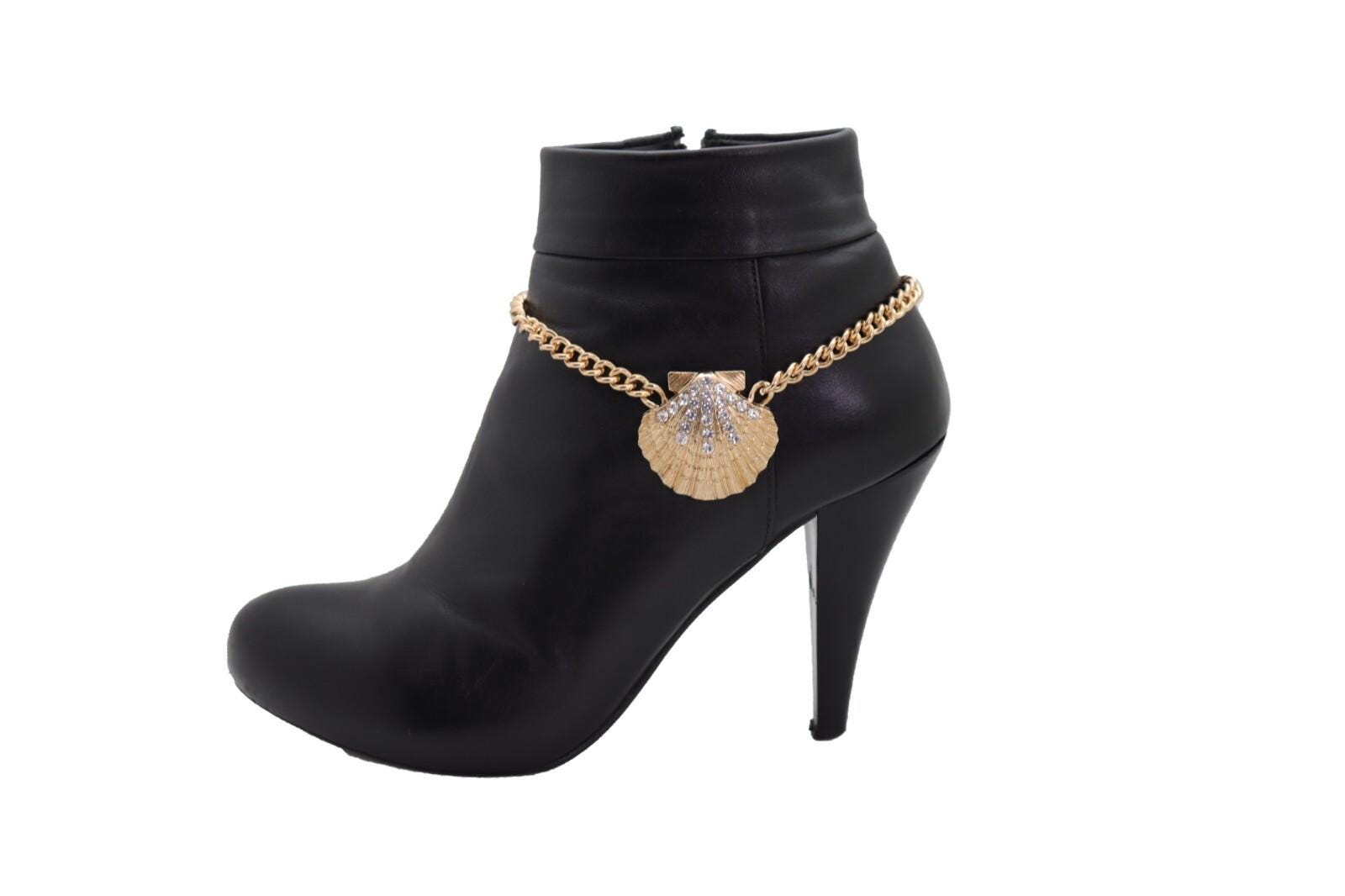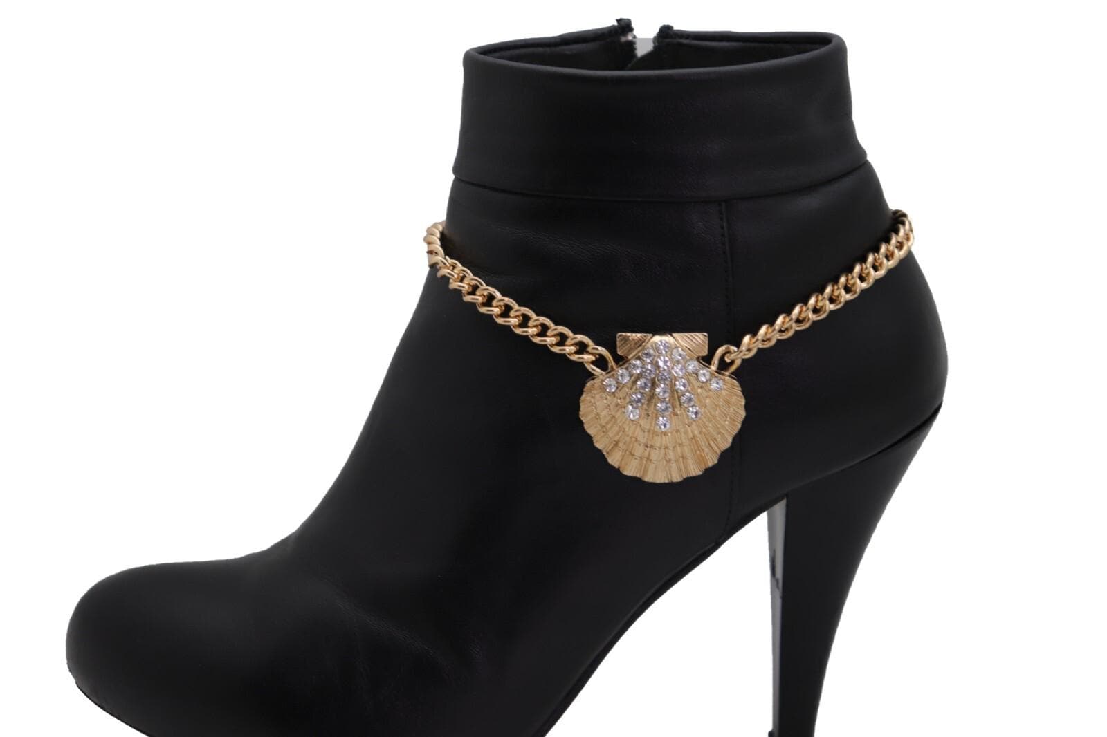Add A Little Coastal Sparkle To Your Boots With This Gold Seashell Boot Chain Bracelet Set. Each Boot Chain Features A Gold-Tone Link Chain And A Textured Seashell Charm Accented With Silver Rhinestones—A Cute, Shiny Detail That Makes Boots Look Styled And Photo-Ready Without Trying Too Hard.